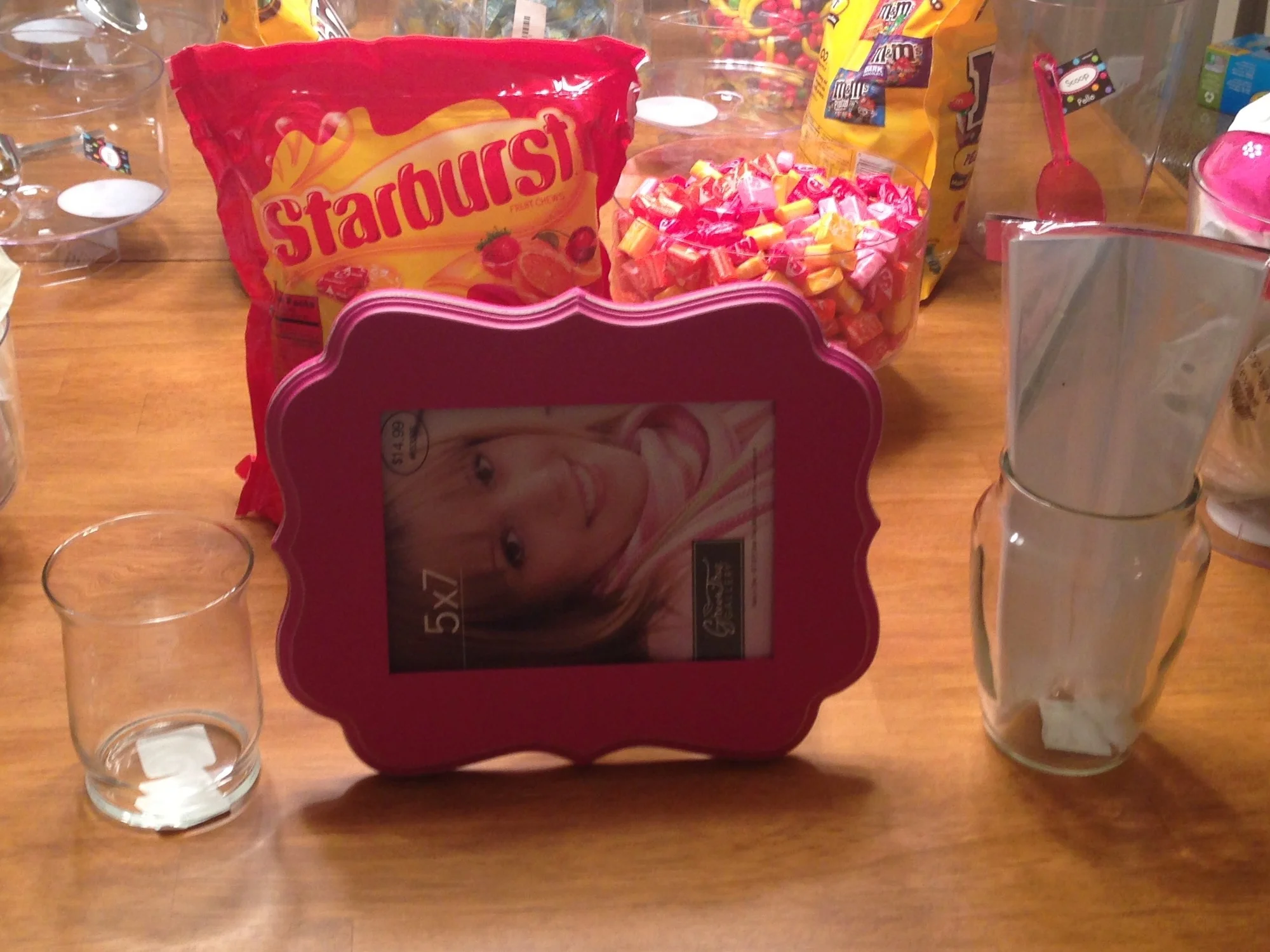 Picture Frames - We purchased two pink pictures frames to display on the table with the saying "Grab a bag and help yourself to the Candy Buffet. It's our way of saying Thank You for sharing in our special day!" I found them at Hobby Lobby.