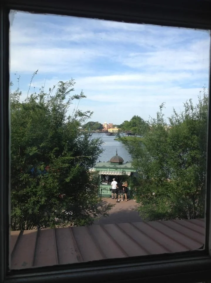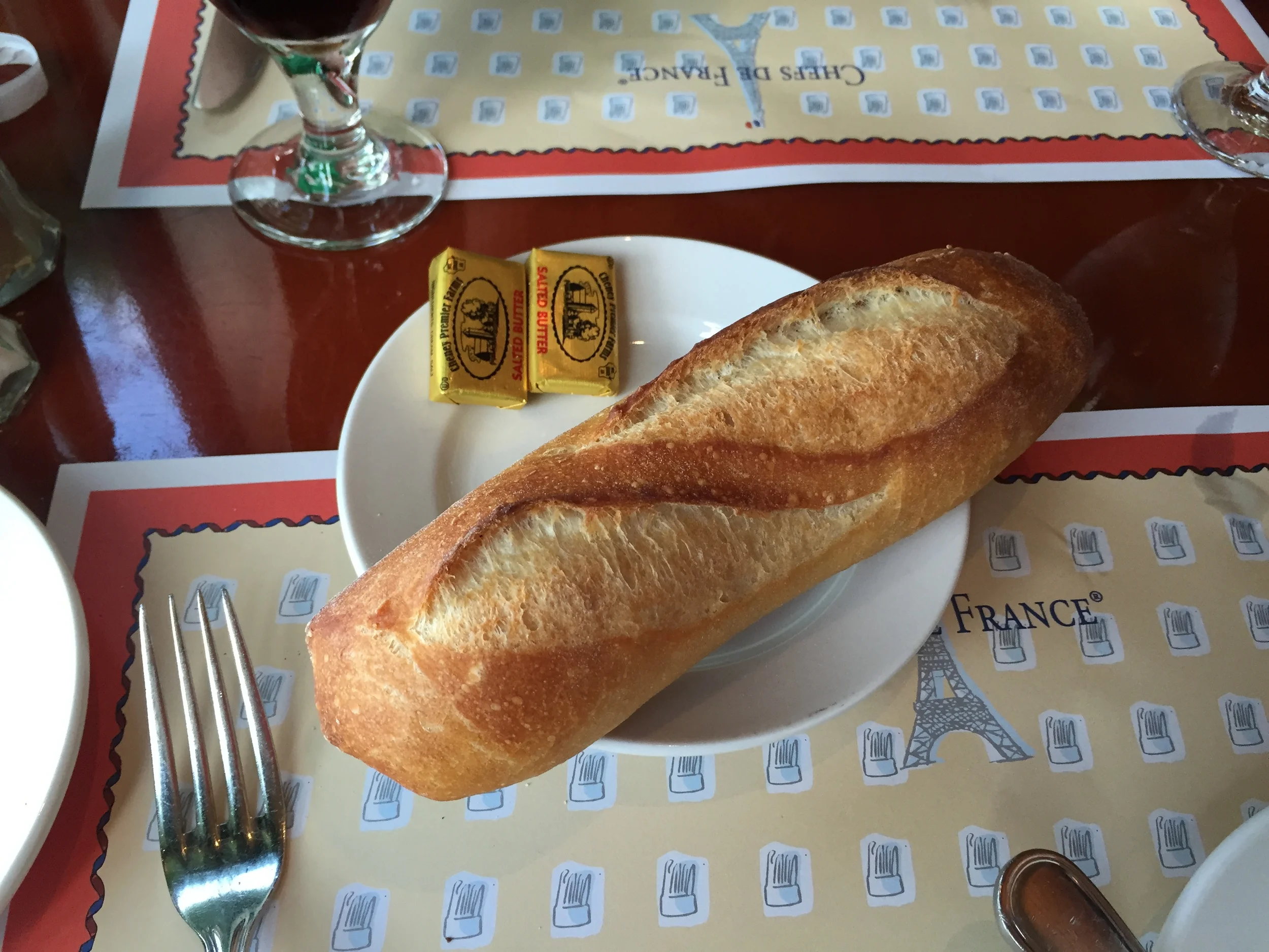 We arrived to our reservation around 6 pm. We checked in at the entrance, and we were given a pager. Within a few minutes, our table was ready! We had a nice window seat overlooking the World Showcase. Unfortunately you are ground level in this restaurant. So even though we had a nice window seat, you still mainly just see people walking around. We did get to see Alice from Alice in Wonderland just prancing around which was kind of neat. But overall, the view is great for those that like to people watch! Now, if you had this same view at Monsieur Paul, it would be immaculate. Below is a picture from when we dined at Monsieur Paul with a similar seating arrangement. The view was great!