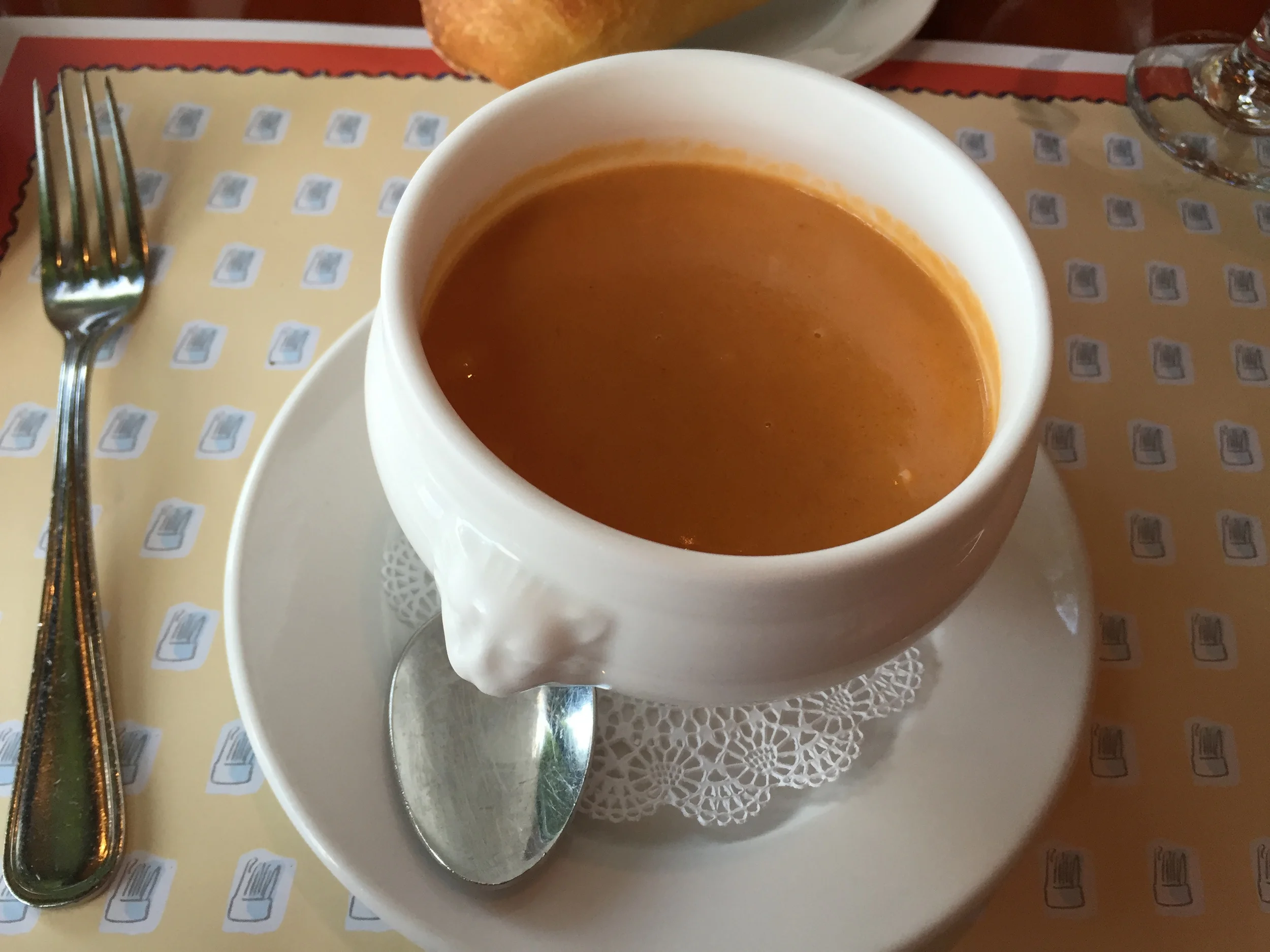 She next asked for our orders. This is where her thick French accent and the weird translaction from French to English had its difficulties. Brad ordered the steak dish, rare. I ordered lobster bisque and the macaroni au gratin. I was hoping it would be just as amazing as the side dish version at Be Our Guest. So, the waitress asked if I wanted the meal or not. I was really confused by this. I instinctively thought she meant a meal or side dish of macaroni au gratin. After discussing it over with her, she meant the three course meal they have. I told her no. It would not save me any money to get the meal, and neither of us were feeling dessert there. I had my eye on an apple from Downtown Disney's Goofy's Candy Co. She seemed to have our orders straightened out and went to send them to the kitchen.
