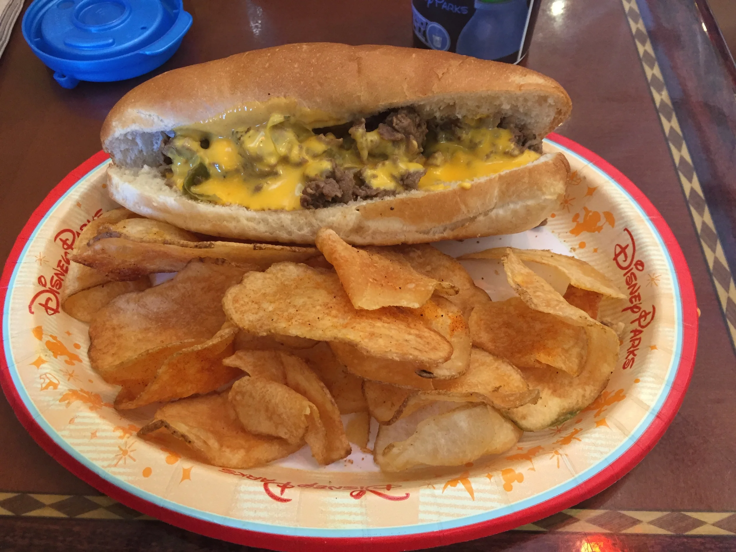 Philly Cheesesteak Sandwich with Chips - This sandwich was just ok. It was not part of the normal menu, but a lunch special. I personally did not have a bite, but Brad's opinion was it wasn't good, just decent. The cheese tasted like nacho cheese you get at a ball park. The chips were really good.