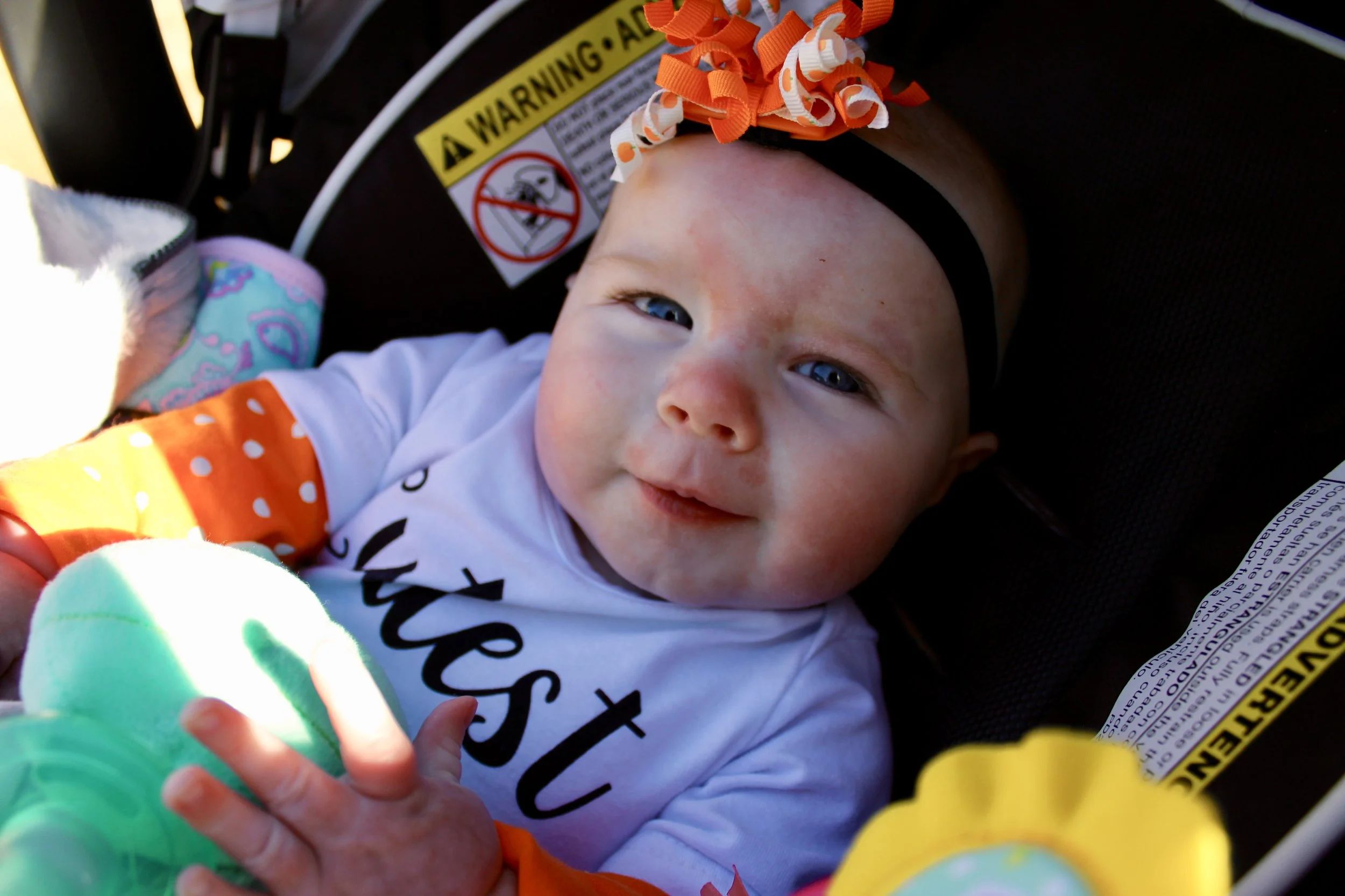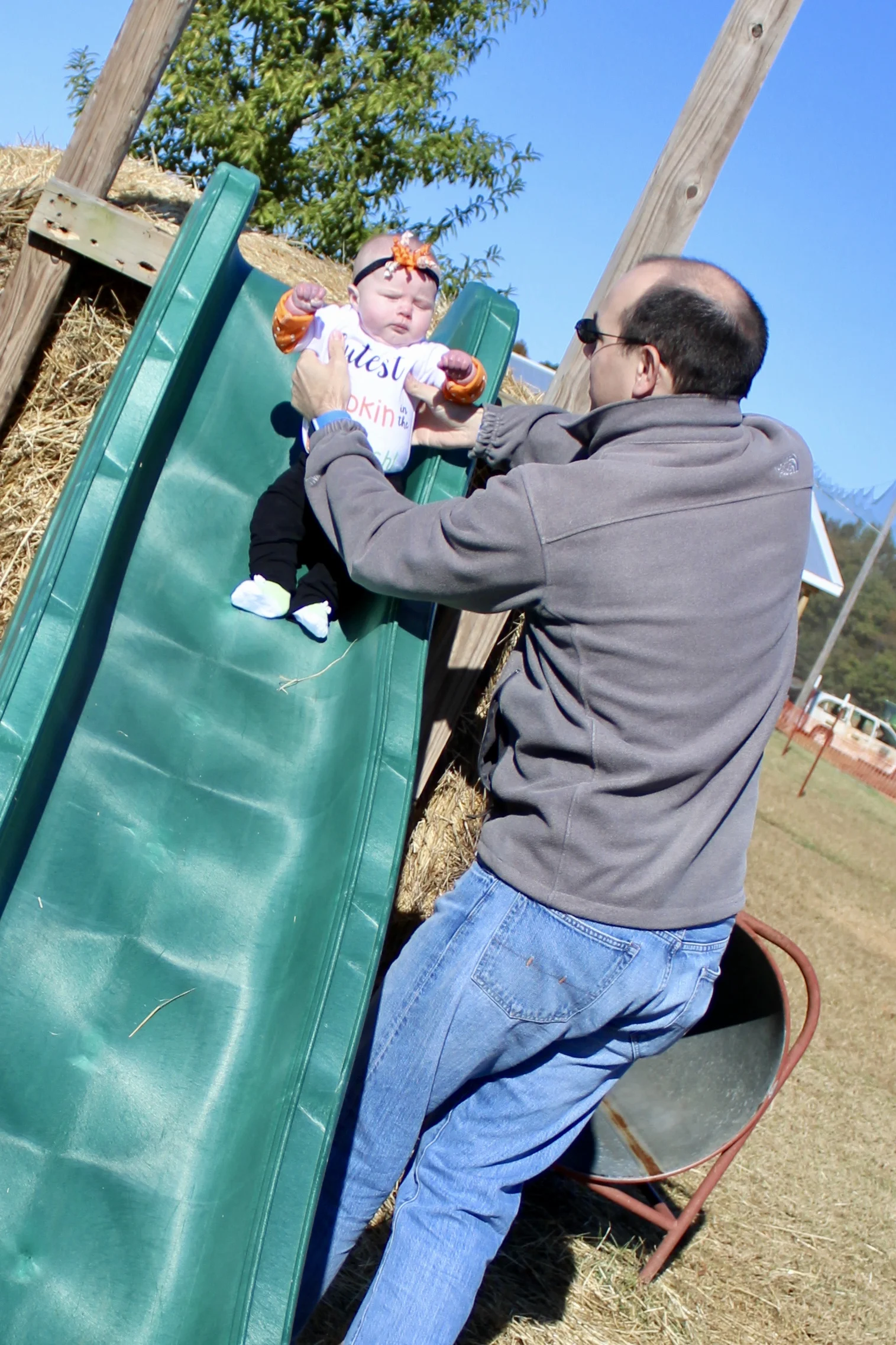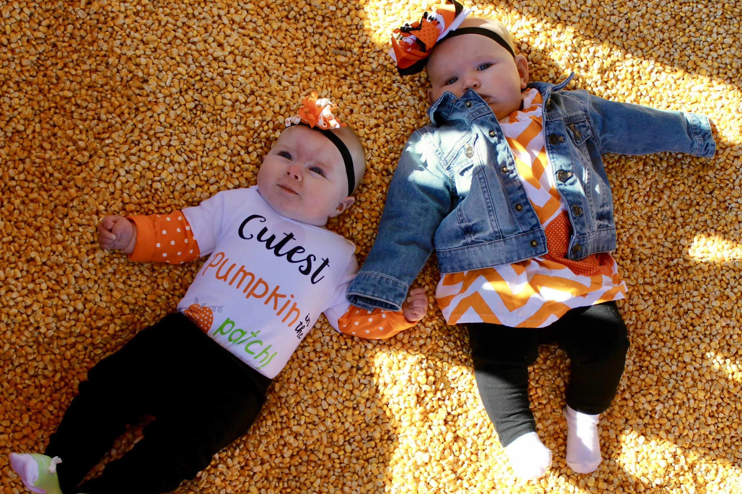 My best friend and I decided we wanted to take our babies to the pumpkin patch this year. Sure, they aren't really old enough to remember it or do much, but you can say that about almost everything we do with a 5 month old! Luckily with all of our crazy schedules, we were able to find a weekend we could go.