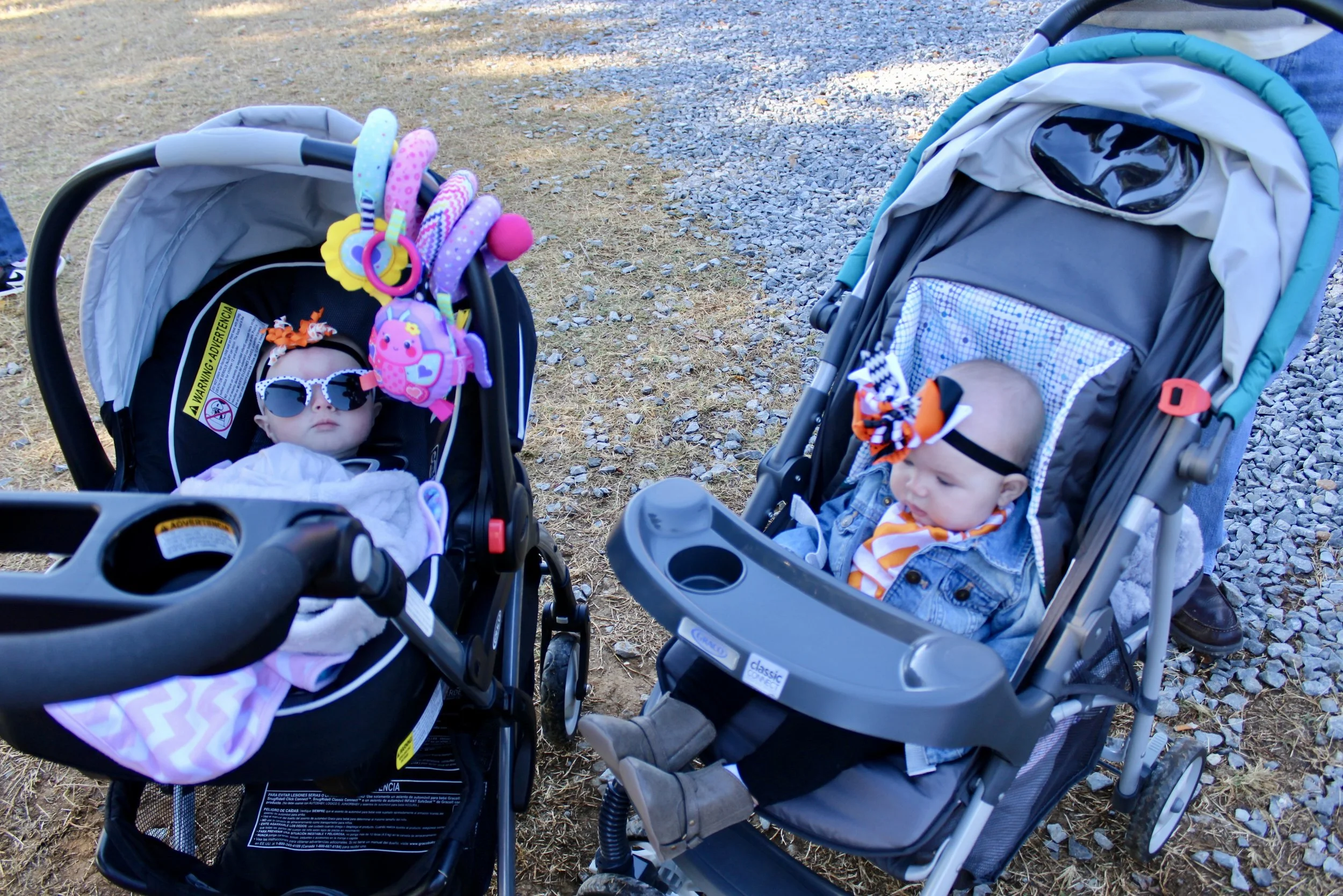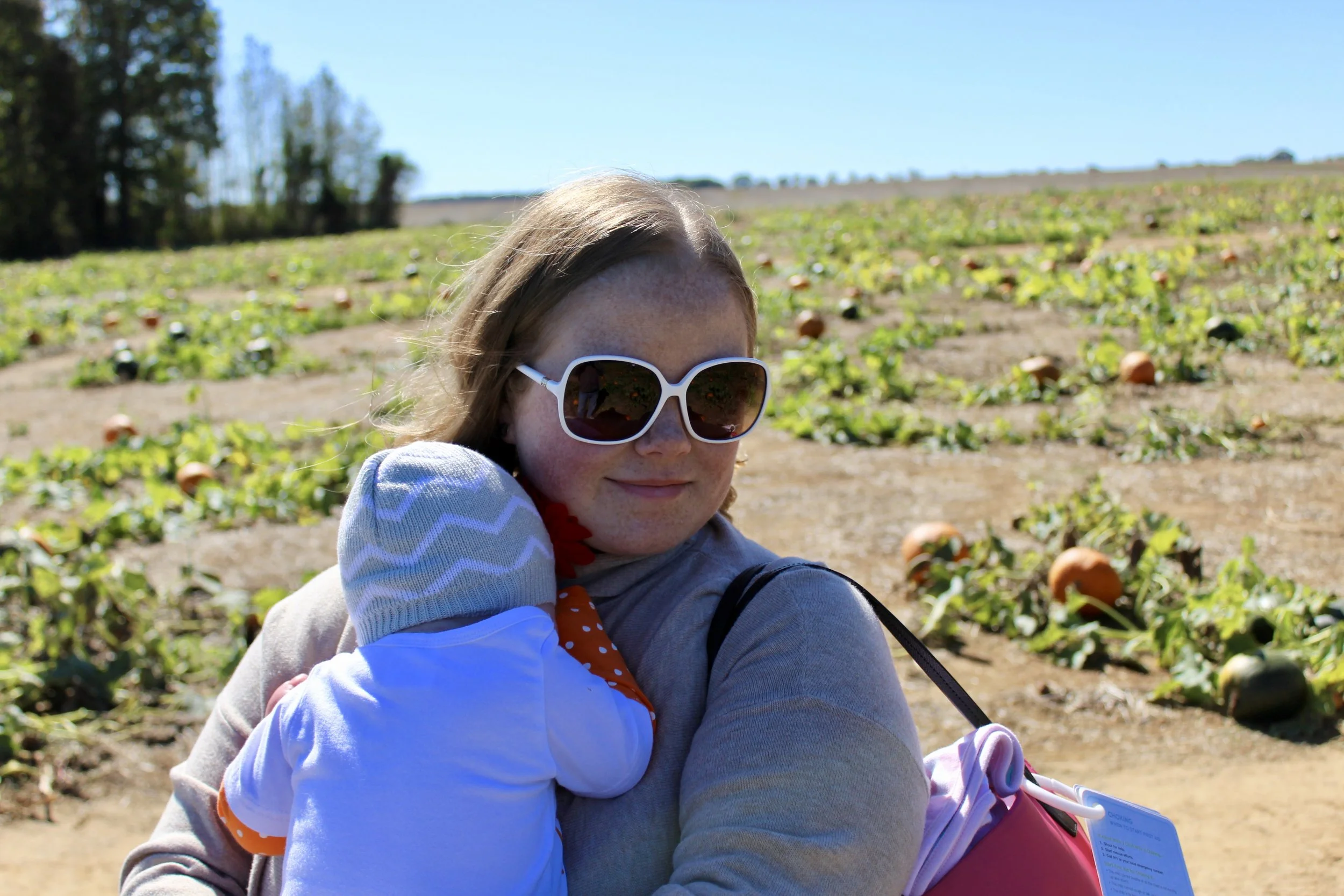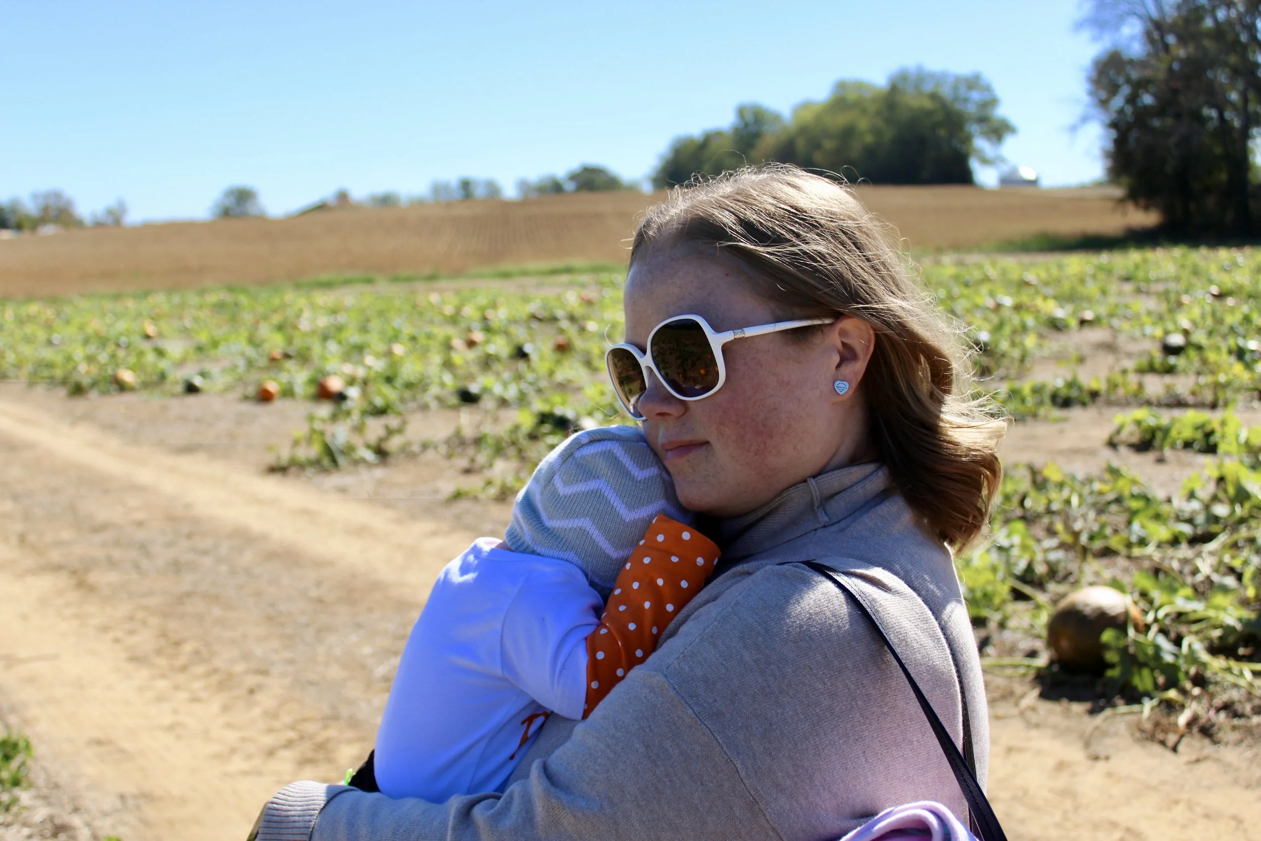 My best friend and I decided we wanted to take our babies to the pumpkin patch this year. Sure, they aren't really old enough to remember it or do much, but you can say that about almost everything we do with a 5 month old! Luckily with all of our crazy schedules, we were able to find a weekend we could go.