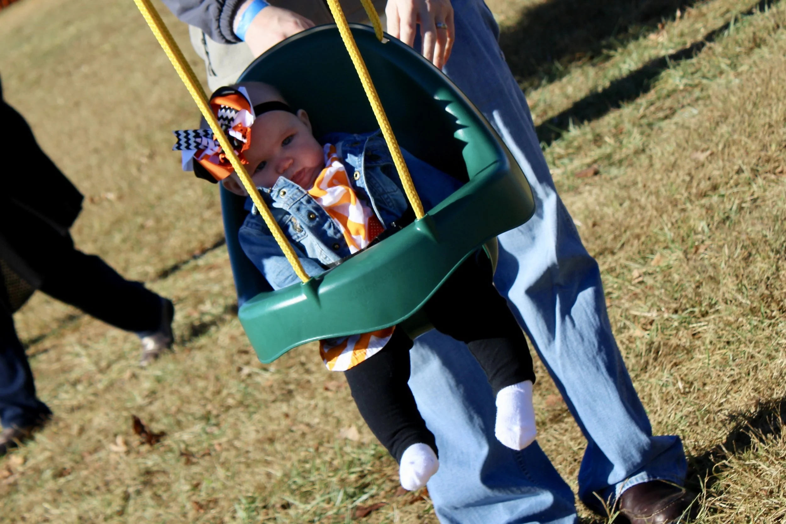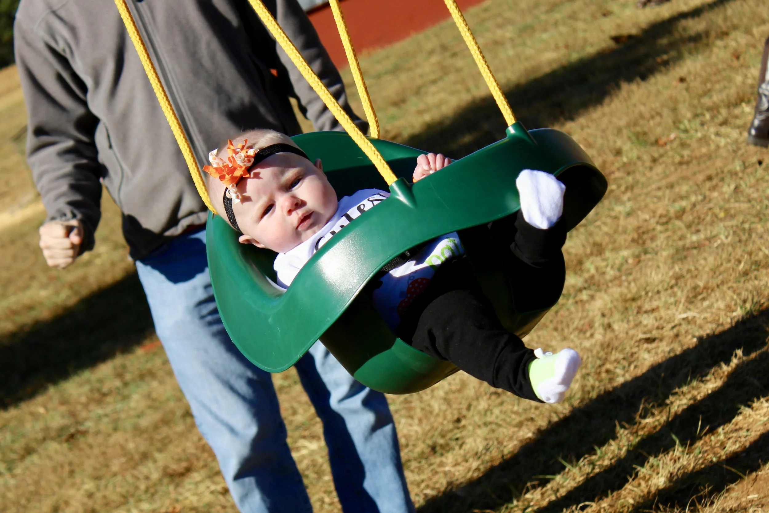 Next up were the swings. Melody loves to swing both inside and outside. We don't have an outside swing at our home, but Brad's parents do. So we decided to give it a go there. The girls had fun.