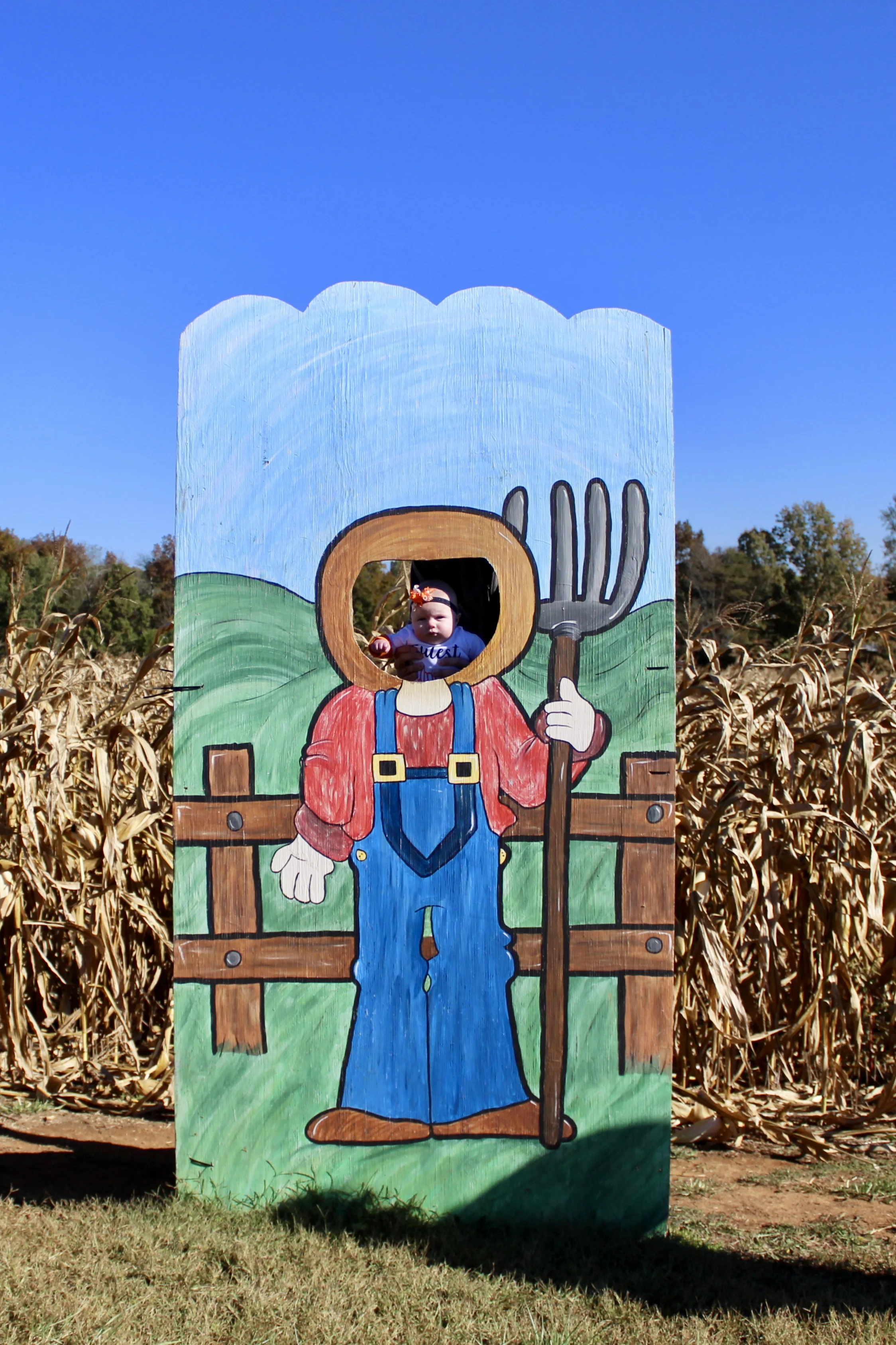We finished up eating then decided to take some photos. They had some great photos ops throughout the farm. Here is frustrating part number two. We go to our first photo op, and there are kids playing on the hay and such, and they were moving pumpkins around. The parents saw this going on. I know this because I saw the parents asking the children what they wanted for lunch as they were playing. I think this clearly appears to be a photo op and not a play area. But the parents did not seem to care. We waited a minute as if we were "in line" for this photo op. Finally, my best friend's husband just went and sat where you would sit for pictures. I took a few pictures (and you can see it below but I removed the child's head for privacy reasons). The parents did finally see what was going on and told their kids to move. Finally.