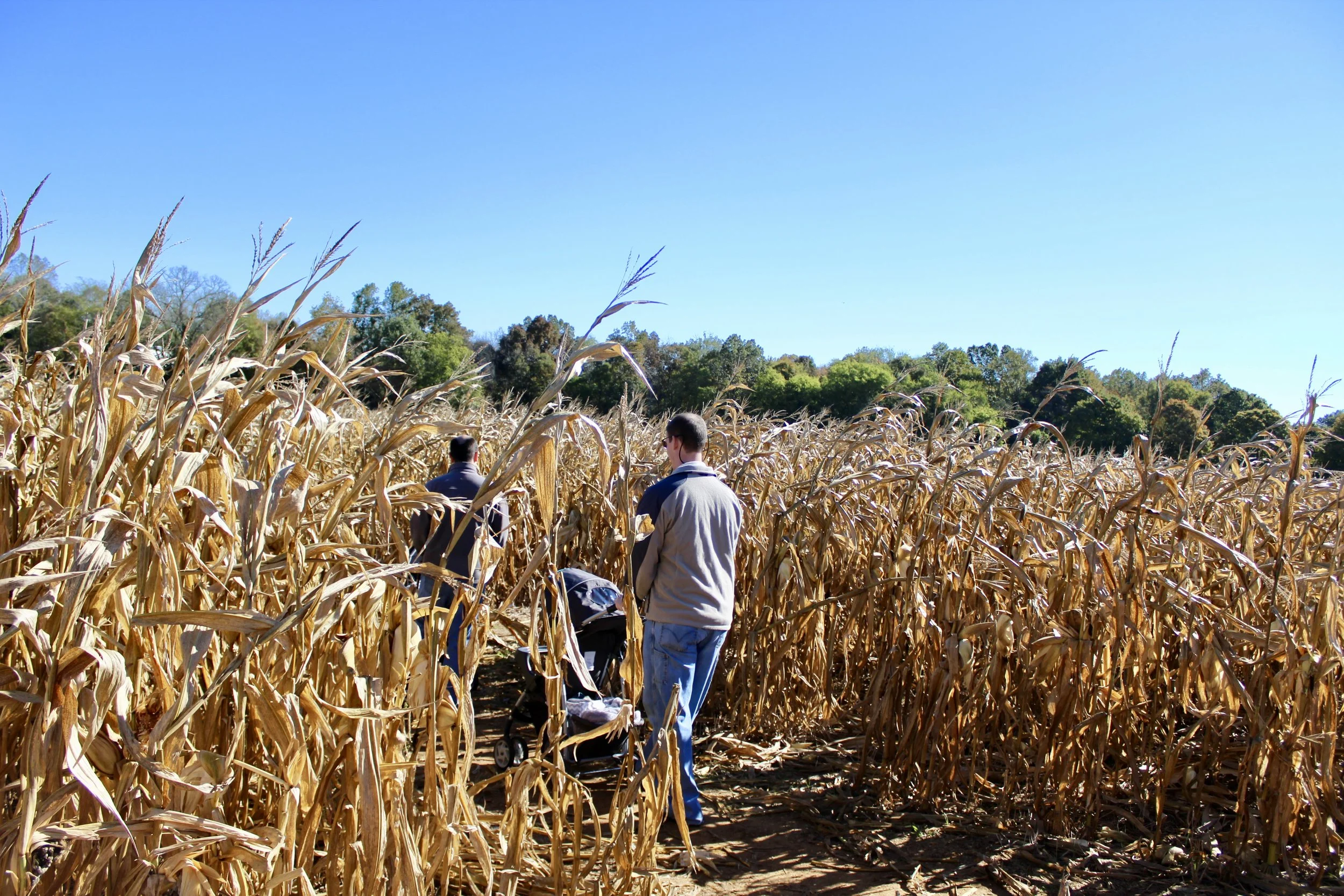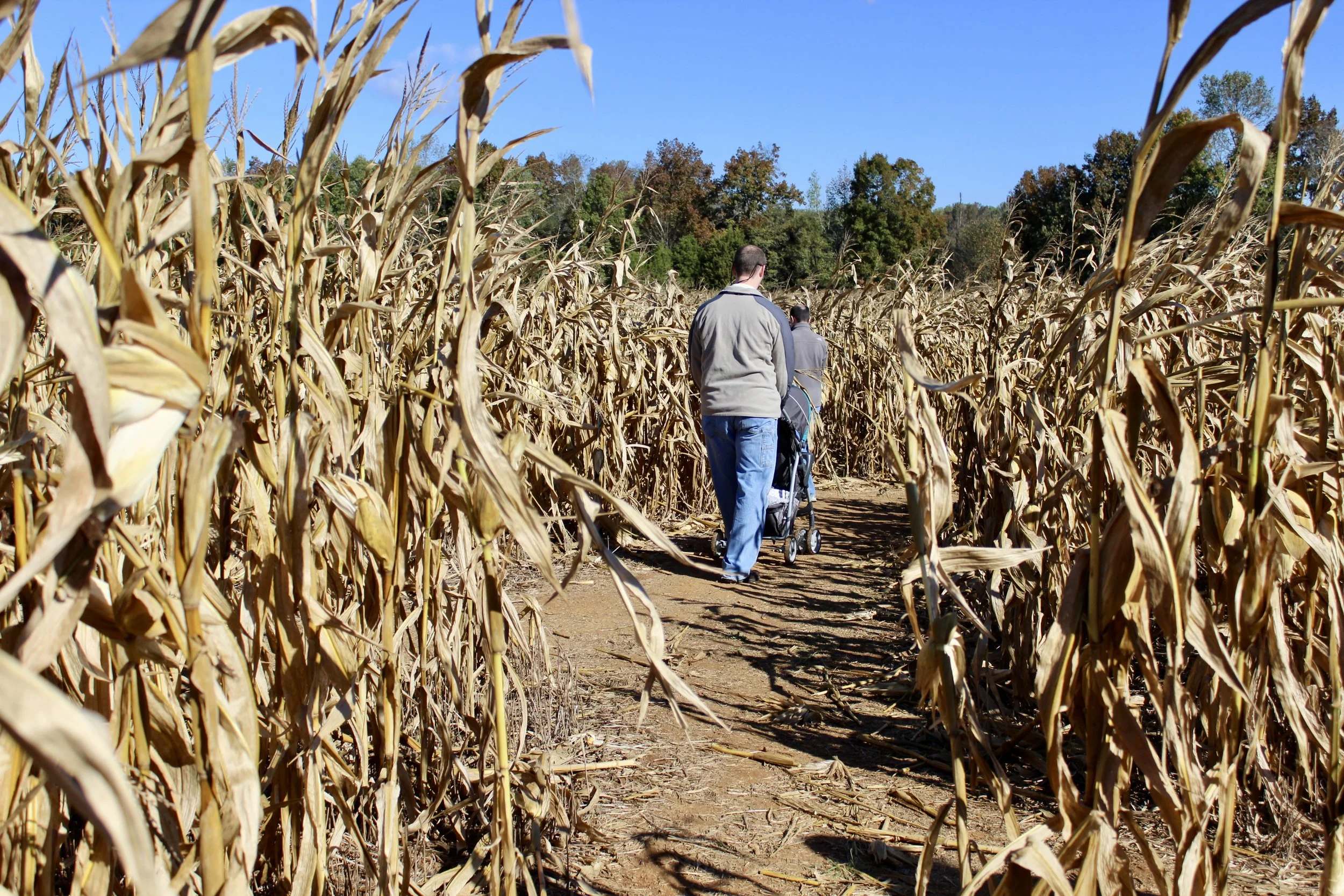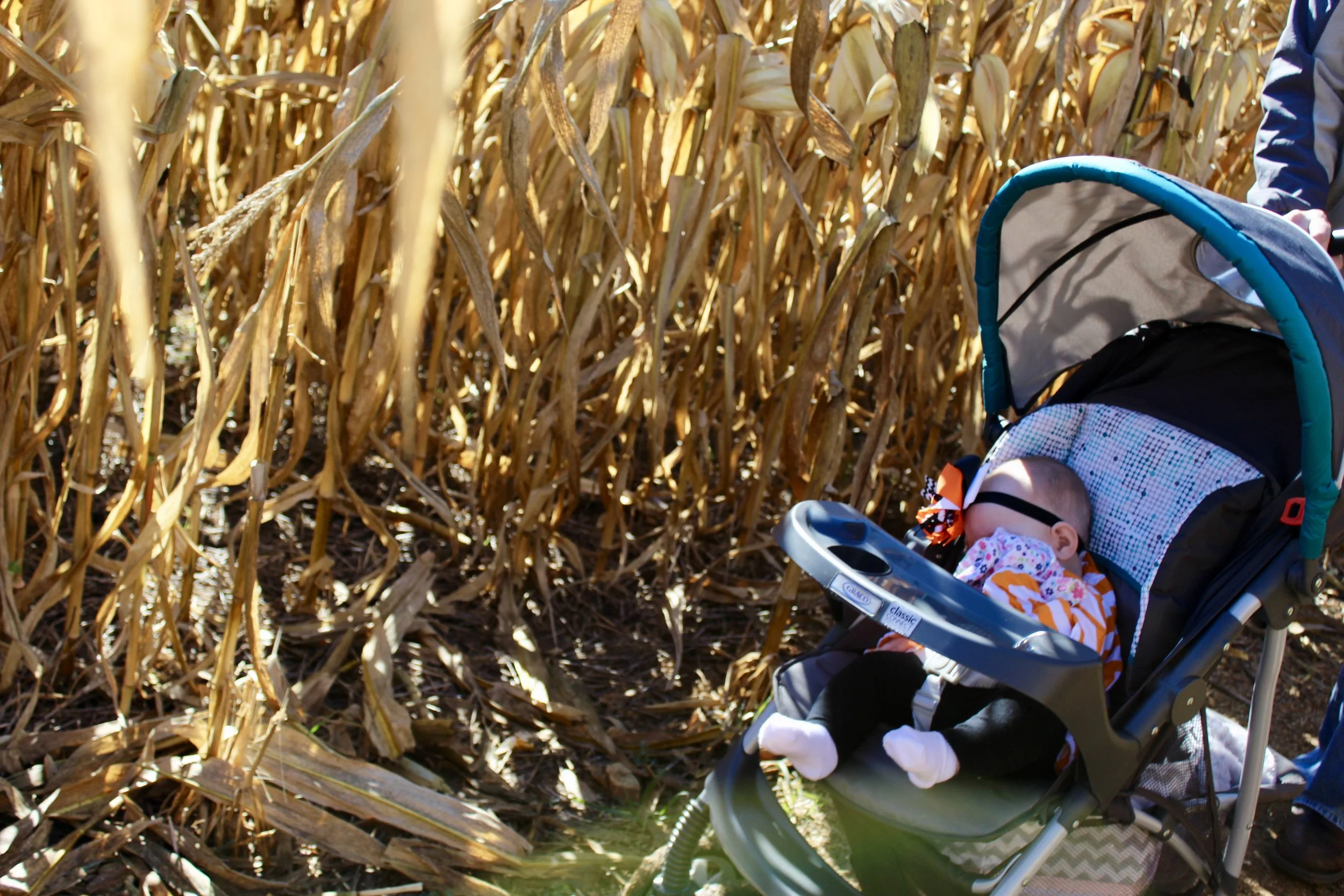 We decided to take a few pictures, then we headed into the corn maze. We weren't too smart about this because we didn't realize there were maps in case you got lost. We didn't get lost or anything, but it was a huge maze and I could see how you could easily get lost. The maze was definitely more for us than the babies.