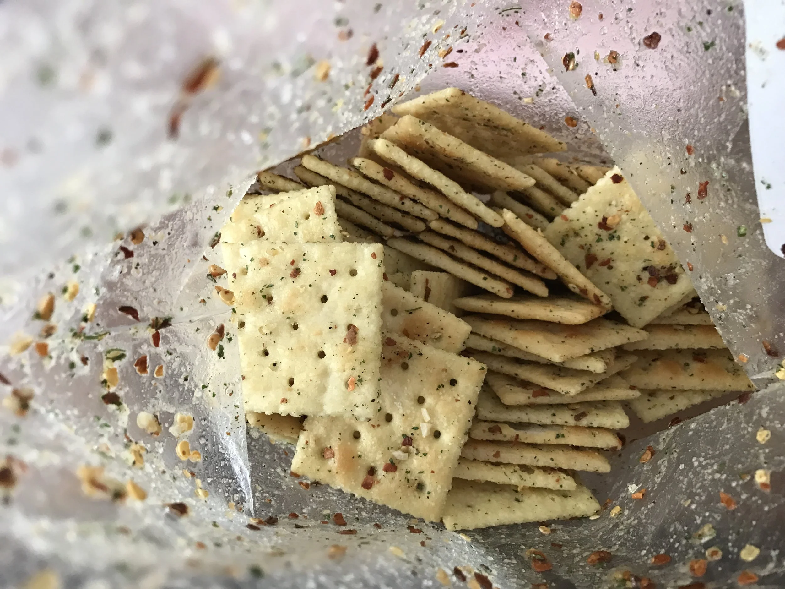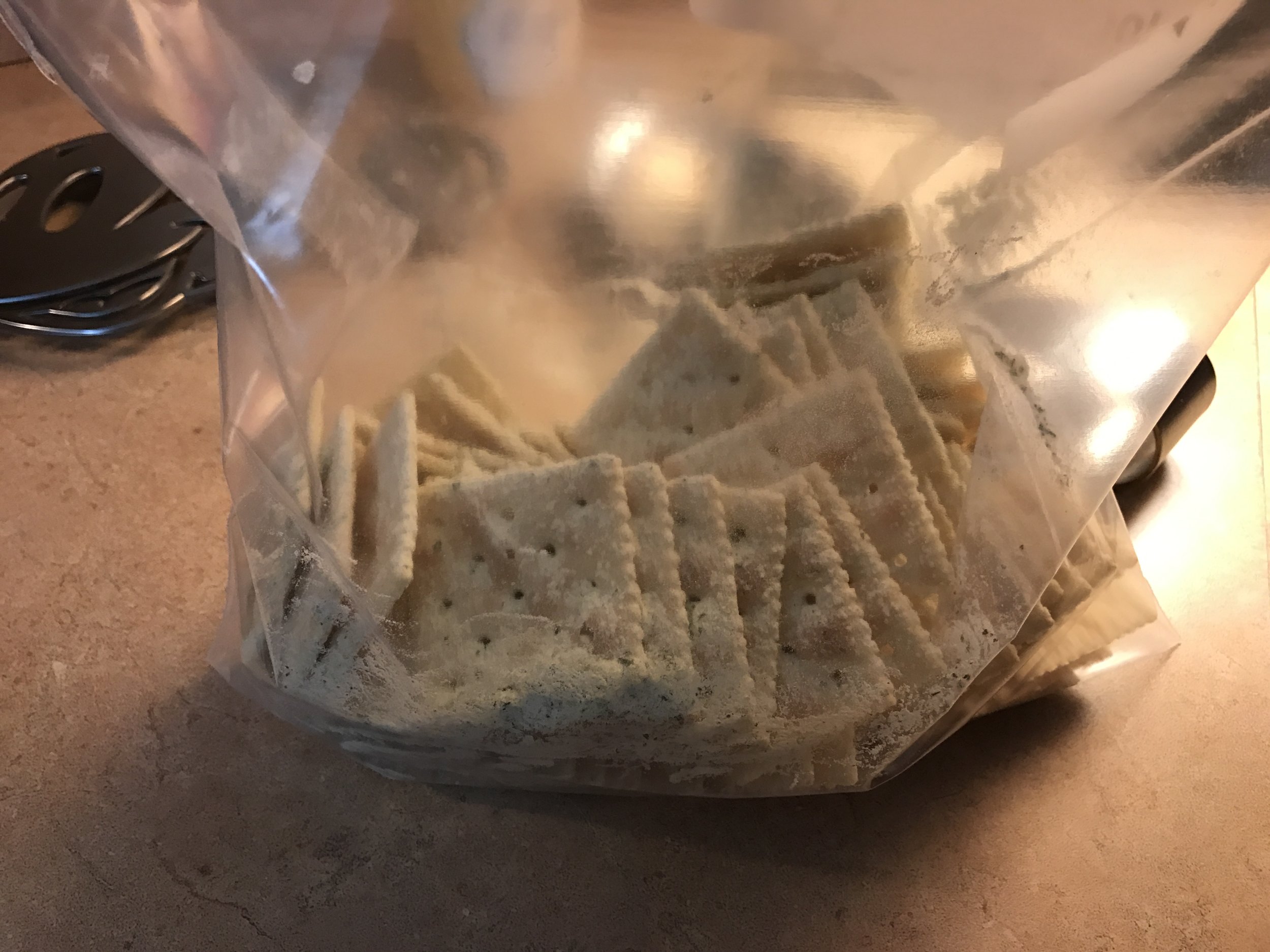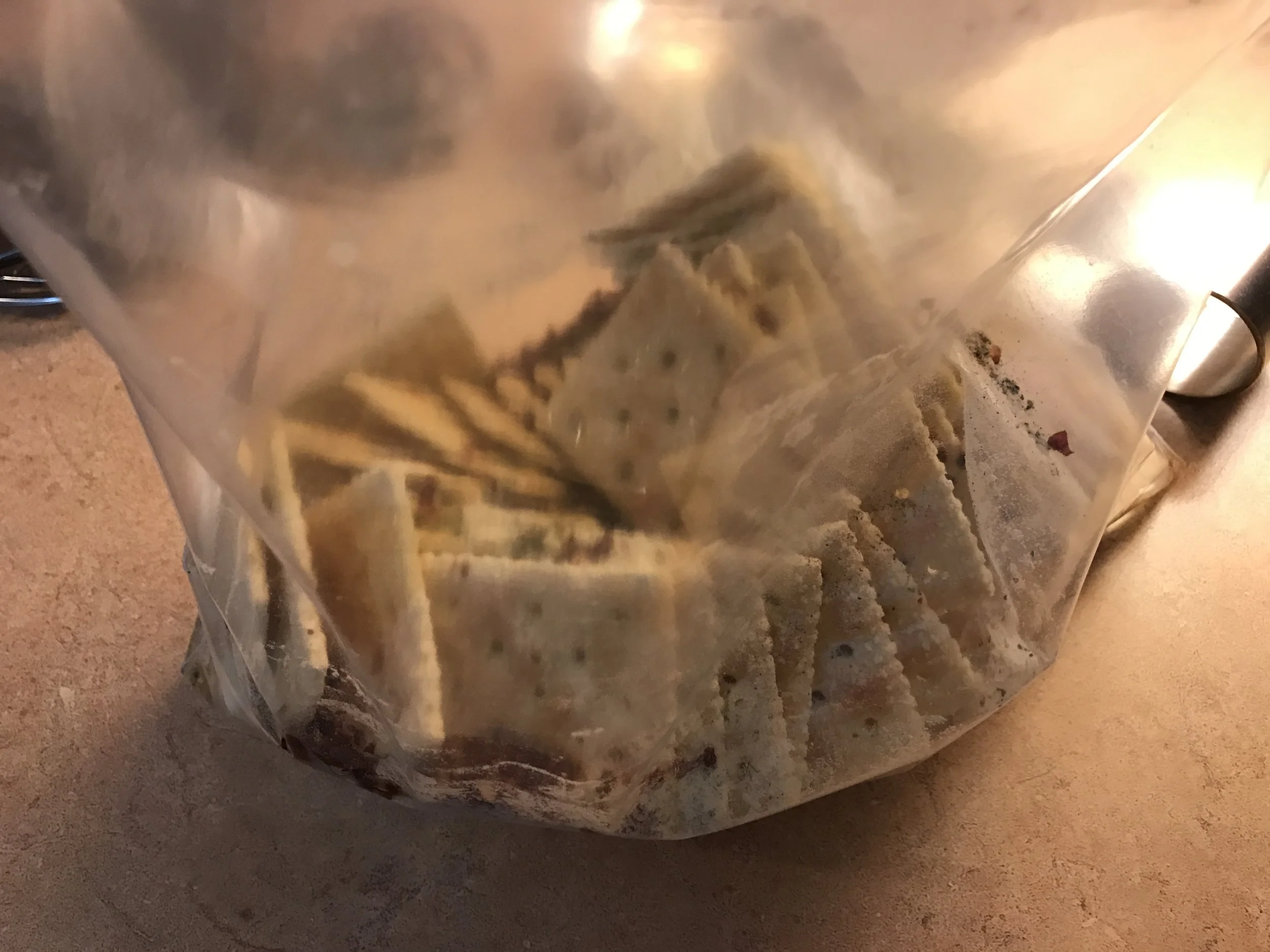 1. In a gallon ziploc bag, empty the sleeve of the crackers