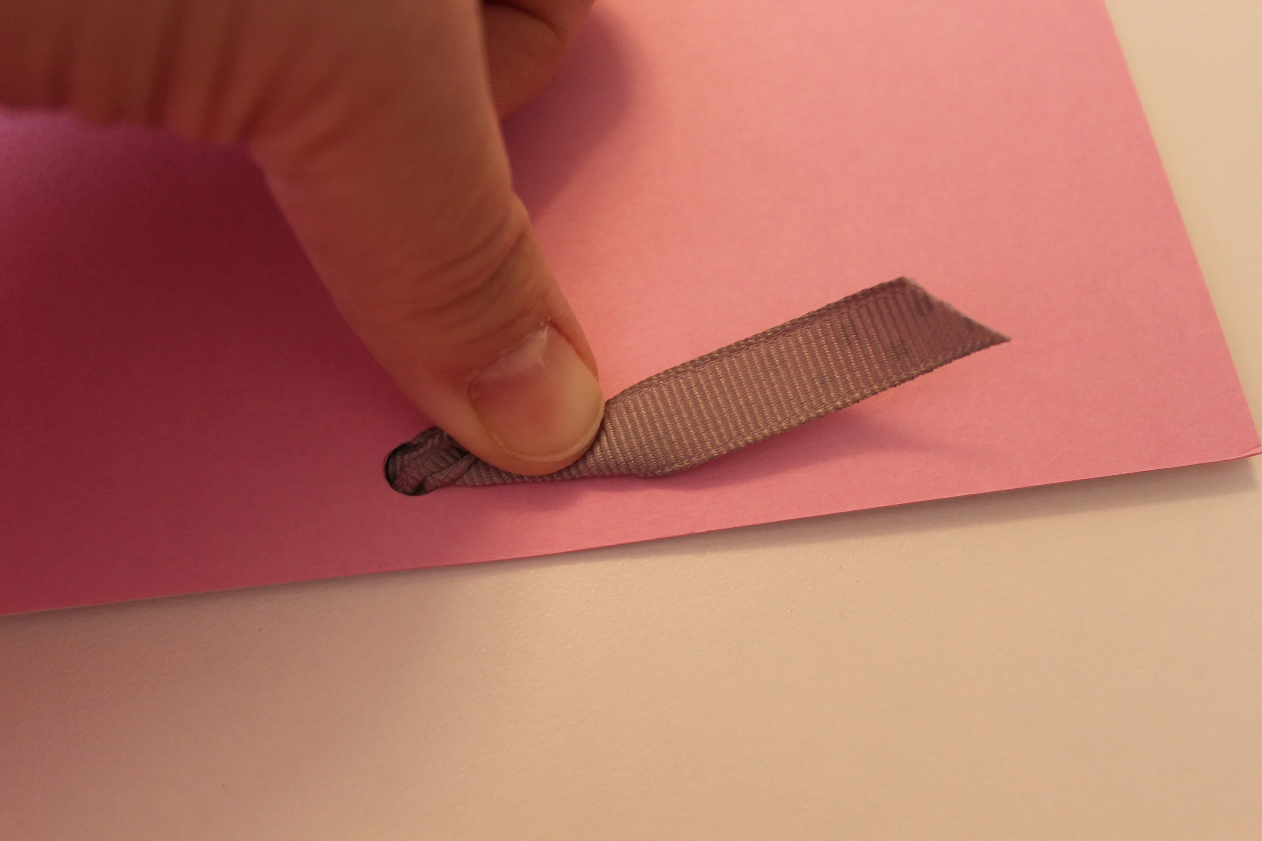 Next I flipped the invite over and pulled the ribbon back through to the front. It is hard to explain this, so see below for the images.