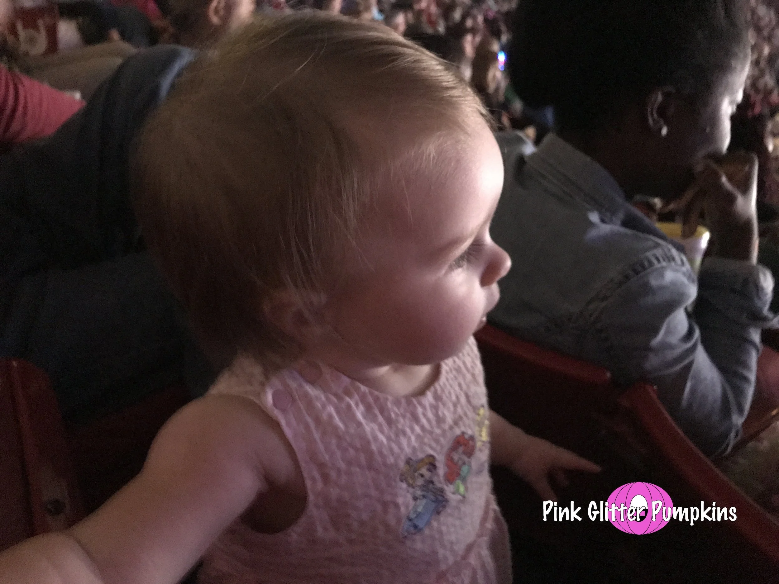 Unfortunately Melody slept the entire first half of the show. On days she takes two naps, she usually naps around 10:30-11, and the show started at 10:30. I thought for sure the loud noises would keep her awake, but nope!