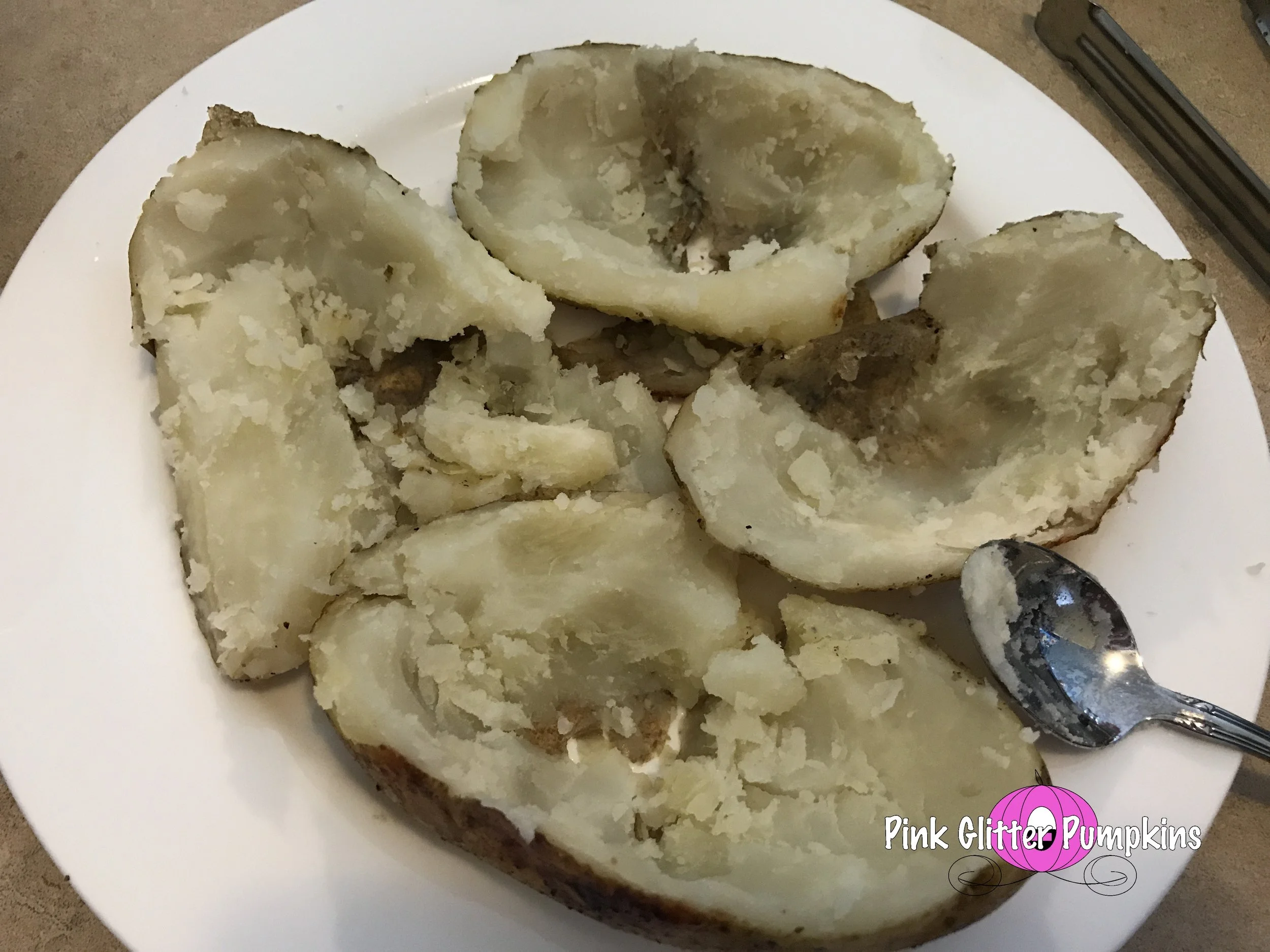 1. Bake the potatoes until tender. I baked them, but you could microwave them.
