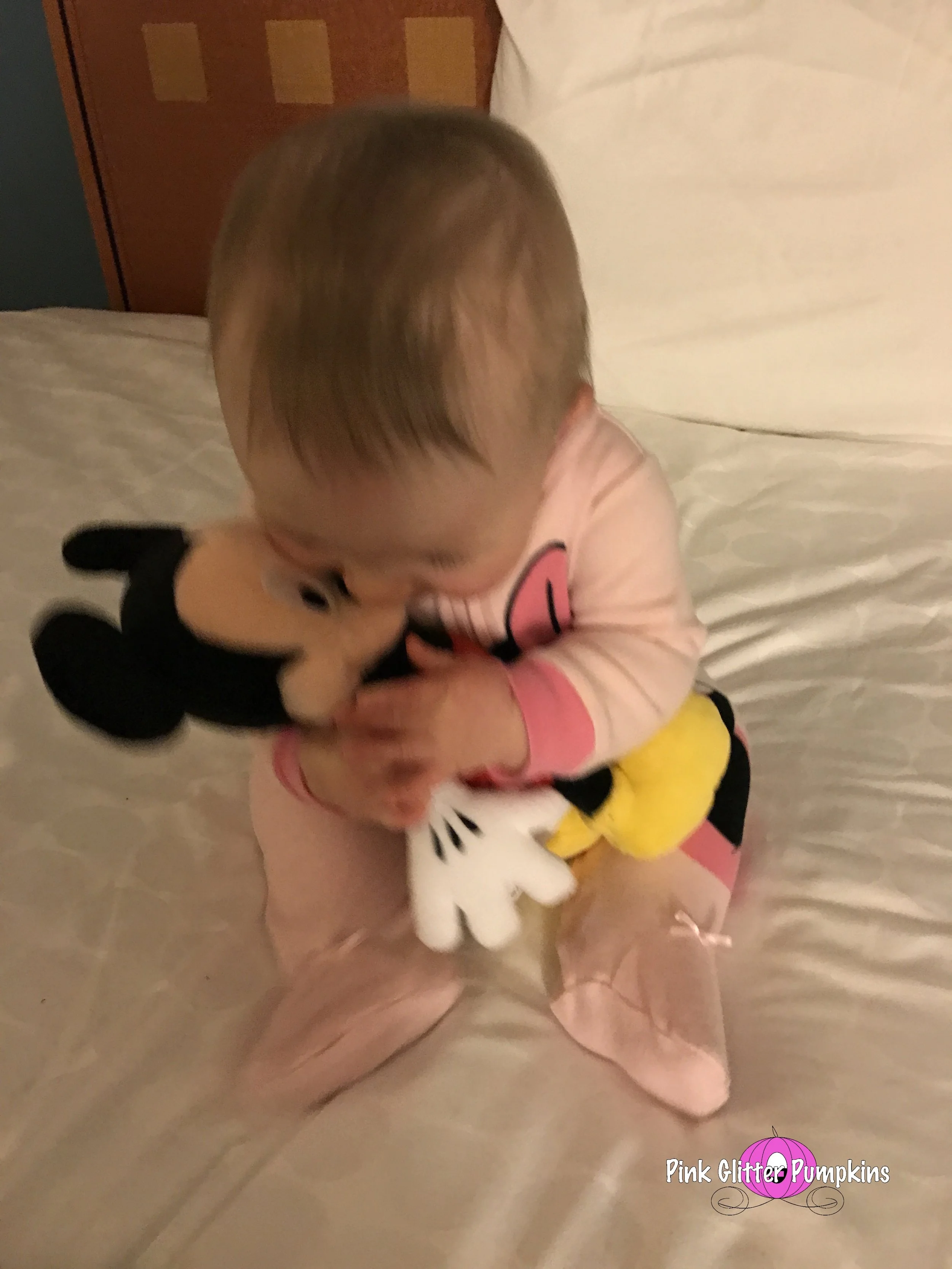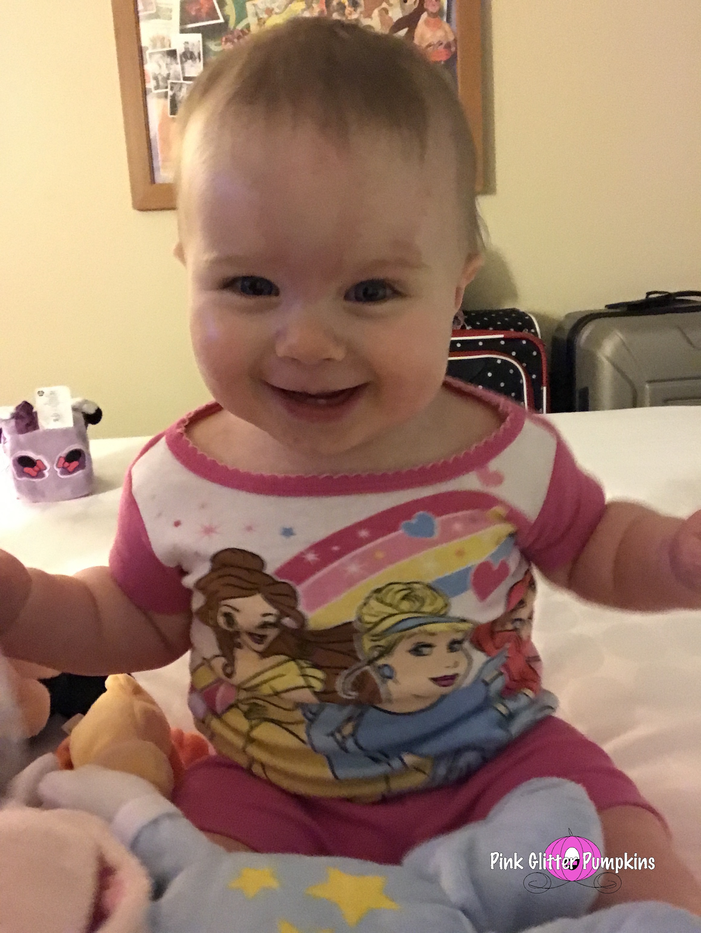 We fed Melody her bottle in the room, then we headed to the bus for Disney Springs. We waited about 10-15 minutes for a bus. We had some time for a few selfies beforehand. We also took a few pictures on the bus of her first ride on a Disney bus!