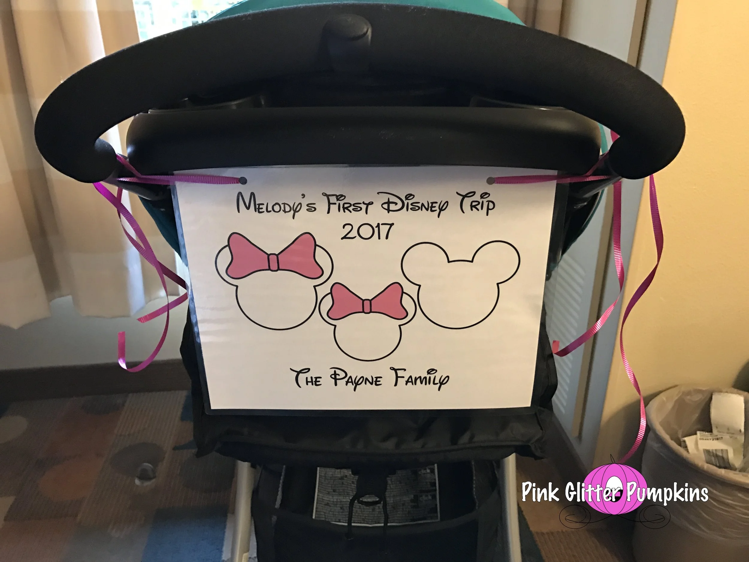 On our recent trip to Disney World, we knew we would be using our stroller A LOT due to having an 8 (almost 9) month old! If you have ever been to Disney, you may have noticed the sea of strollers. You are required to park your strollers a lot. You cannot take your strollers in most lines at the park or inside of a lot of the buildings. And in that sea of strollers, they all can start to look alike. We decided to make a stroller tag that would at least give it some distinction.