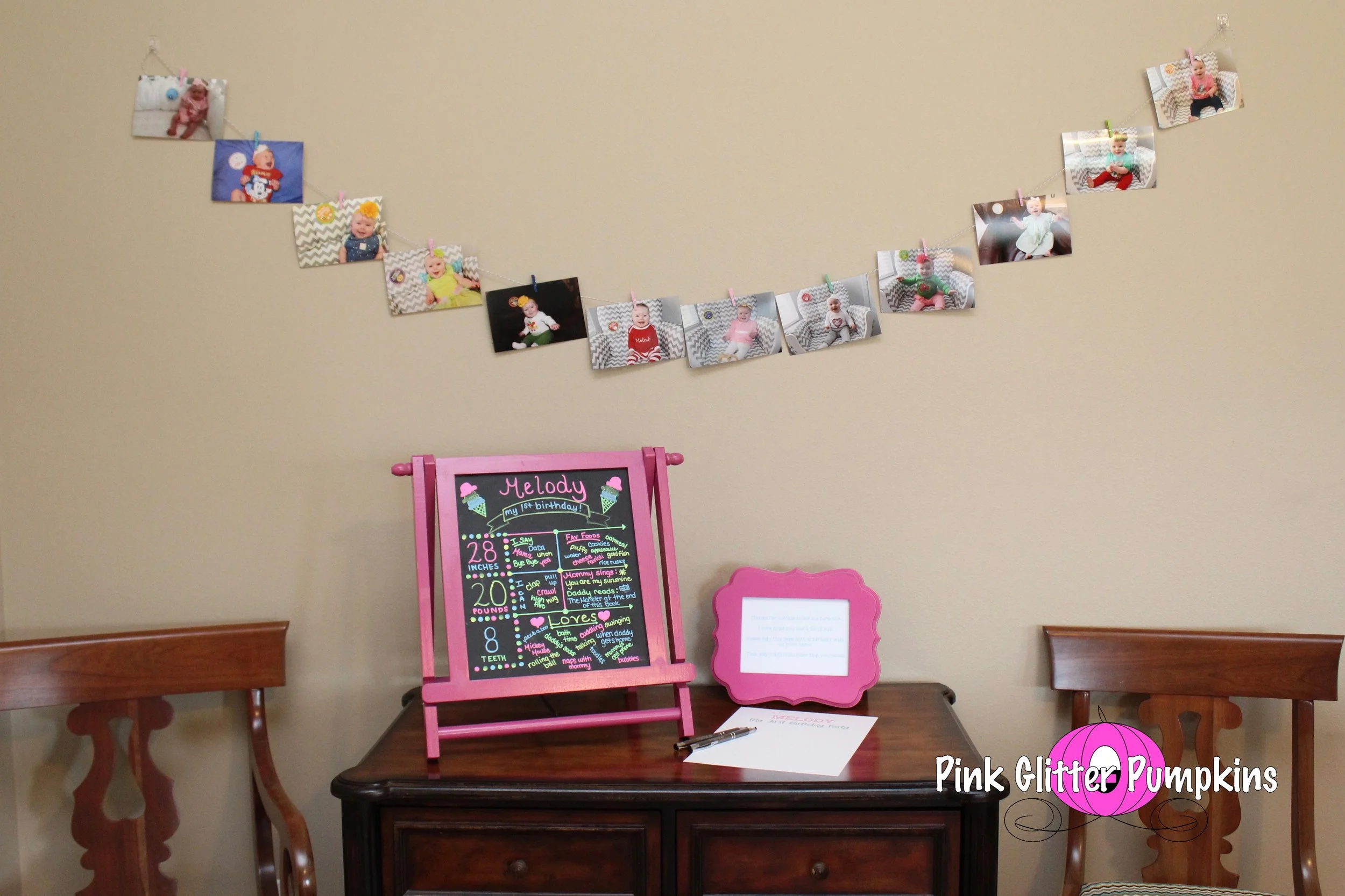 We added decor throughout the livingroom and dining room with balloons, and we had a banner on one of our walls that contained Melody's monthly pictures on it. It was incredible to see the difference from month one to month eleven!