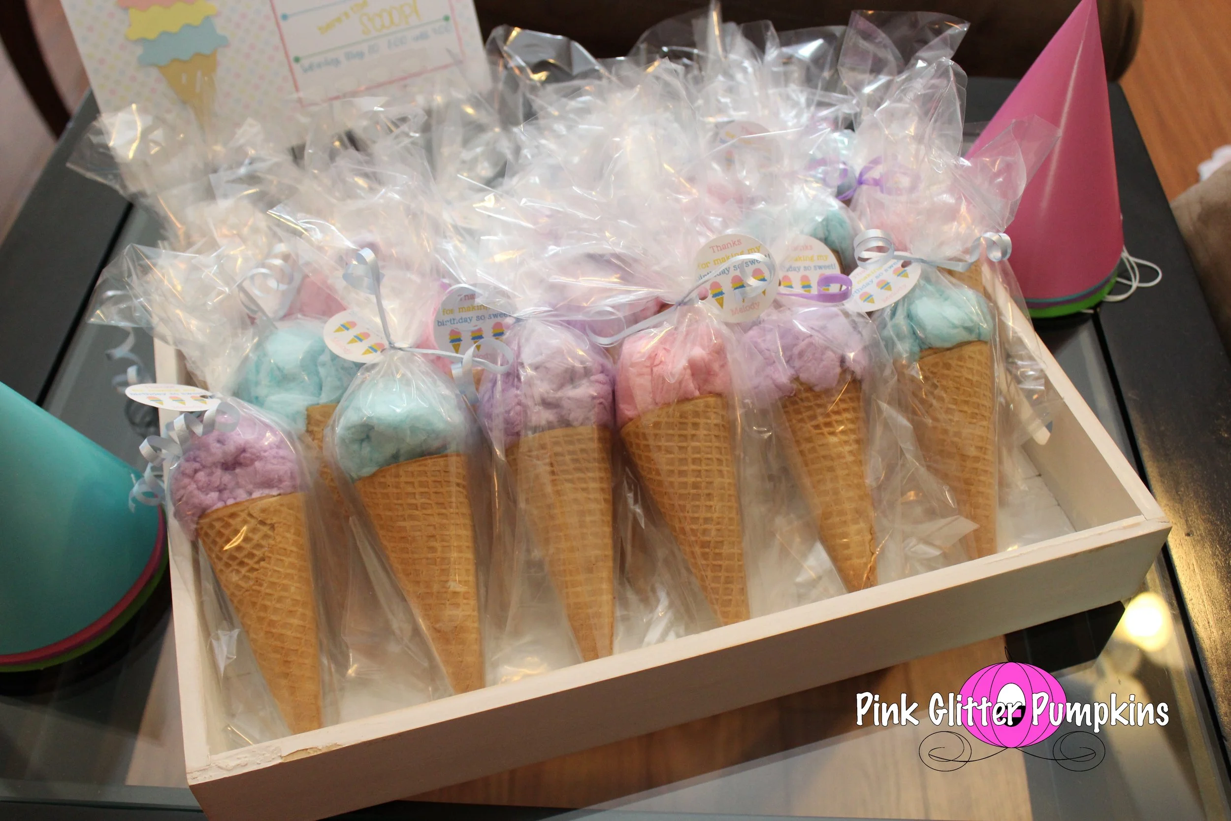 I was super proud of my favors that were made to look like ice cream cones. I placed them in a wooden tray from our wedding and also displayed her birthday party invite on the same table.