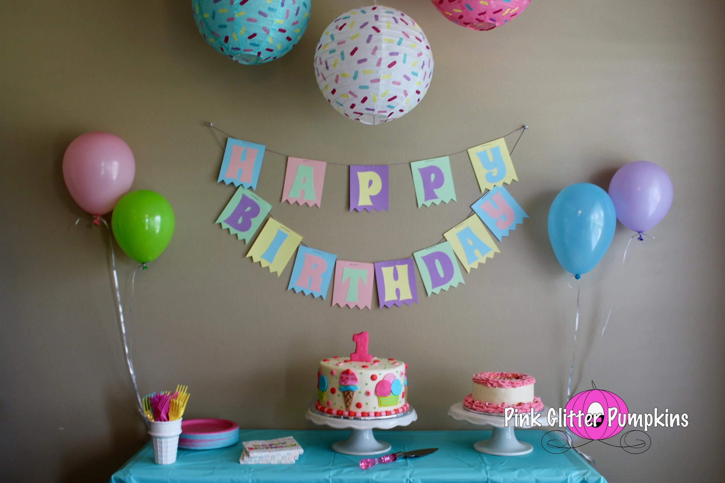 I have said this many times, but it is truly so hard to believe our little baby is ONE! I wanted a fun themed birthday party for Melody, but I didn't want to do a theme that she may want to do one day in the future. So Brad and I came up with an ice cream themed party. I personally loved the end result of the party, and it seemed to go over well with our family and friends. Below are some general birthday party pictures. This was a very DIY party, so I plan to post about all of the mini-projects that were involved. I will link them as they are posted, so be on the lookout for those if you are interested!
