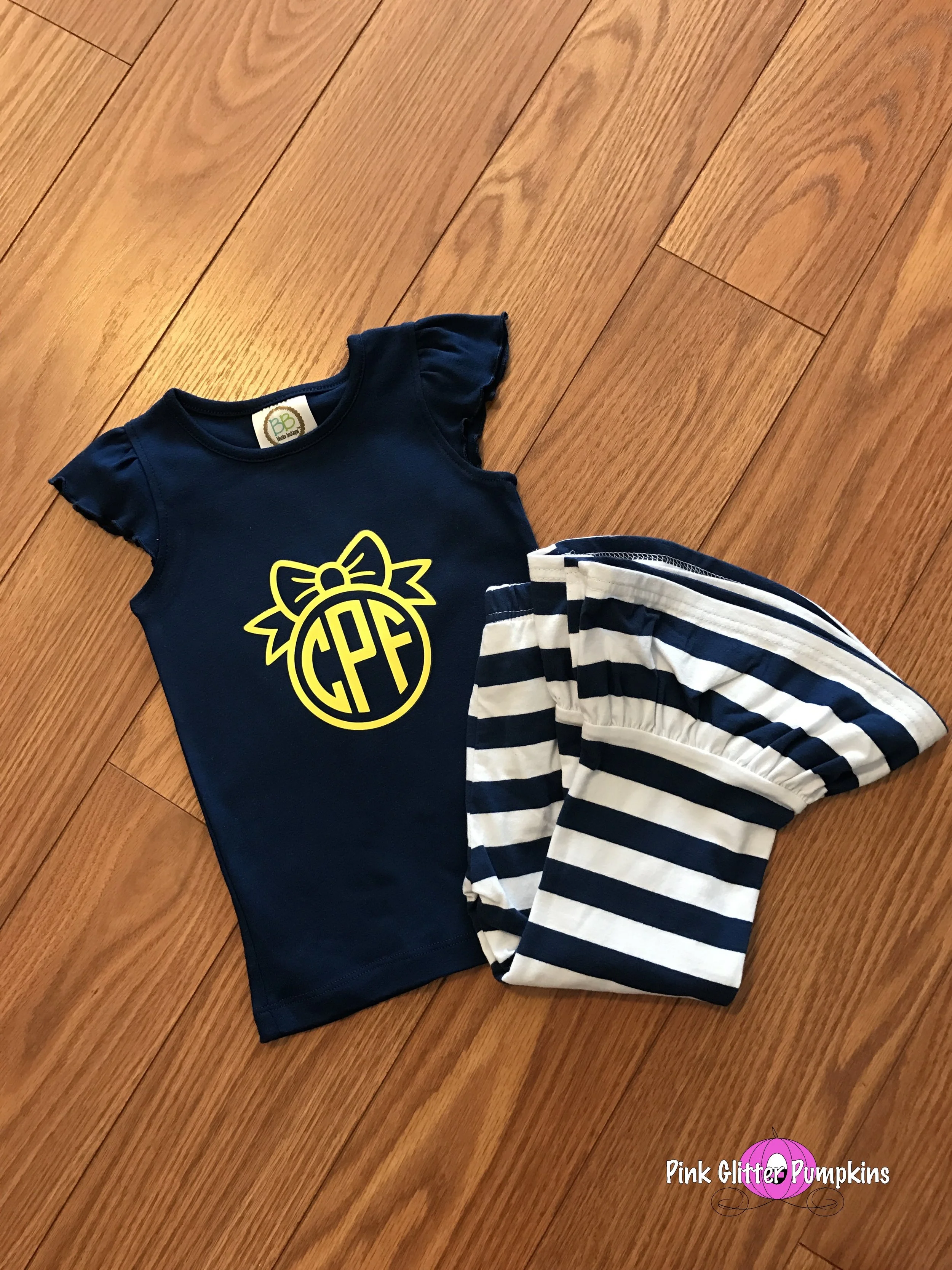 I made a few shirts for Emily's daughter, Lydia, and one for my niece, Caroline. The designs and font were from Silhouette and the shirts shirts, bottoms, and pajamas were also bought from Blanks Boutique.