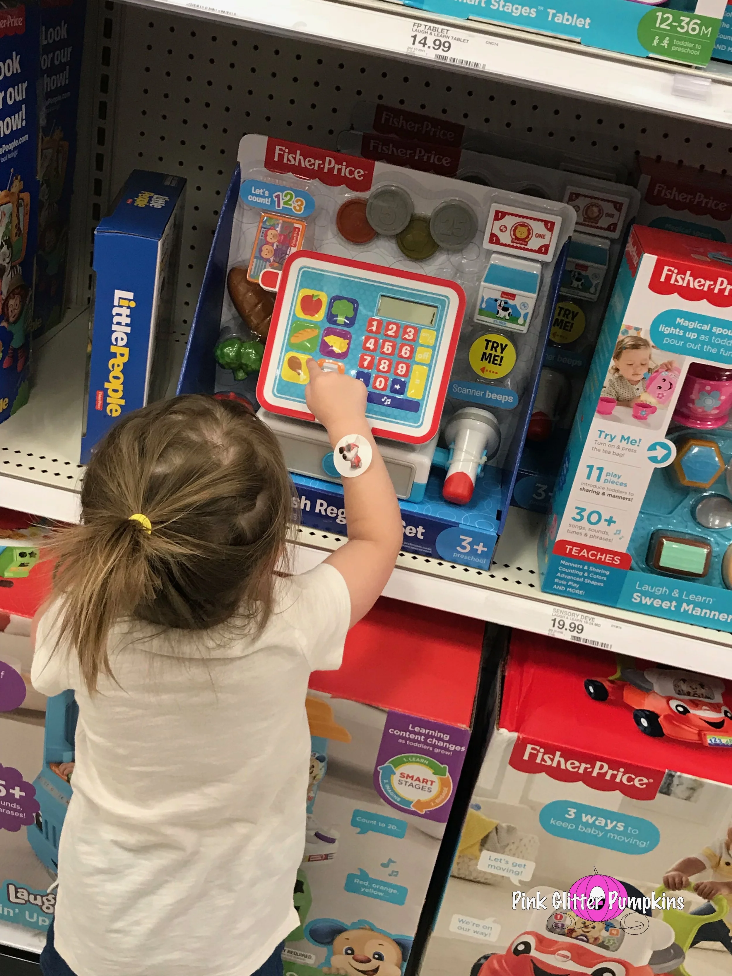 So then we went shopping. We started at TJ Maxx because I was looking for some containers for her lunch box. I let her walk around and wonder the toys after I found what I wanted. I ended up buying her a few things for our beach trip, and I got her a Curious George book.