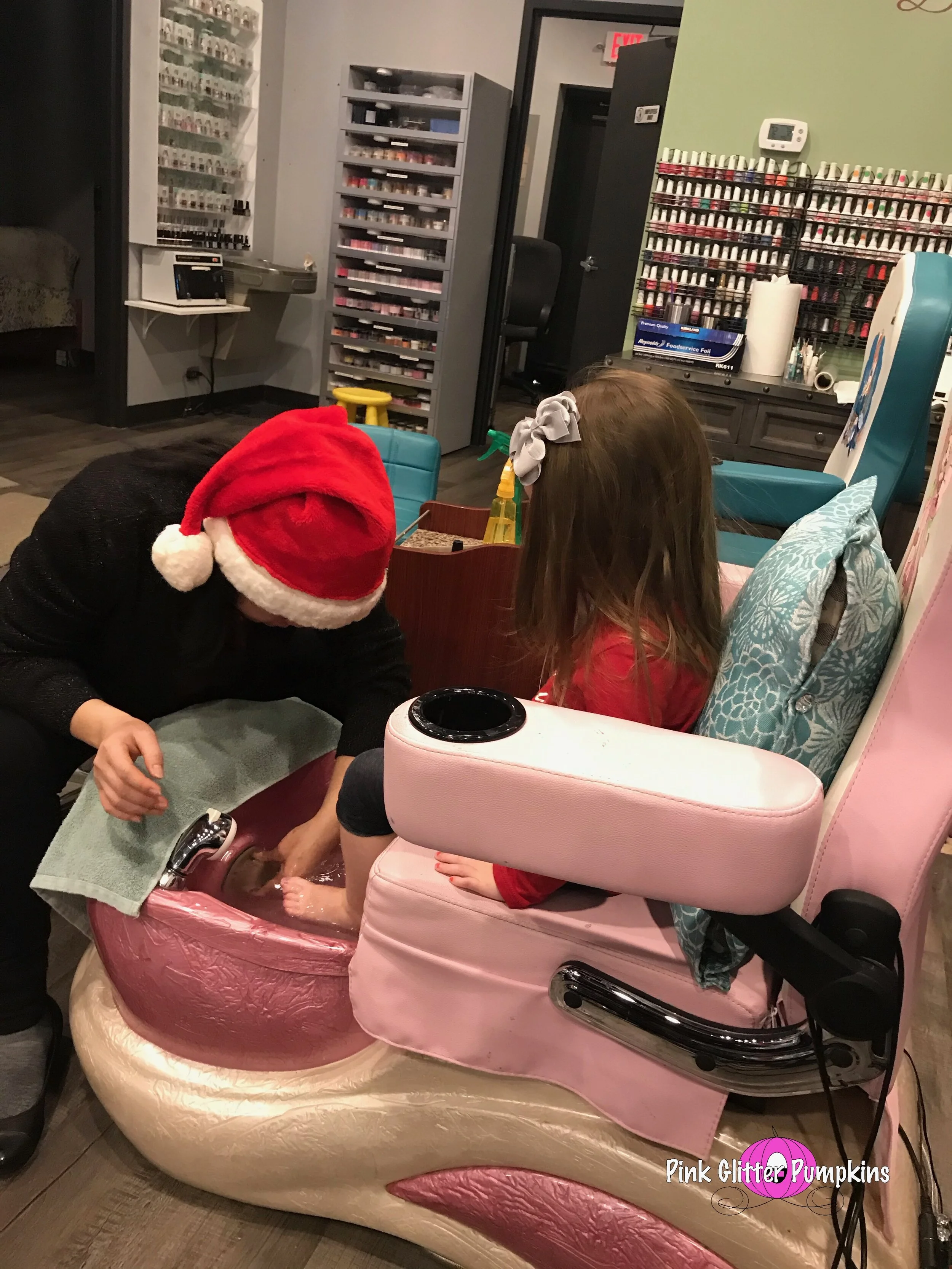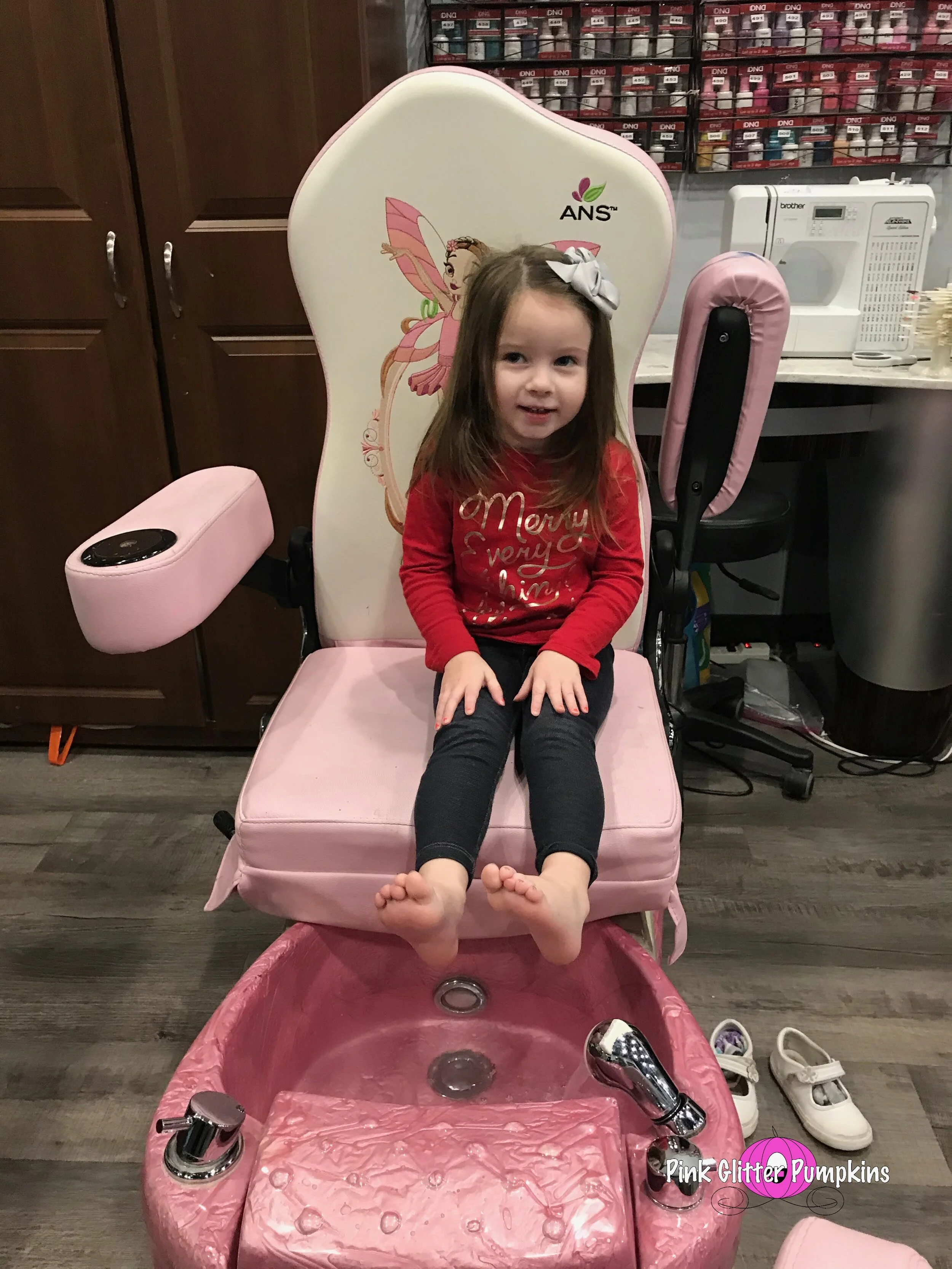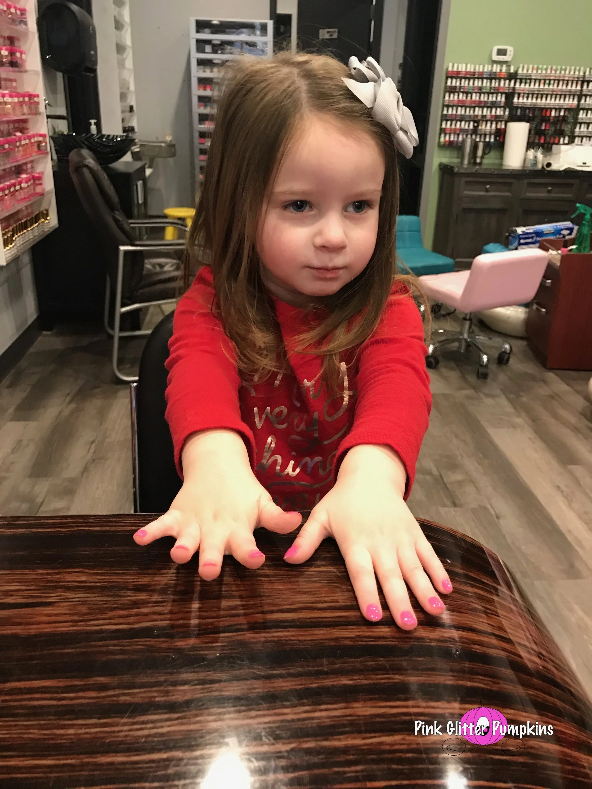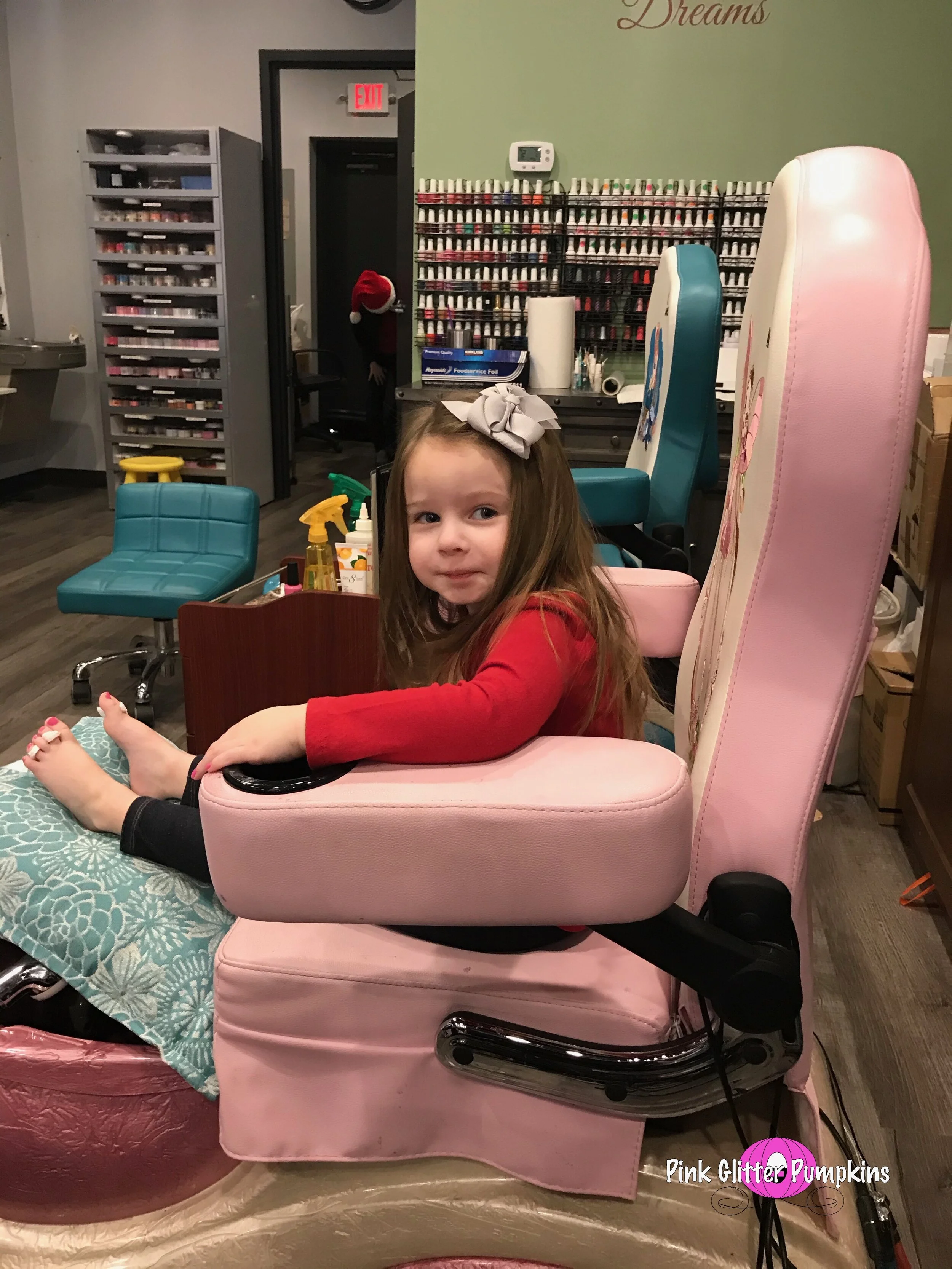 Last week my mom suggested we have a mani-pedi day. Melody loves getting her nails done at home and saw my mom getting a pedicure and was intrigued. My mom was off work, so we decided to go one morning. Melody seemed to really love it except when they “separated” her toes. She has a toe on each foot that is sort of twisted/curly. We have seen a doctor about this, and he thinks it is just fine since she doesn’t really hurt from it. I think it is just uncomfortable for her when someone is physically separating them. Anyhow, she loved it, and she said she can’t wait to do it again. And how adorable does she look?? I mean they even massaged her little leg and feet, ha!