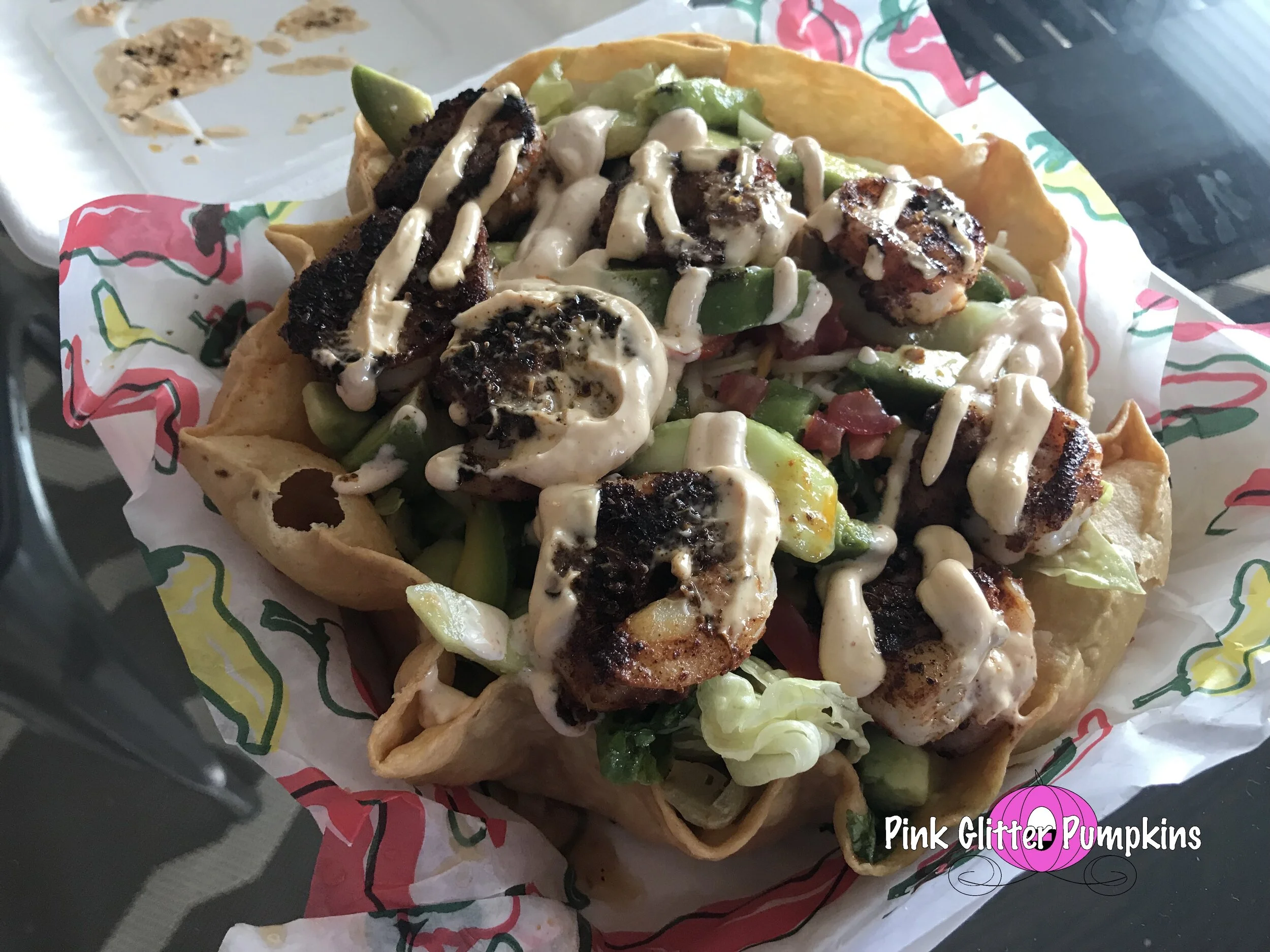 I did not get a picture of Brad’s tacos, but he did enjoy them. I ordered the shrimp taco salad, and it was amazing. I was sad that we waited until so late in the trip to try it because it was really good. I was nervous about it being soggy or cold, but it was nice and warm. And the taco salad shell was super crisp. The seasoning they used was great. I couldn’t finish it all, but I would definitely eat it again!