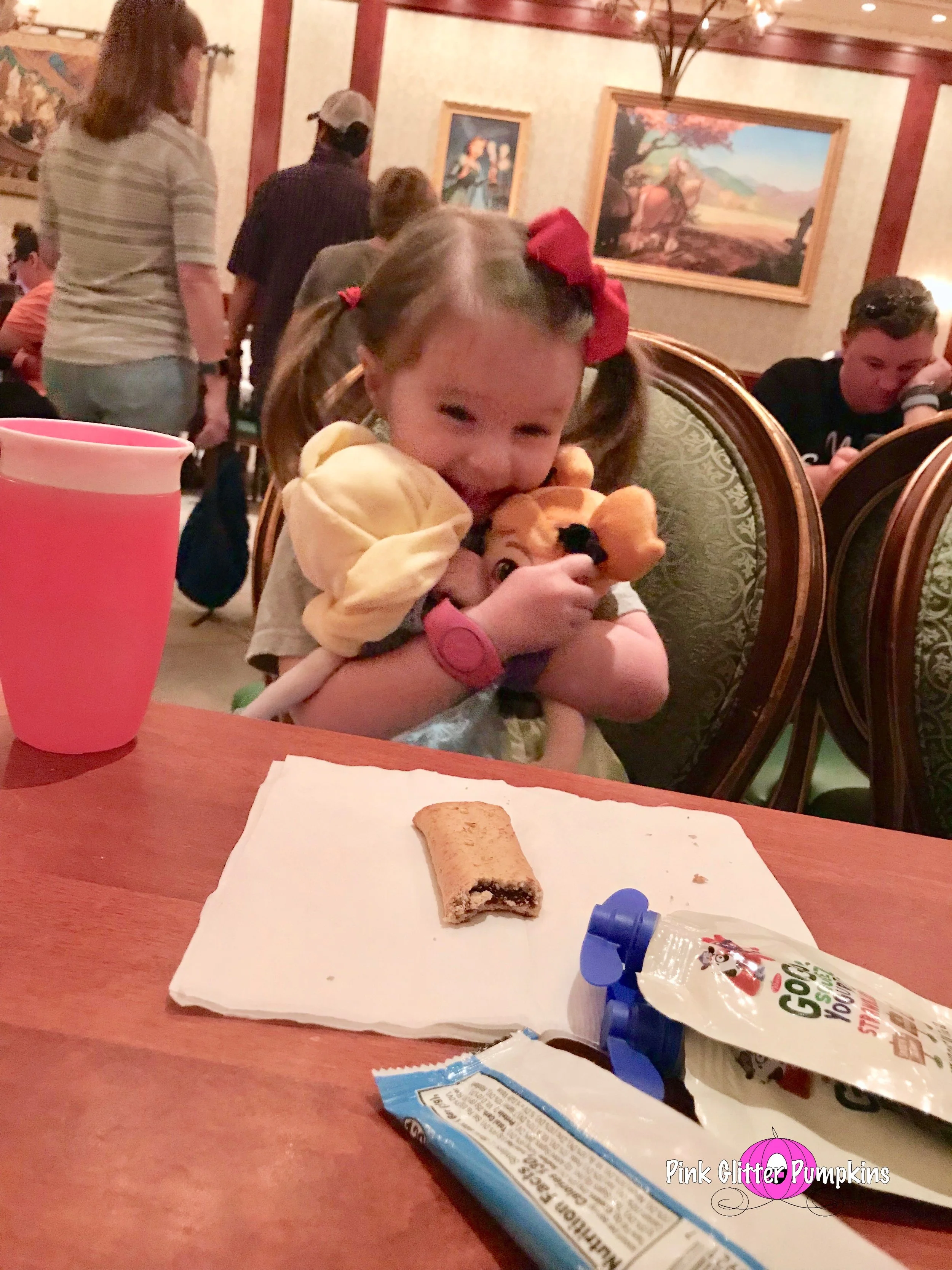 So after our pictures, we headed to check in for our breakfast reservation. We were sent into the preorder like, which like I mentioned back in February, was much longer during the pre-park opening hours. Then when it was our turn to go inside, they sent us in the line with the people who had not ordered. It went much slower and was very frustrating. It took us about 20 minutes to get through the line even though we pre-ordered. But we went on with life because we didnβt have much of a choice. So we ate breakfast and had our usuals.