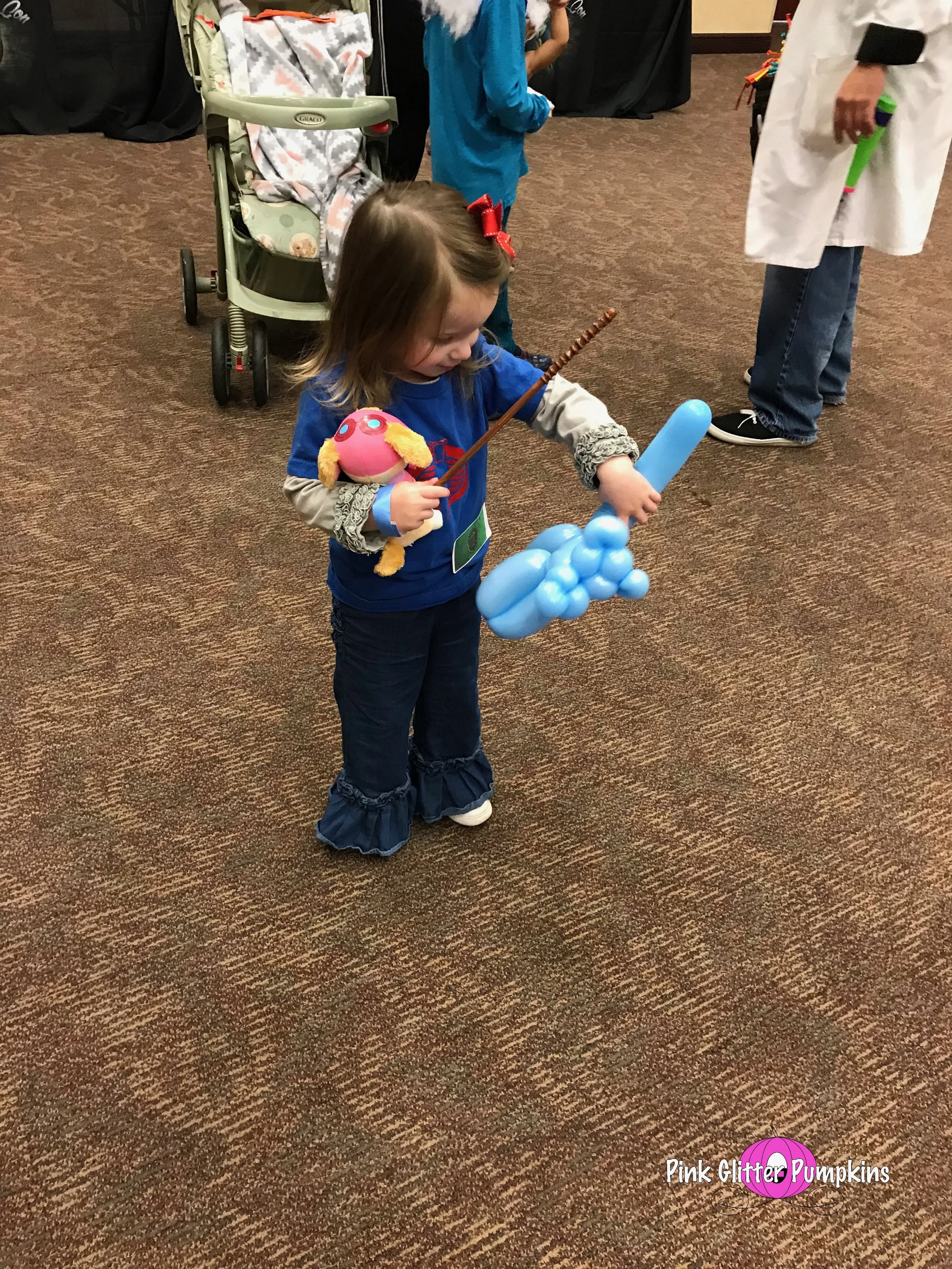 Then we headed to the Kids Cons Room. It was honestly more lackluster than I could have imagined. They had a station where you could be “sorted” into your Harry Potter house. She was given a sticker and a wand. She loved the wand and still plays with it today.