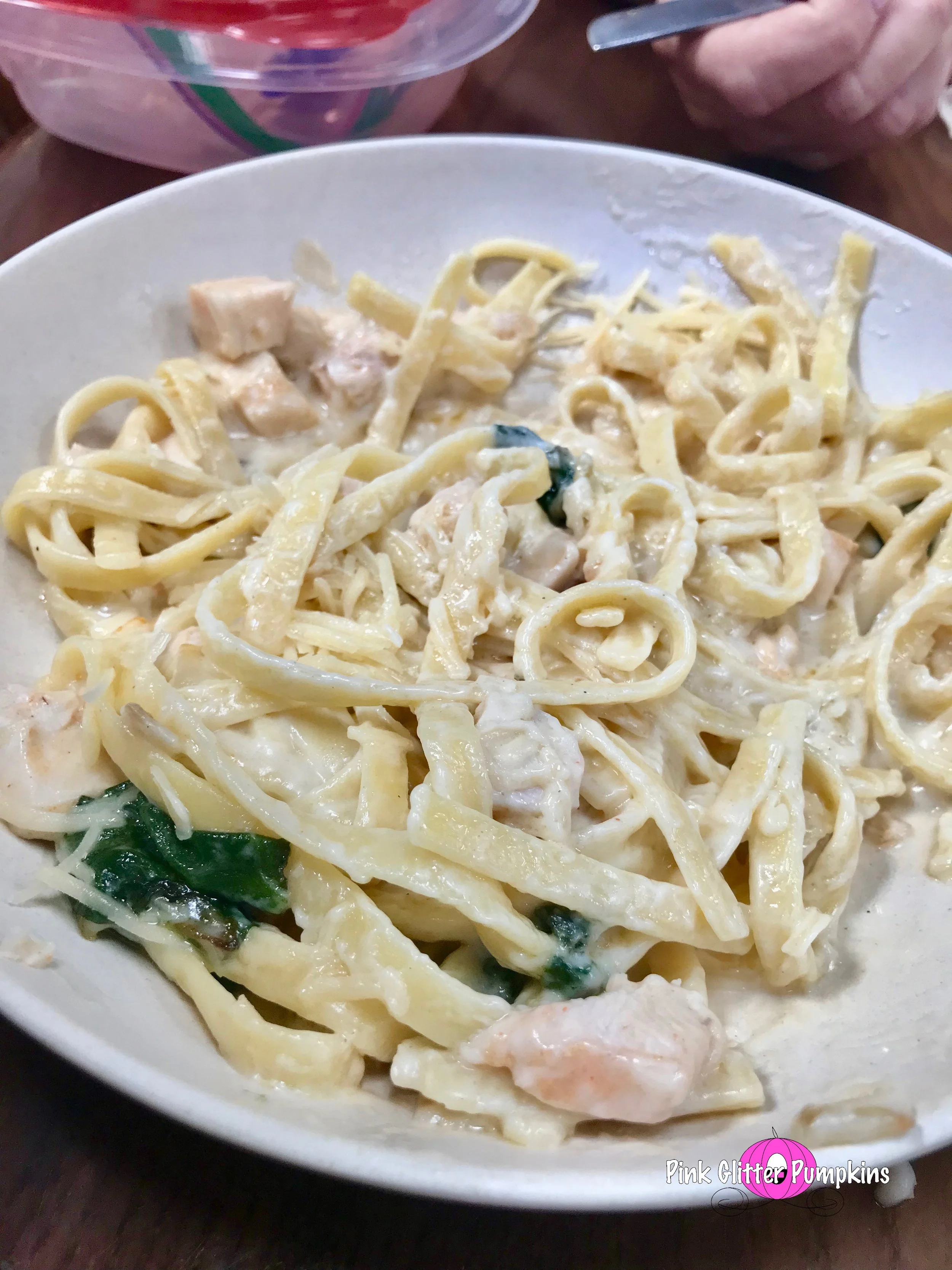 The last thing we tried was the create your own pasta. My mom picked chicken Alfredo with spinach. It was pretty good. It wasn’t my favorite of the three new dishes we had, but it was good enough that I would order it again. This dish took forever to make though.