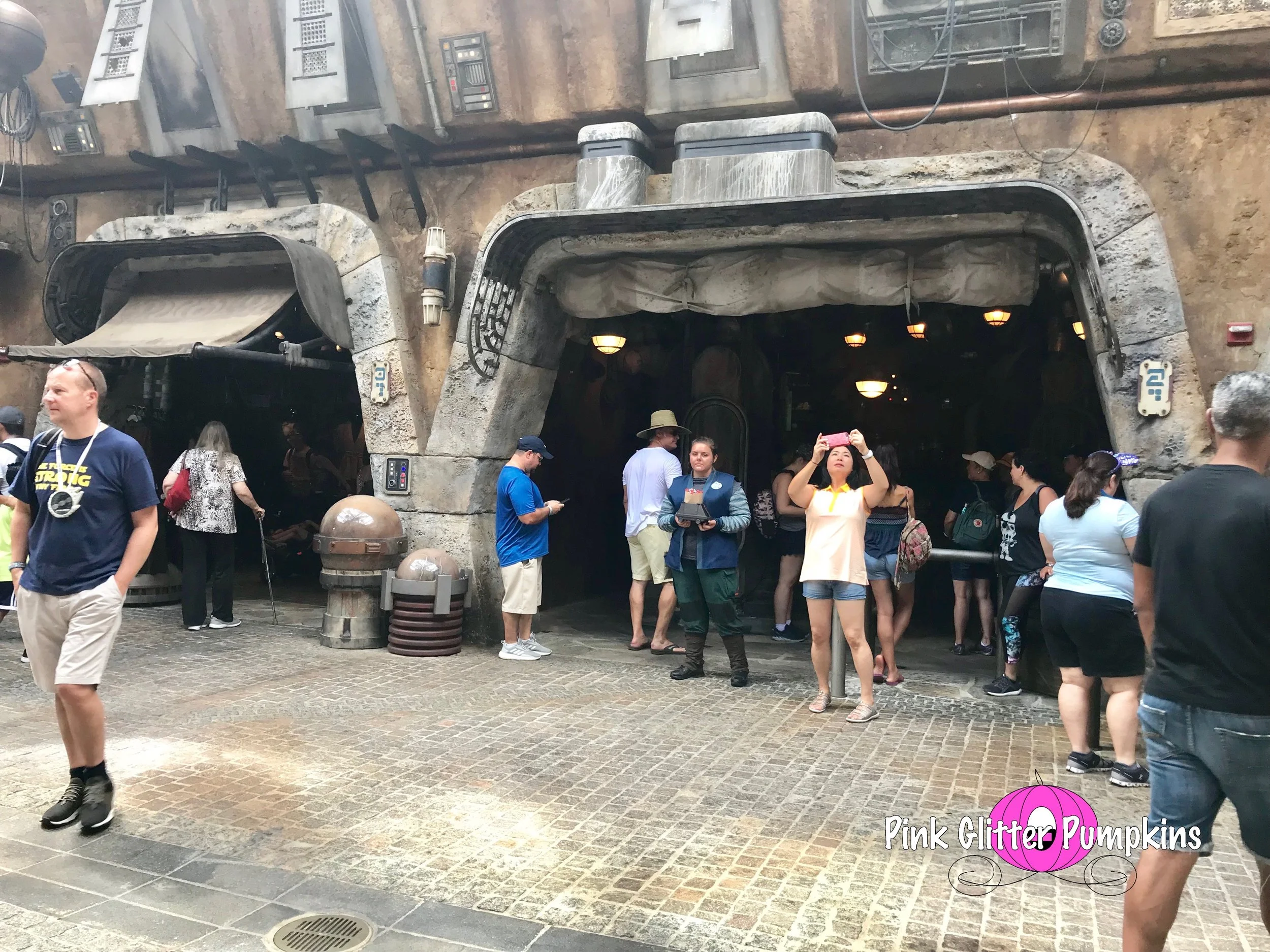 So we took as many pictures as we could throughout the land itself. It was much larger than either of us expected. I honestly expected it to be about the size of Pandora. And Pandora to me feels super small and underwhelming (and I am certain I am in the minority here). The land has so many unique and small details throughout. I have to be honest, I didn’t really look at a map before going in, but we did have plenty. We just kind of walked around and really took it all in. I do not necessarily recommend this if you want to know where you are going though, because they do not put the names of any of the locations anywhere. It really plays into the theme though. We kind of knew what everything was generally though. But it wasn’t until I got home that I realized where the Droid shop was and that there was a restaurant we missed, ha! However, one of the most unique things here you won’t find on a map. The characters are free roaming. It was really interesting to see them in this environment and how they would all interact with one another throughout our time there.