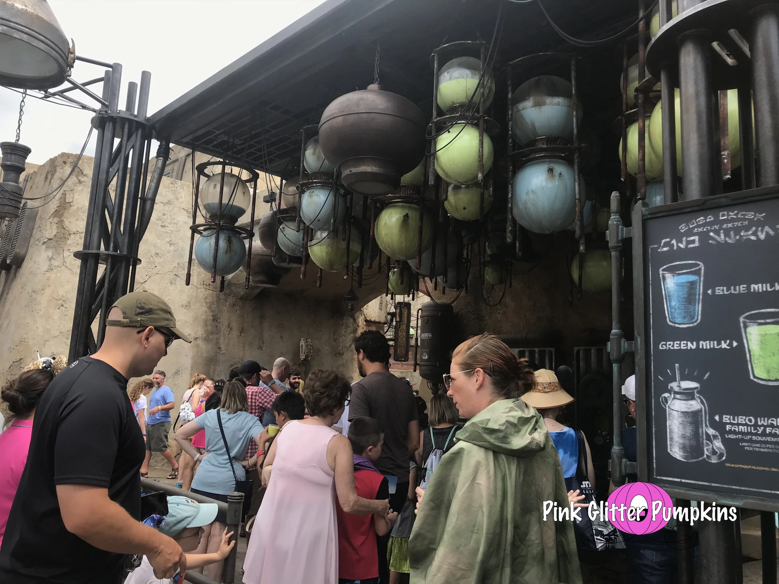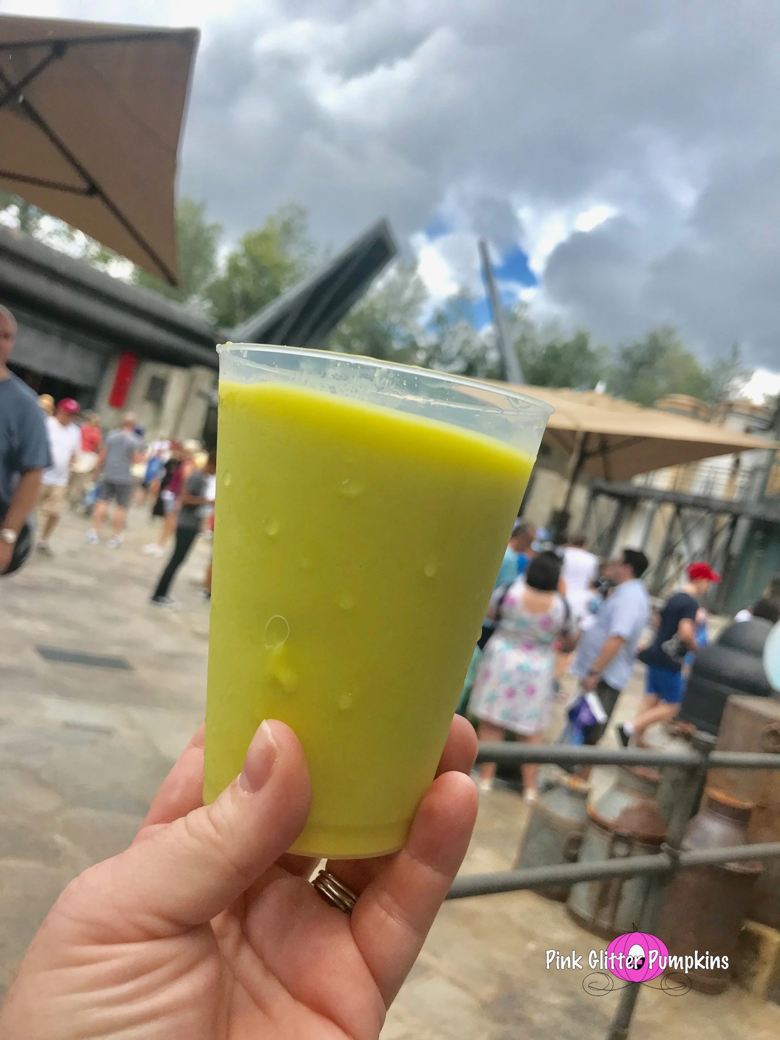 We didn’t get too adventurous when it came to the food here this trip. We were in between breakfast and lunch, and I had not read enough reviews on the actual food for me to devote time with my kid eating there. However, we did partake in two things. One we bought one of the unique cokes while there. During this trip they announced that TSA wouldn’t allow them, and since we drove, we went ahead and got one. Of course they have sense reversed their decision. The coke tasted the same, but it definitely is a display piece later. And the other thing we tried was the blue and green milk. There was literally not a single person in line, so I jumped at the chance to try them. We did the non-alcoholic versions, it it costs us about $15 to try both. I hated to try one and not the other, so I splurged. Well the verdict, green is bad! Oh my we each took one sip and threw it away. I felt awful throwing away money like that but I could not have anymore. It tasted like a flower. It was not ideal at all. Now the blue was amazing. We actually contemplated going back and getting a second before leaving the park but the rain changed our minds. It was fruity and really good overall. It is really hard to explain other than that, ha! But I definitely recommend trying both once and deciding for yourself!