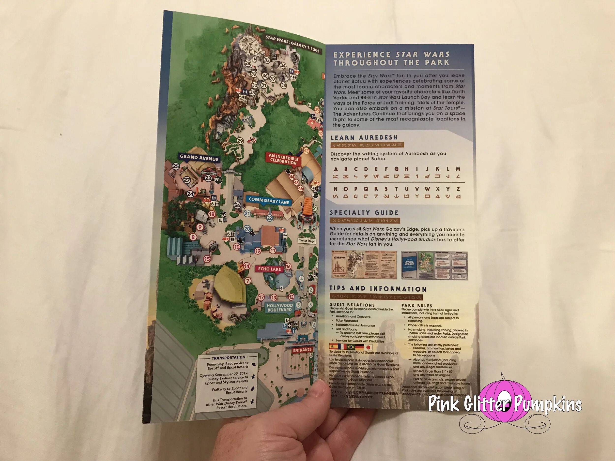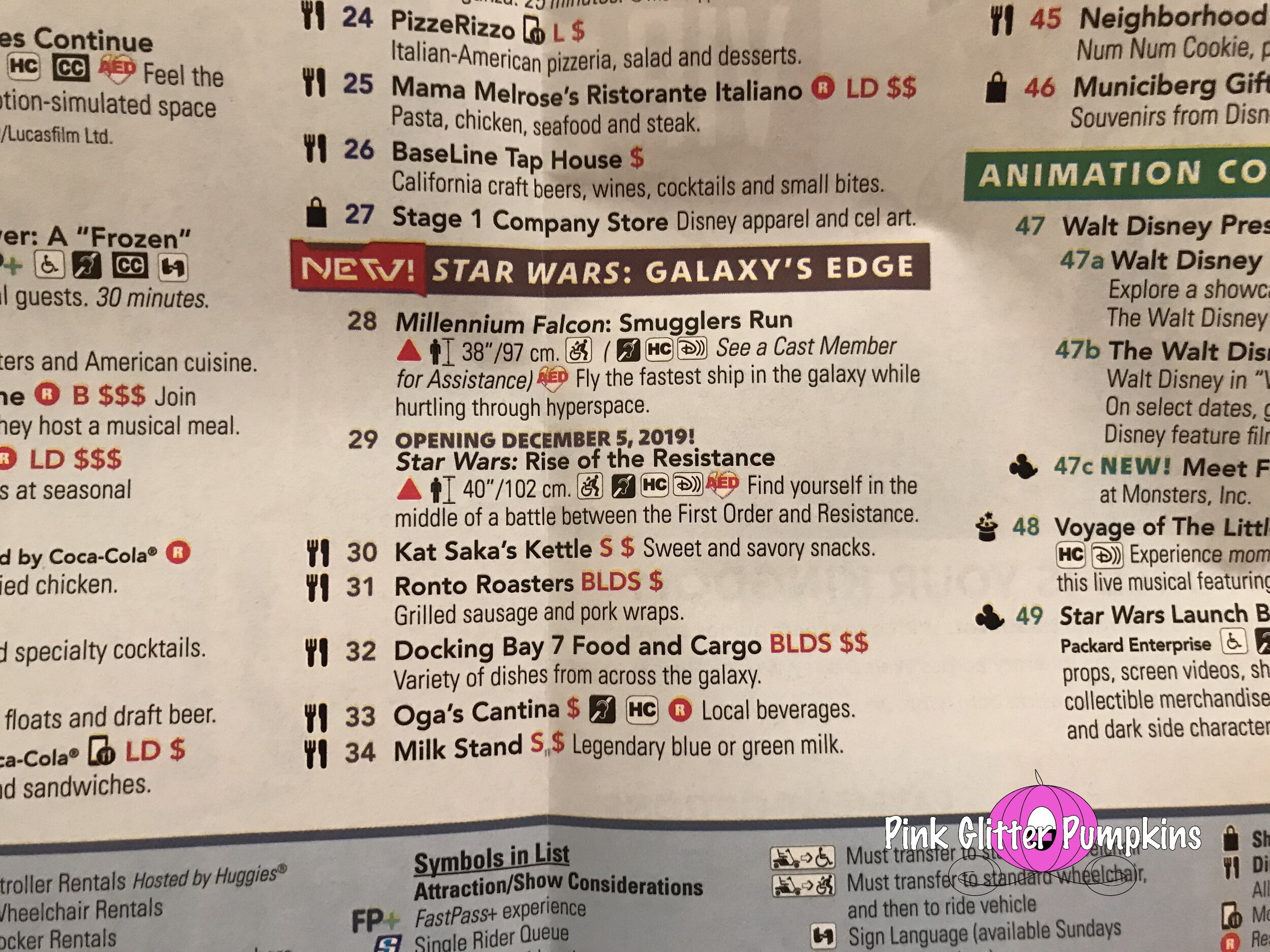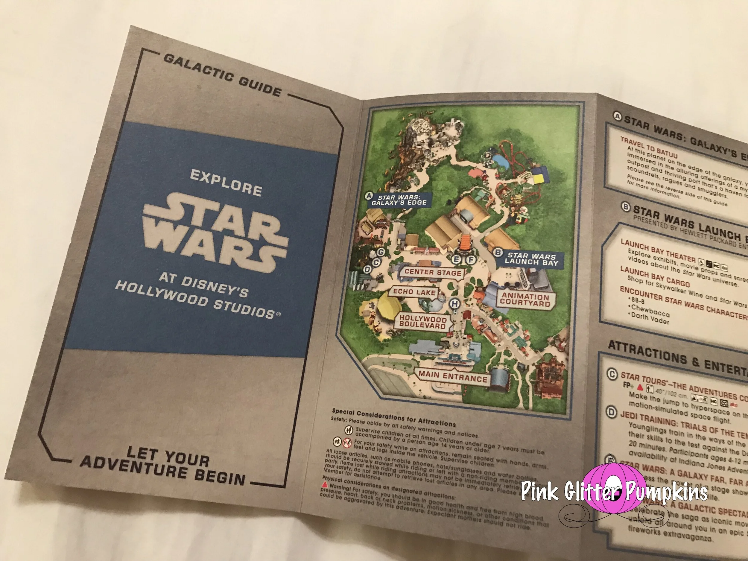 Also below are the maps we were given while at the parks. The first map you see is the standard park map you normally would get. We found found these at the entrance of the parks where all the park maps are located. The second park map is a much nicer map made for the opening. It is made of higher quality paper, and changes color with the light in some spots. It also provides more information about Galaxy’s Edge. These were handed to us as we walked in the park. The third map was exclusive to Galaxy’s Edge. It does not provide anything for the other areas of Hollywood Studios. It is made of an even heavier cardstock, and it provides a lot of information about the area. It is also pocket size to make it handier than the larger maps. These were handed to us as we entered Galaxy’s Edge. All very nice keepsakes.