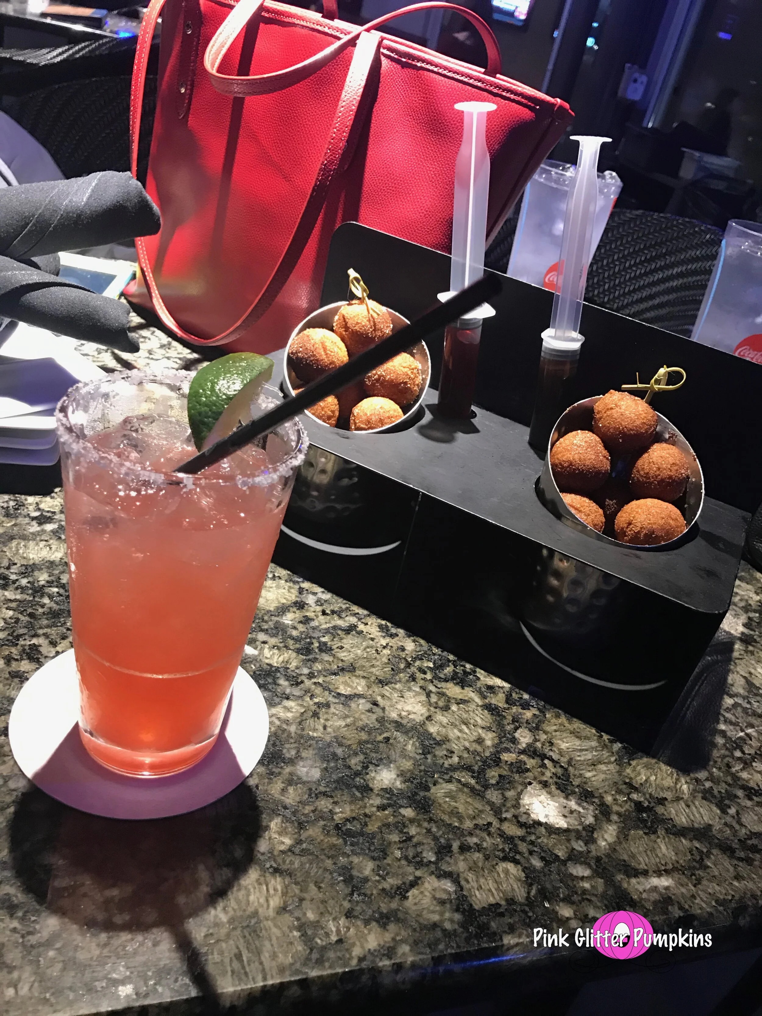 So we did eat dinner before going, but we opted to order drinks, an appetizer, and a dessert. Drink wise, I ordered the Patron Paloma (last picture), and Strawberry Cuervo Marg (first picture). The Patron Paloma was awful. I continued drinking it and chasing it with food, ha. It was really strong, and the sparkling mineral water wasn’t a great addition. The strawberry cuervo marg was great. I loved that it was made with silver tequila. Emily ordered the orange dream (I didn’t get a picture of it). It tasted like a creamsicle. It was delicious and a super tasty drink.