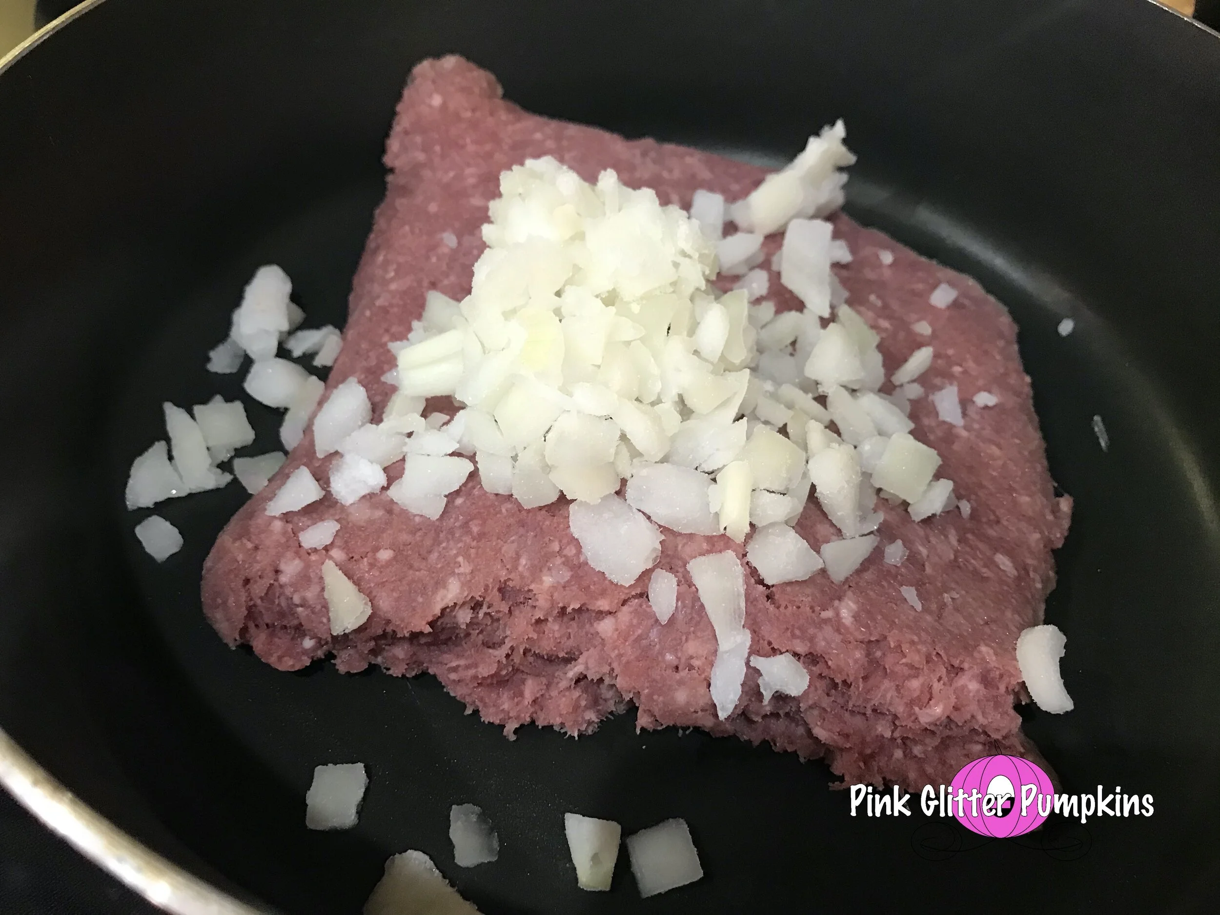1. In a large pan, brown the beef with the onions. Drain the fat and set the beef aside.