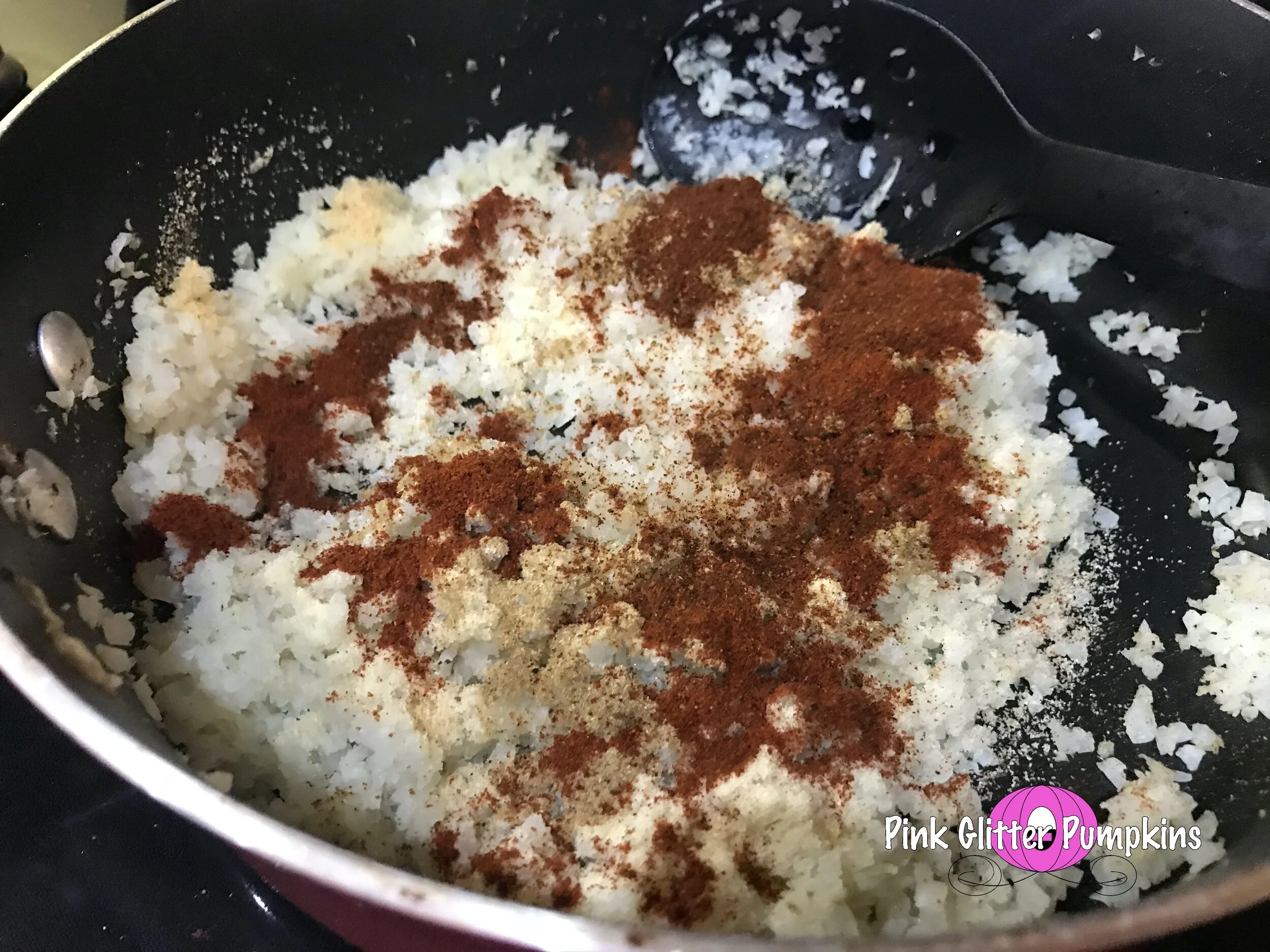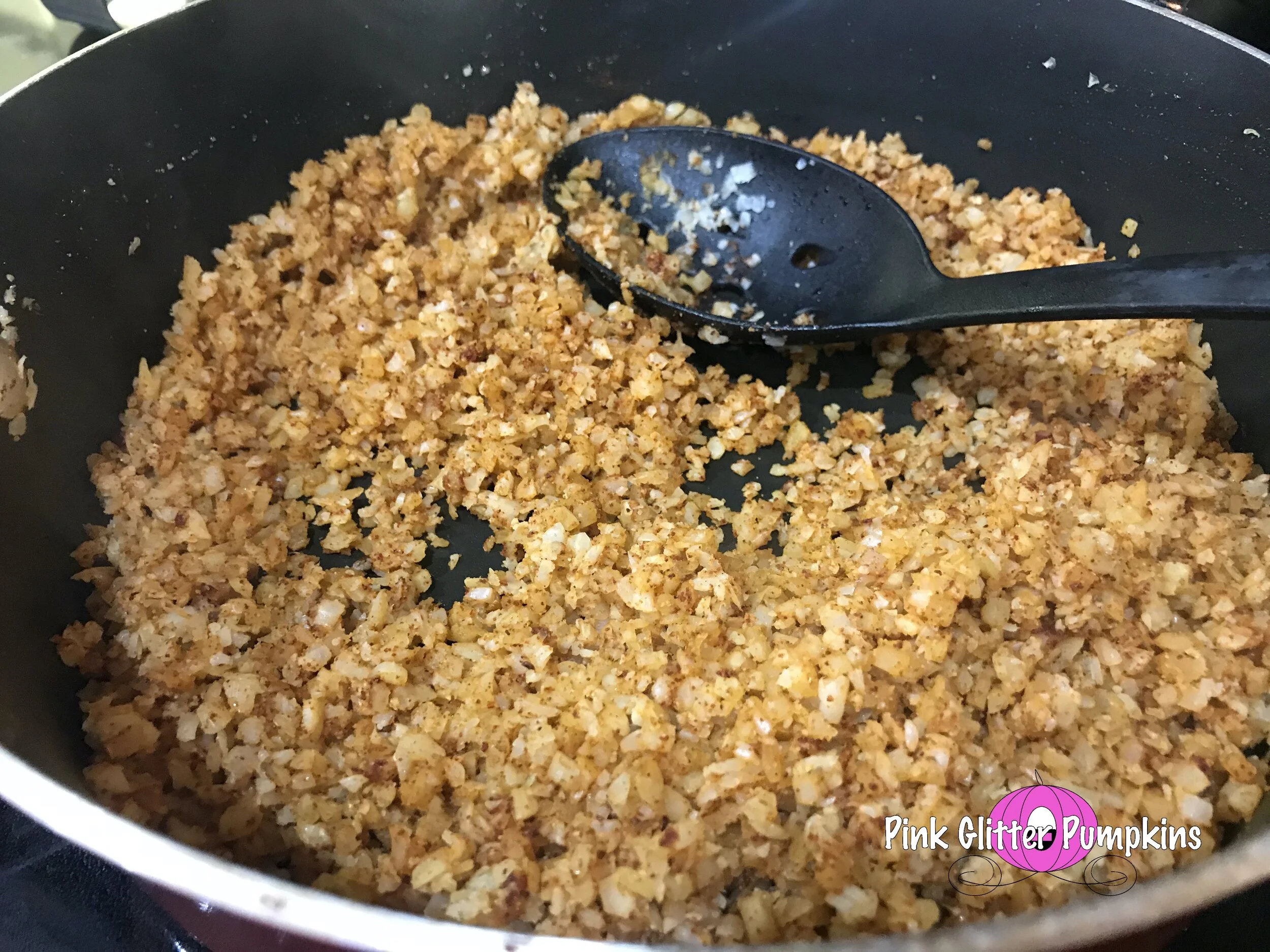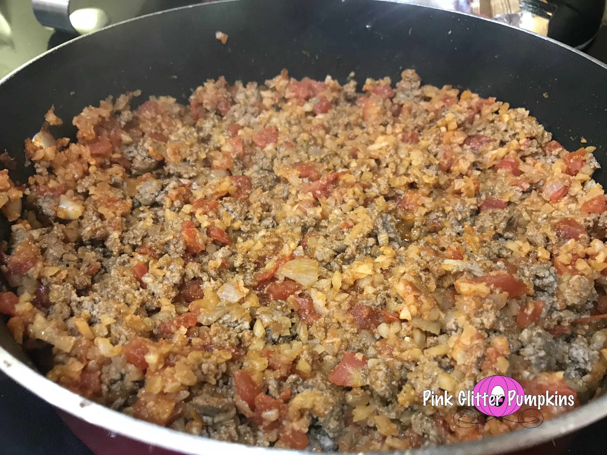 2. While the beef is browning, cook the cauliflower rice per the instructions on the bag.