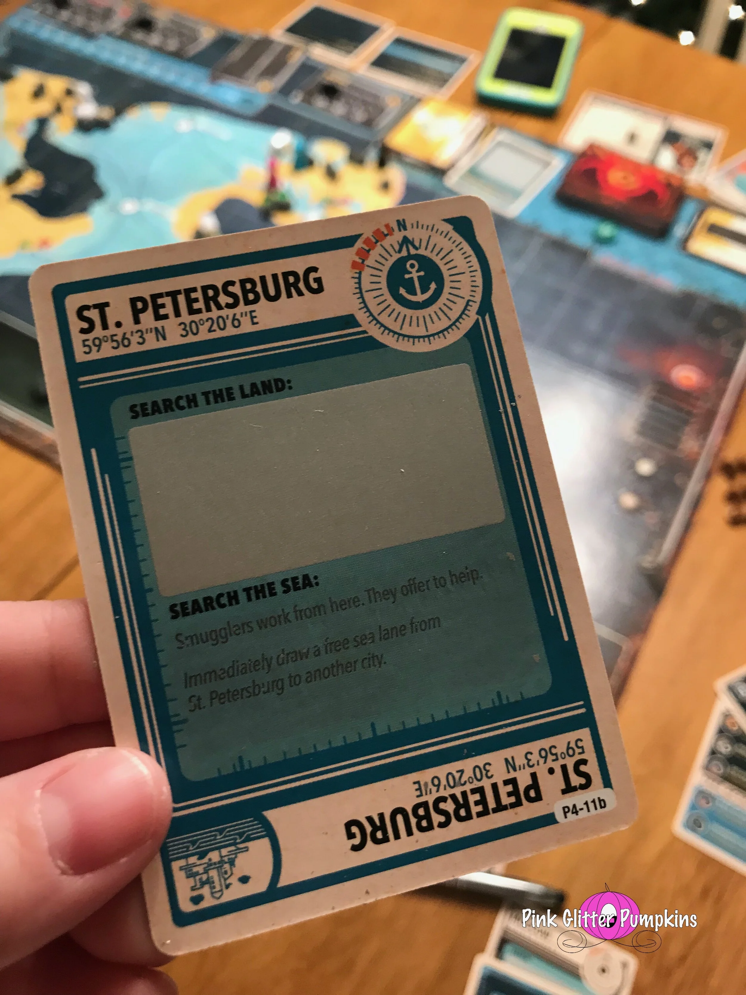 We also received two new actions. One was build a satellite tower. The other was transmit. If you are in a city that contains a tower, you can give 1 card matching the color of that city to another player. This is a very useful action. With it also came game end upgrades allowing you to make a tower permanent.