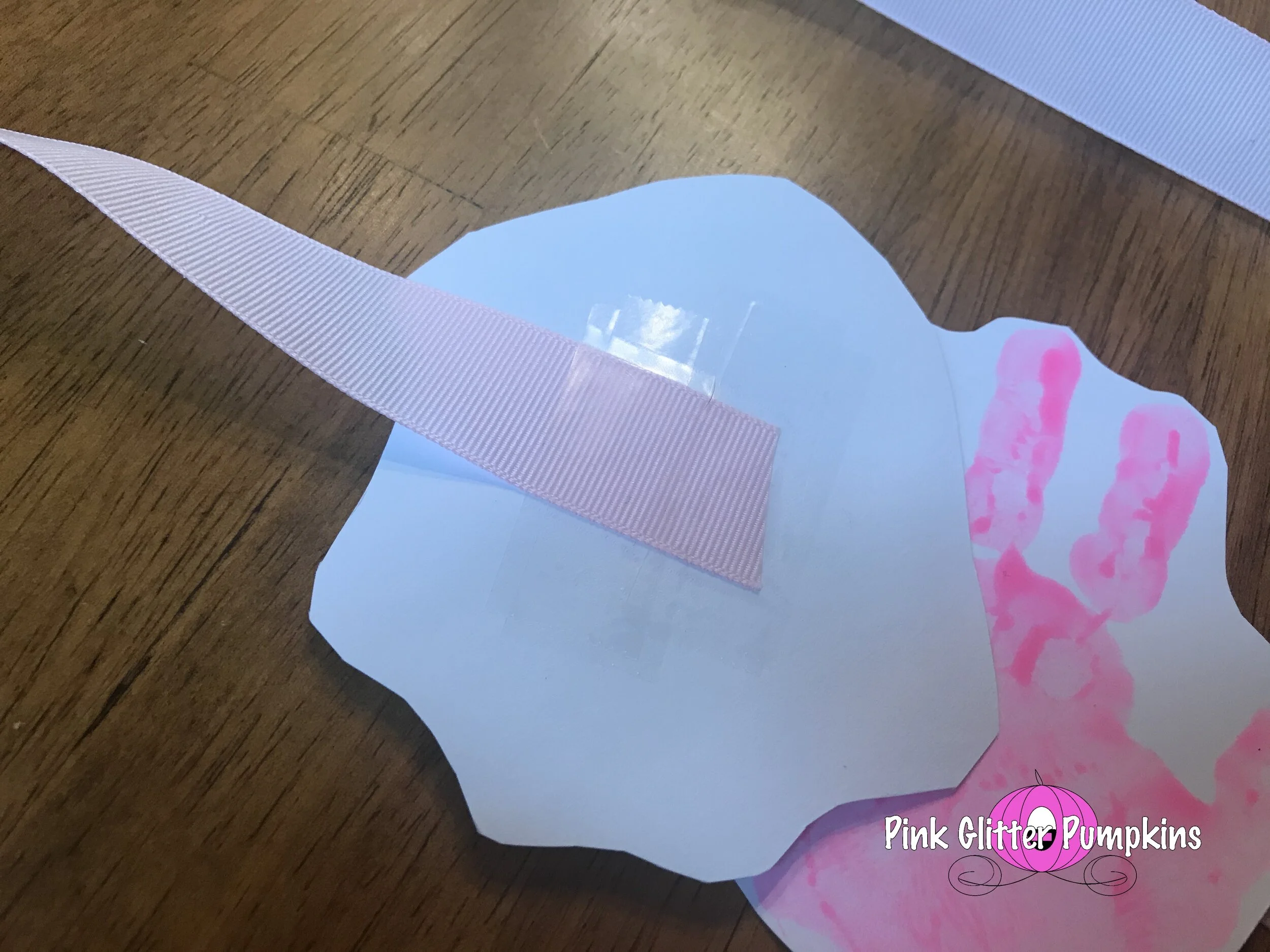 Then I used tape to tape her hands to each end of the ribbon.