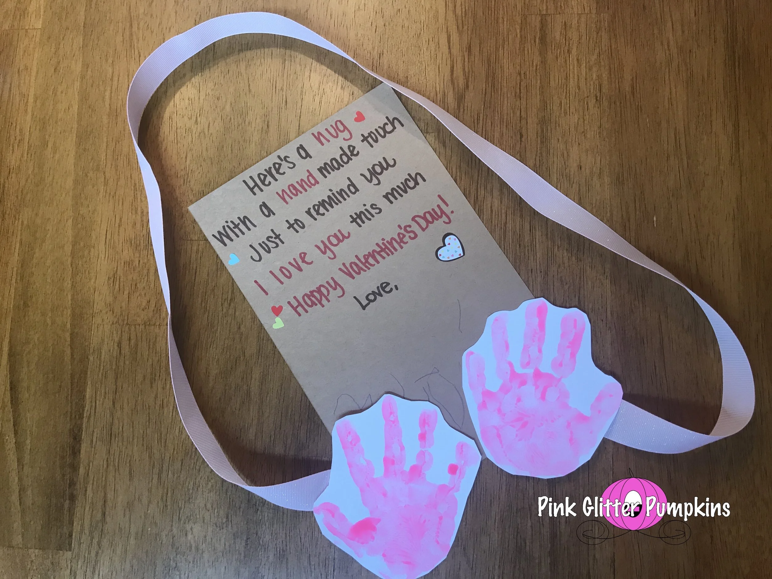 I wanted to give both of our parents a little sweet Valentine’s Day card from Melody. I decided to try and incorporate her hand prints in the cards since she is much better with paint these days. After look around on Pinterest, I found an idea I absolutely loved for Brad’s parents. His parents live in Memphis, and we don’t get to see them as regularly as my parents. So the idea of a “long distance hug” was perfect!