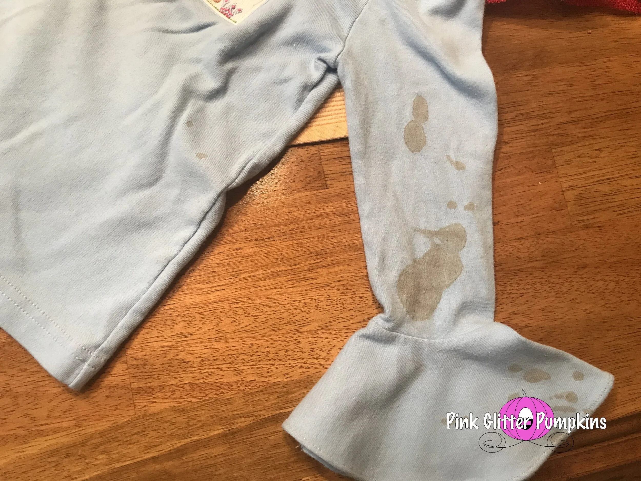 Being a mom, you find a lot of stains on clothes. We encountered a new stain this year…chocolate milk. So this may seem common to most, but Melody hates chocolate milk, ha. Well one day she came home from school with it all over her shirt. And adorable Cinderella shirt. I forgot about said stain, and I washed it. I even dried it. Ugh. But I did some work, and I managed to remove it.