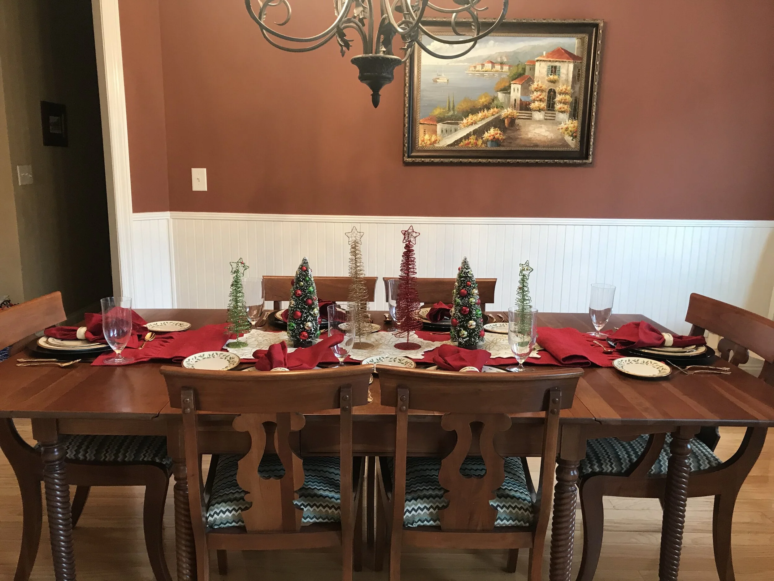 So over the course of 3 days, we finished the painting. There was tons of trim work which is what took the majority of the time. We did have to do 3 coats on the overall painting, but only 2 coats for the trim work. The paint is MUCH higher quality as are their brushes. They were slightly more expensive than Lowe’s, but I loved the quality and that we were supporting a small business! We will definitely use them for all of our painting needs! We loved the way the dining room turned out especially with all of our decor. We may one day change the light fixture, but that is something not urgent by any means!