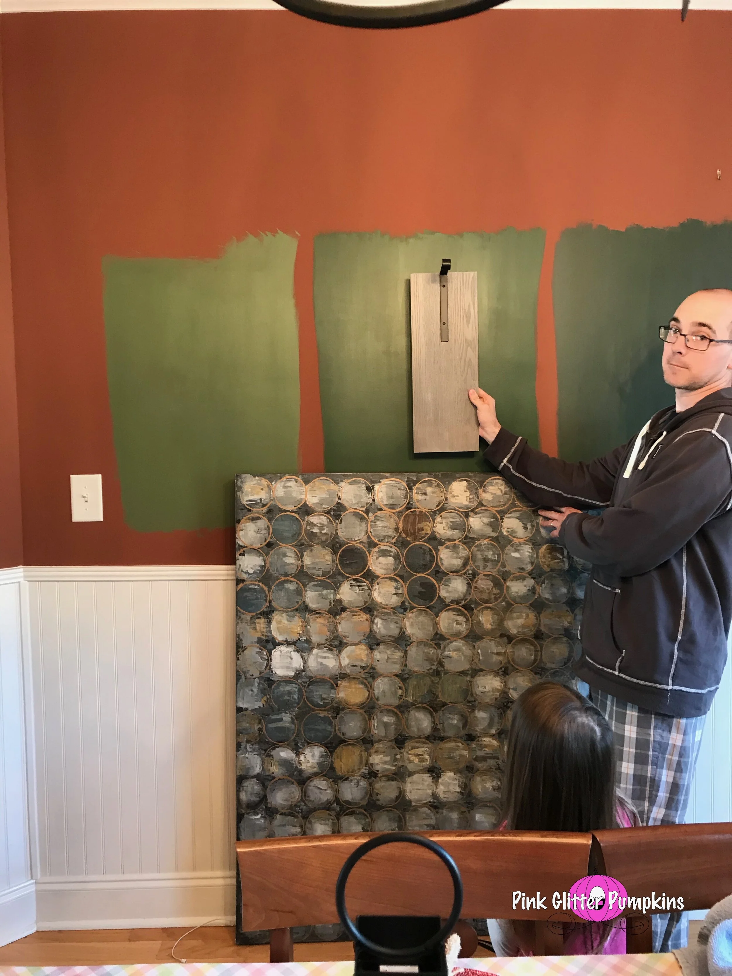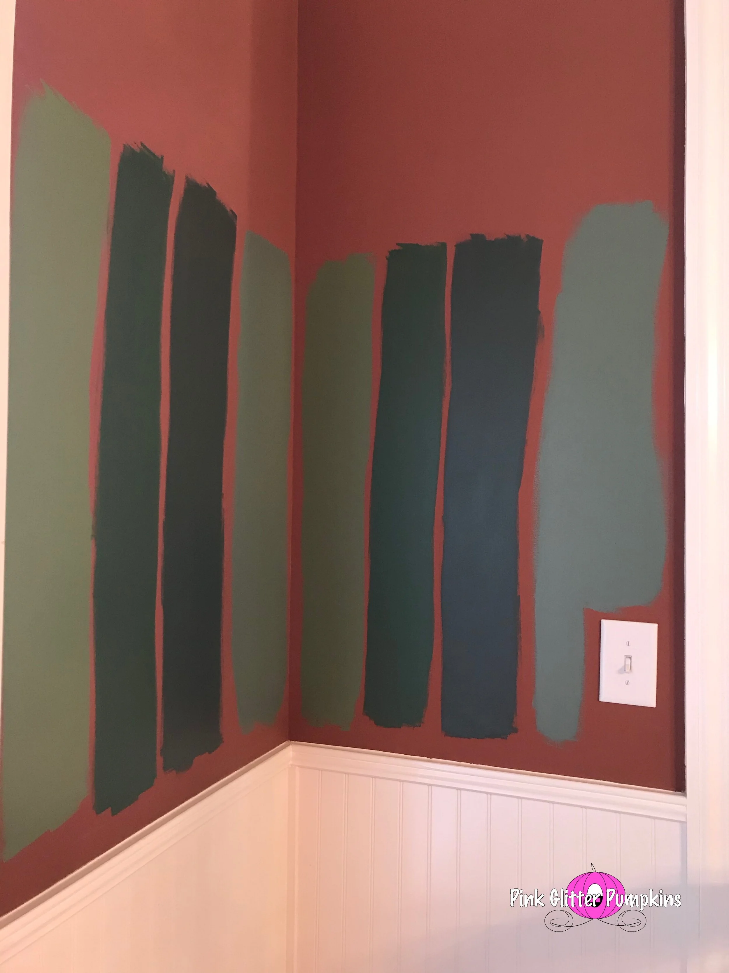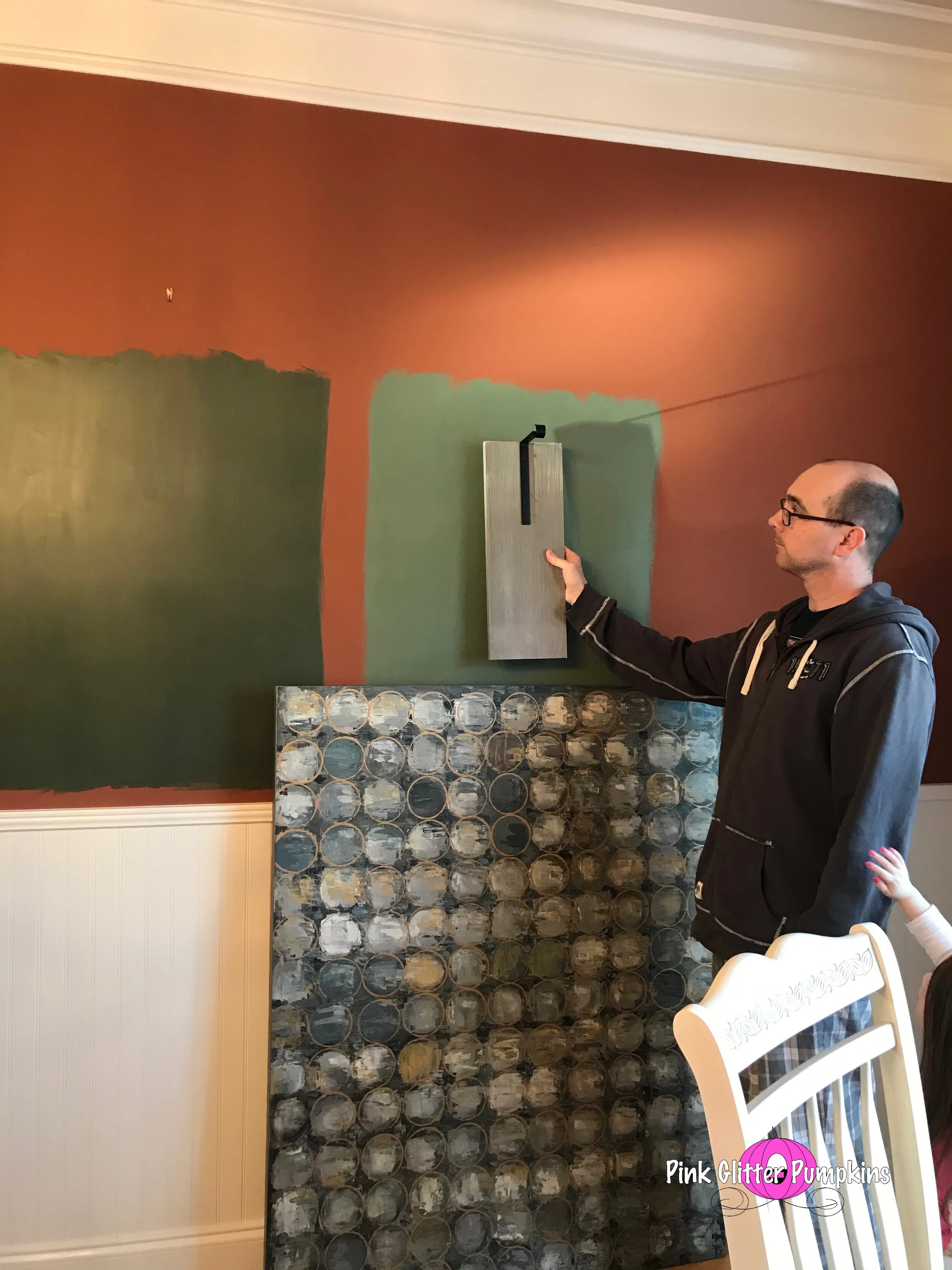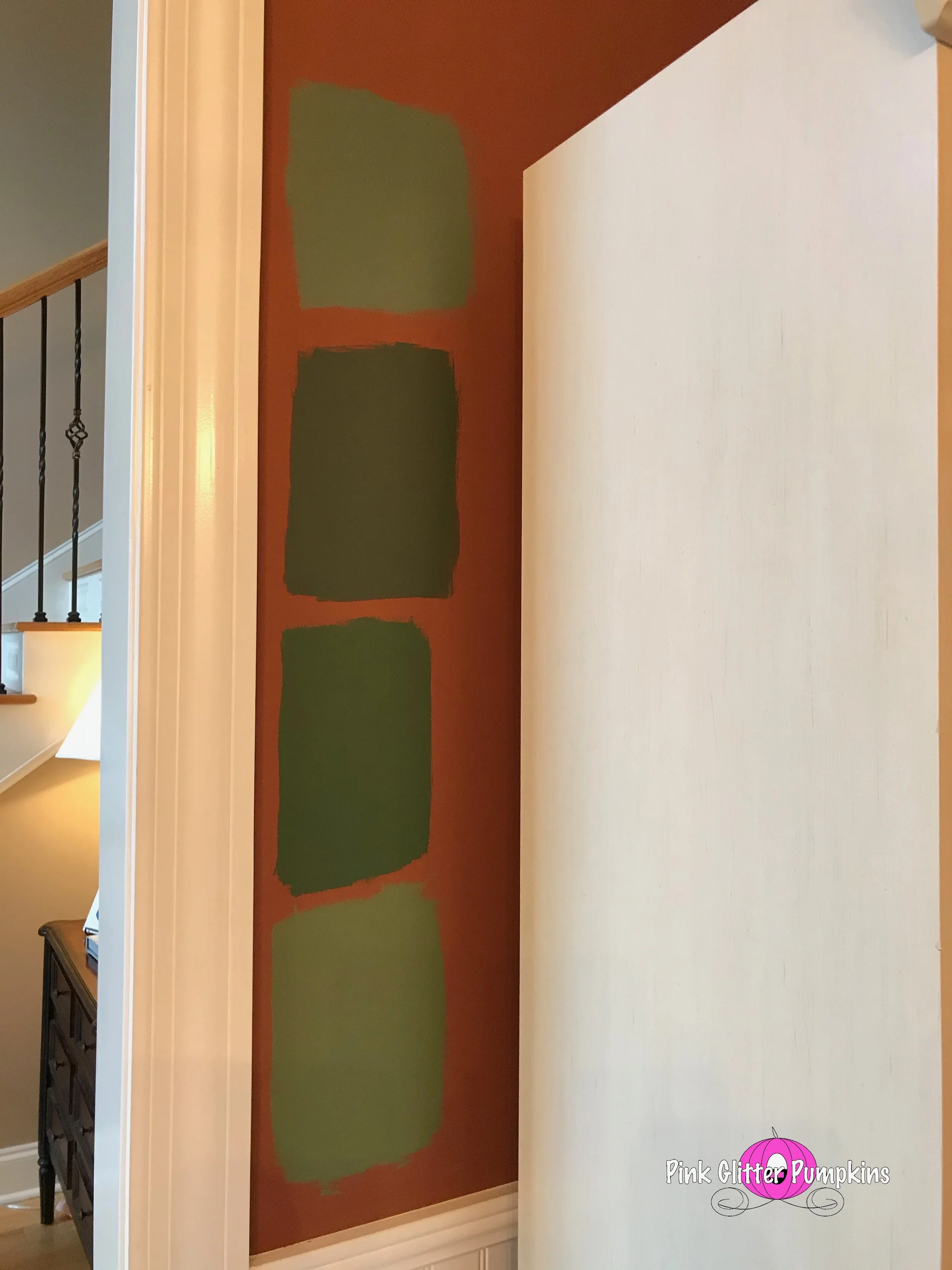 So now for paint choices. So we did great when picking out Melody’s gray for her nursery at our previous house. We didn’t do anything put the paper samples found at Lowe’s. And we loved it. Well when we did our kitchen renovation at our previous house and it required painting, we were really struggling to pick a green. We wanted the green found at Emily and Justin’s house, but the lighting in our house was much brighter because of all of our windows. So every color that looked like theirs on paper was too lime green in our house. Emily recommended we buy actual paint in the sample cans. I had never heard of this, so we gave it a try. Well it took 9 samples, but we found one.