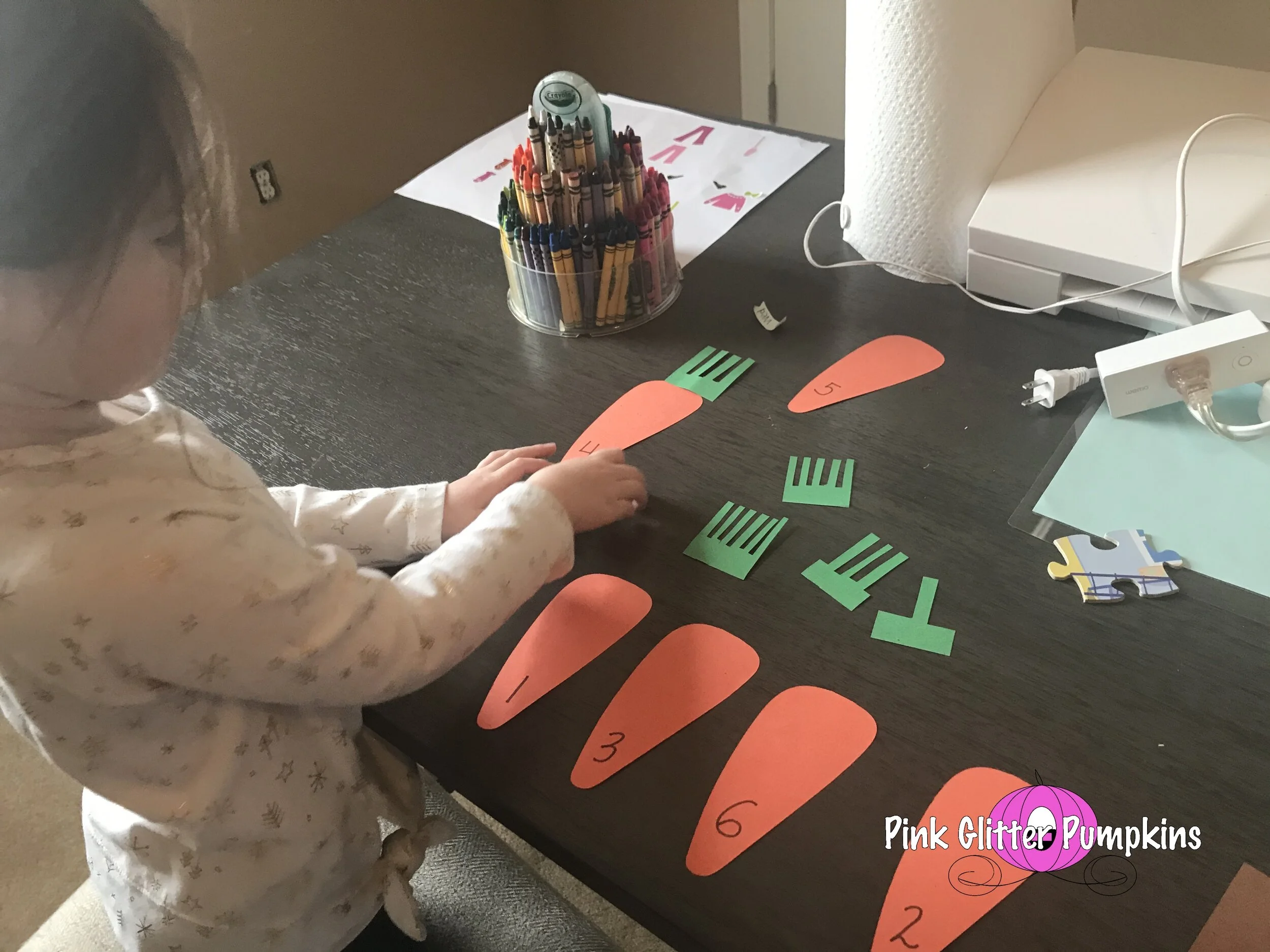 This can be used as a fun exercise too. Like which carrot is number 6? Then they pick the carrot from the paper that has 6 pieces on its carrot top. Cute and easy!