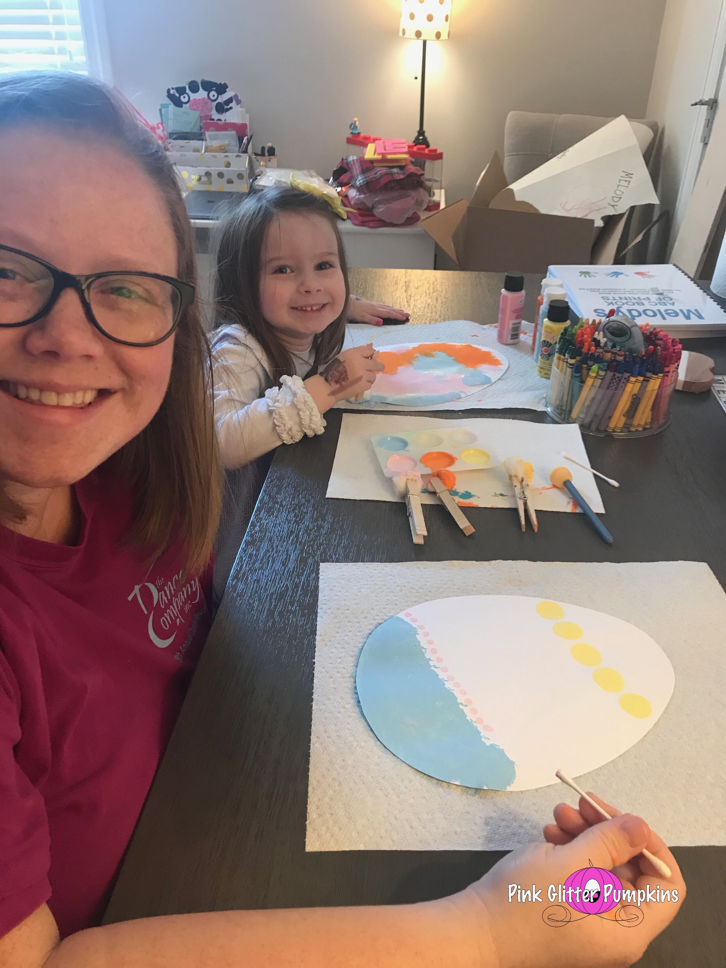 On Wednesday we learned about the letter B, and Melody did some work on tracing numbers 0-10. When it came to craft time, I decided to participate. Our neighborhood is asking everyone to put Easter eggs in their windows, so we decided to make multiple eggs during her craft that day. We just painted extra large eggs with cotton balls and qtips. Then she spent time writing her name and playing Animal Crossing on the Switch.