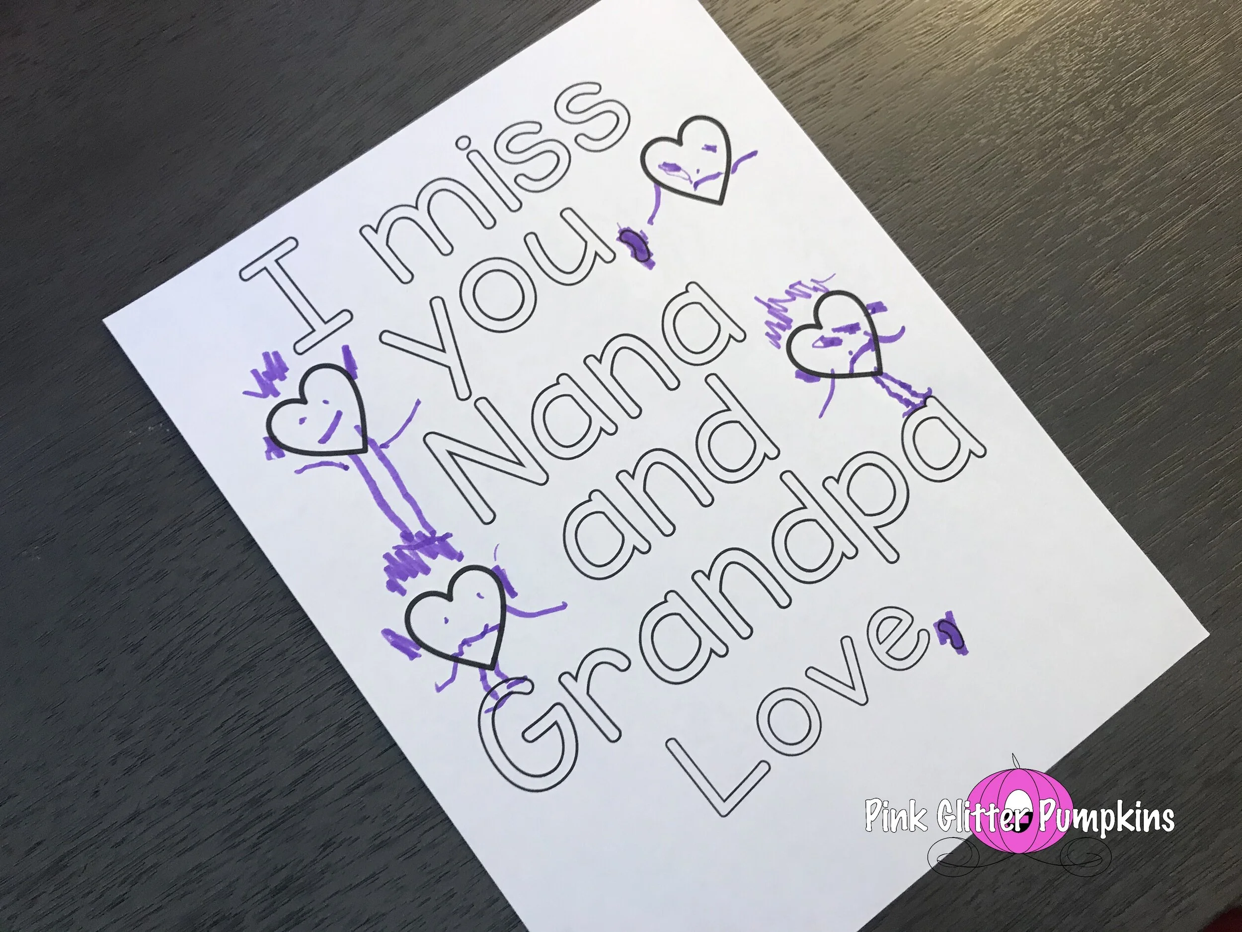 During the beginning of the quarantine, Melody was really missing her grandparents (and friends and anyone that wasn’t Brad or me, ha!). So I decided to make a coloring sheet that she could send to our parents. I hoped she would make it more colorful, but purple is her favorite color! And she decided to make the hearts faces, haha.