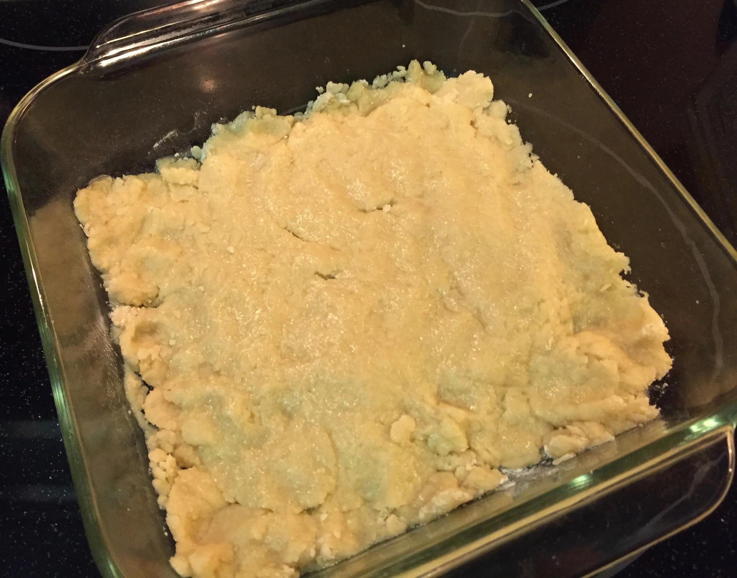 2. Press into a 9x9 greased pan and bake on 350 for 15 minutes.
