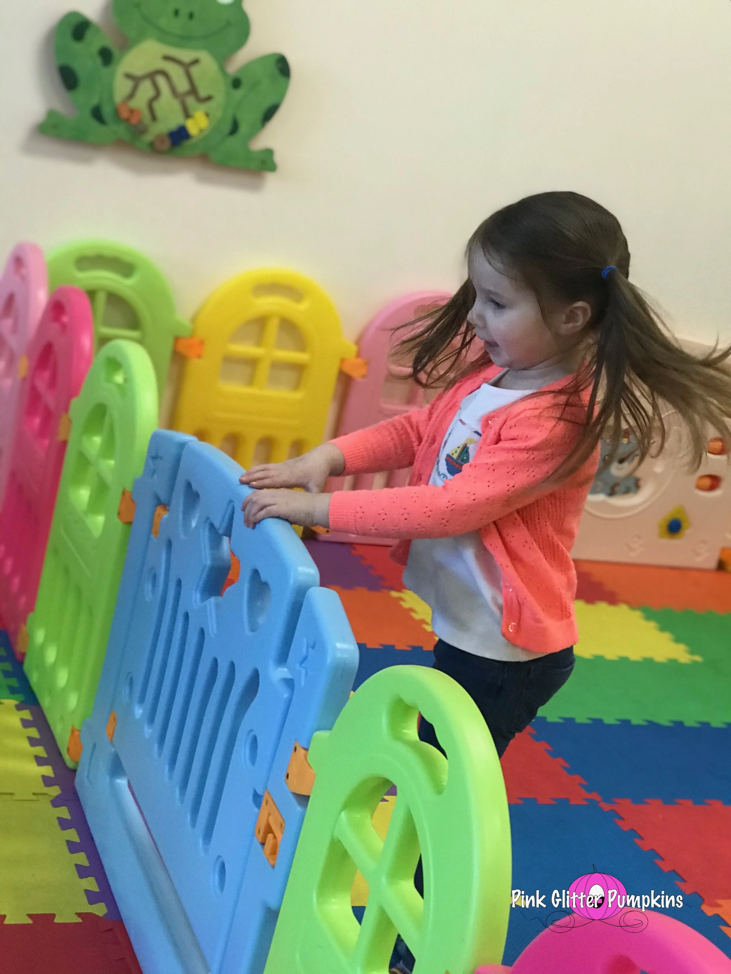 There was another area targeted for toddlers. It was sectioned off by an interlocking play pen thing. It had tunnels and different younger toys.
