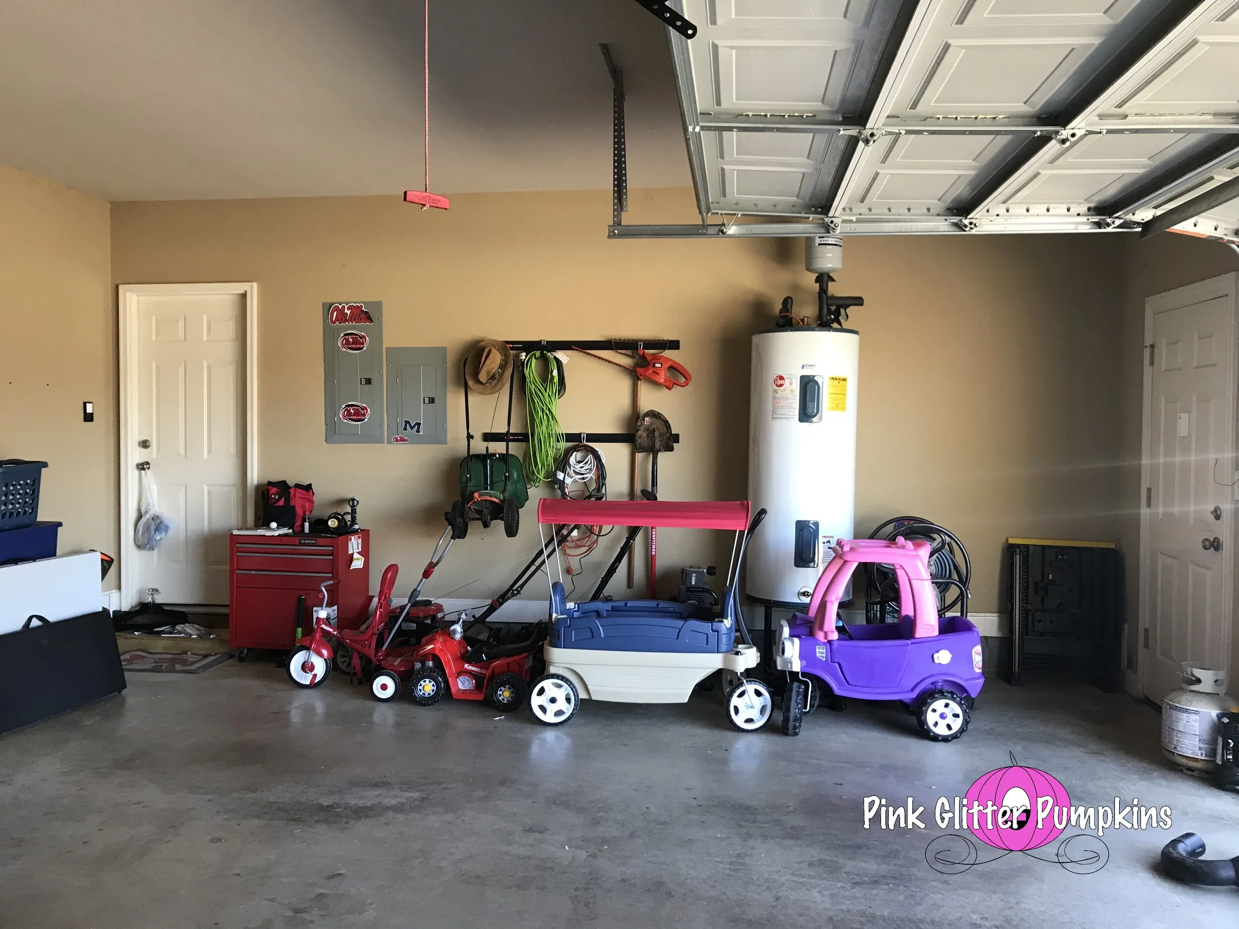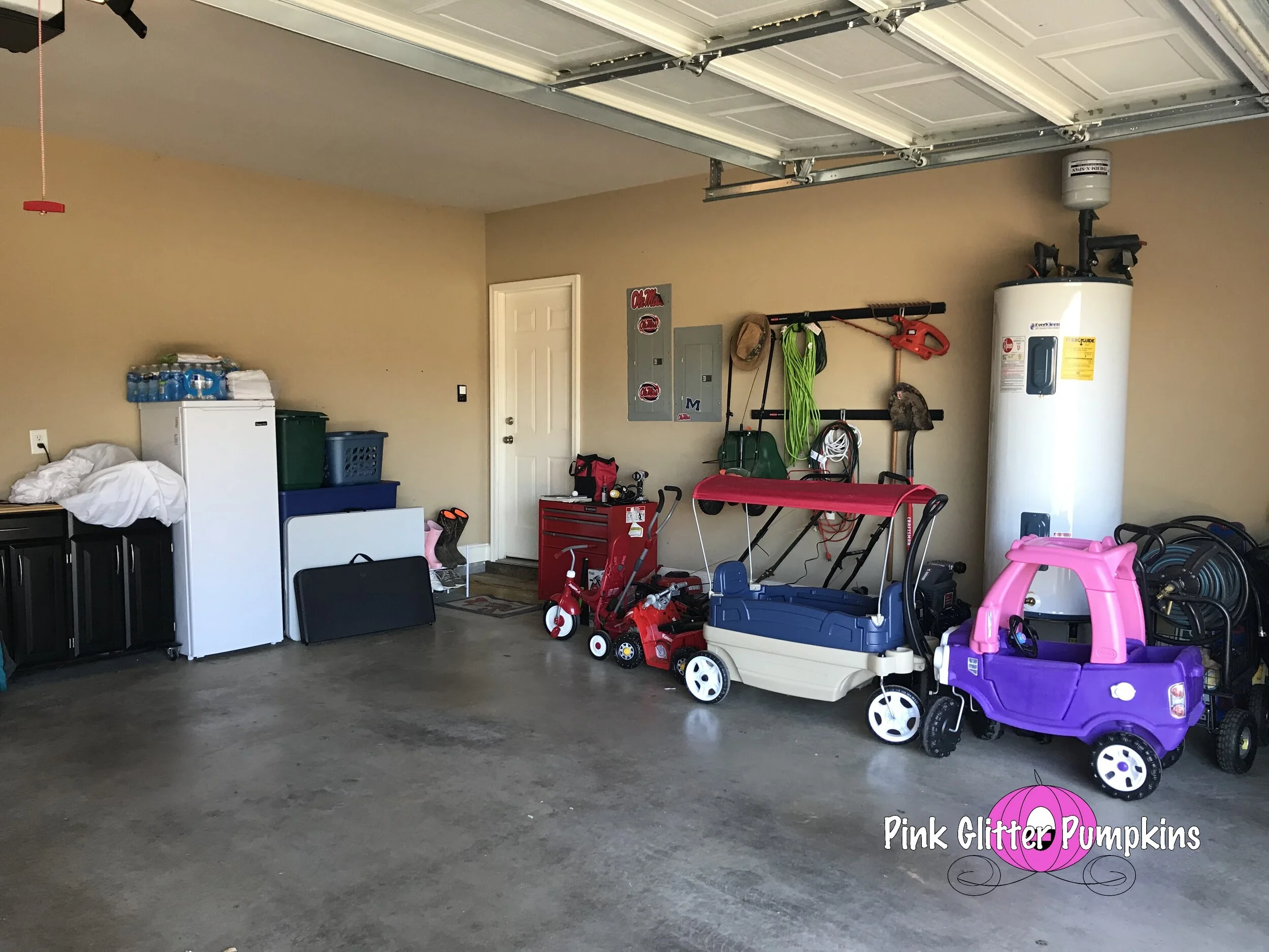 You can see how junky it all looked before. Our biggest problem areas were the back of our garage where we literally put almost everything. Under all that is a bouncy house, a desk, a Christmas tree, my heat press, numerous door hangers, TONS of things for a future garage sale that we hope we can one day have, and even TVs! We also had a lot of issues on the right side where we store Melody’s outdoor toys and Brad’s lawn equipment. We could never access our actual door to the outside and getting in and out of the passenger doors of my car was never fun.