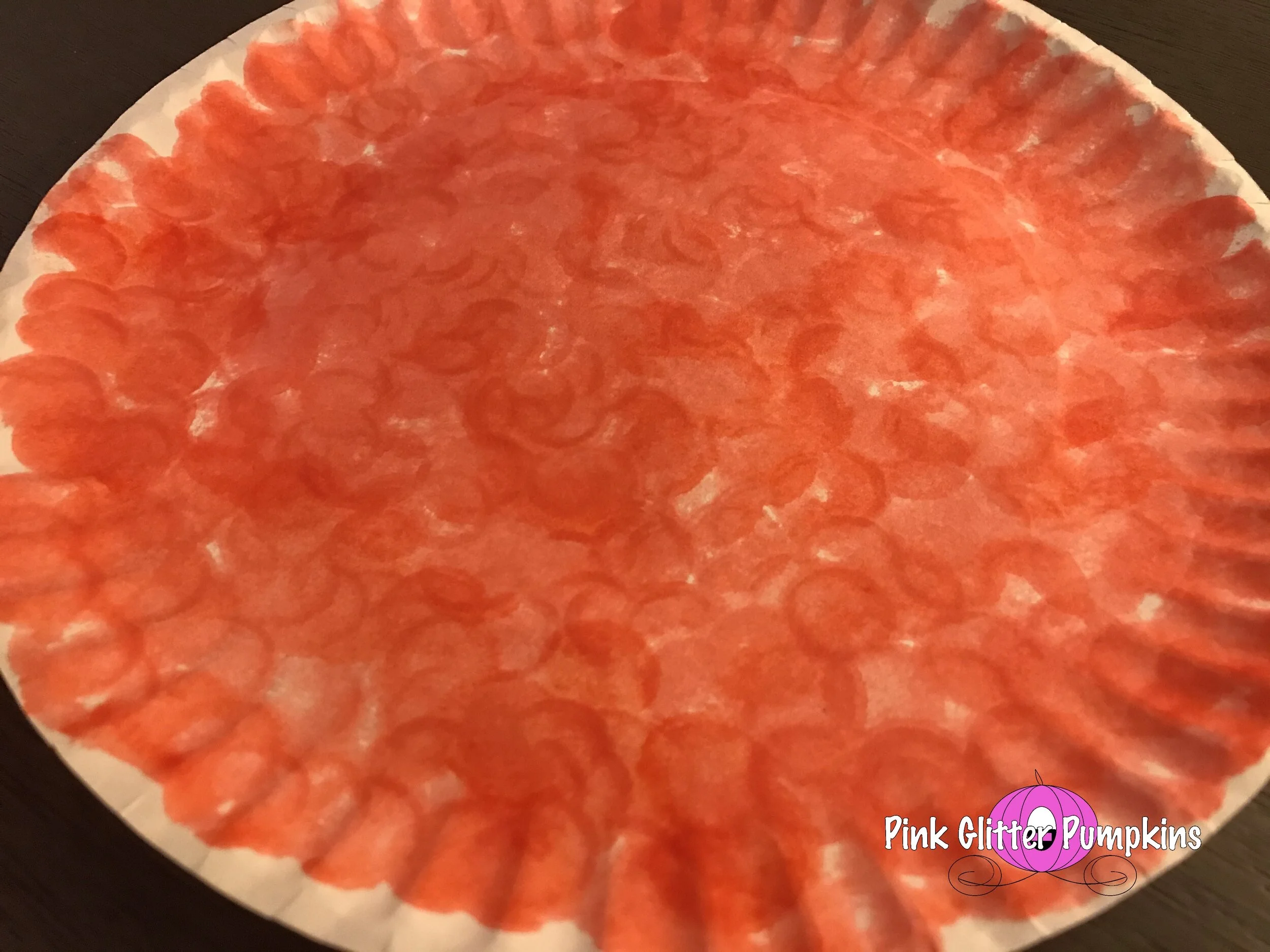 First you want to take a paper plate and color/paint/marker it red. Melody loves dot markers, so that is what we used.