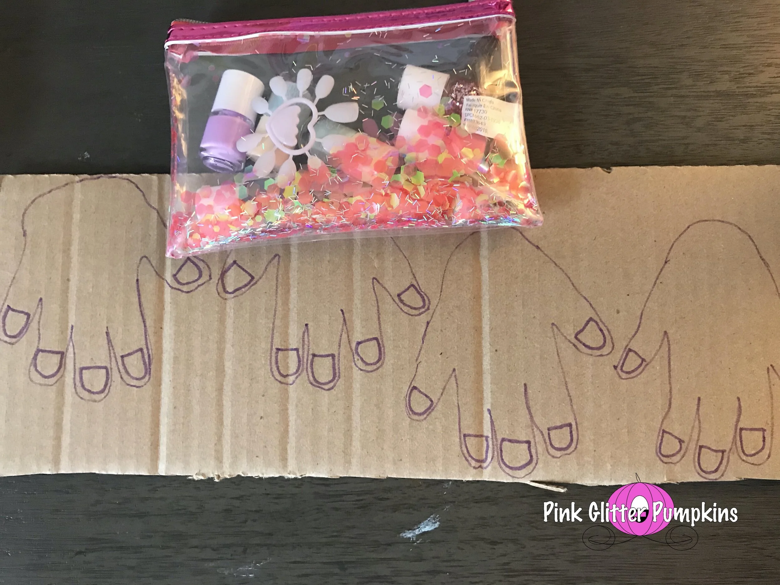 When quarantine first started, I was on the lookout for some easy and fun crafts for Melody. I ran across this one on Pinterest. You take a piece of cardboard, and you draw hands and/or feet on it. Then draw nails on that.