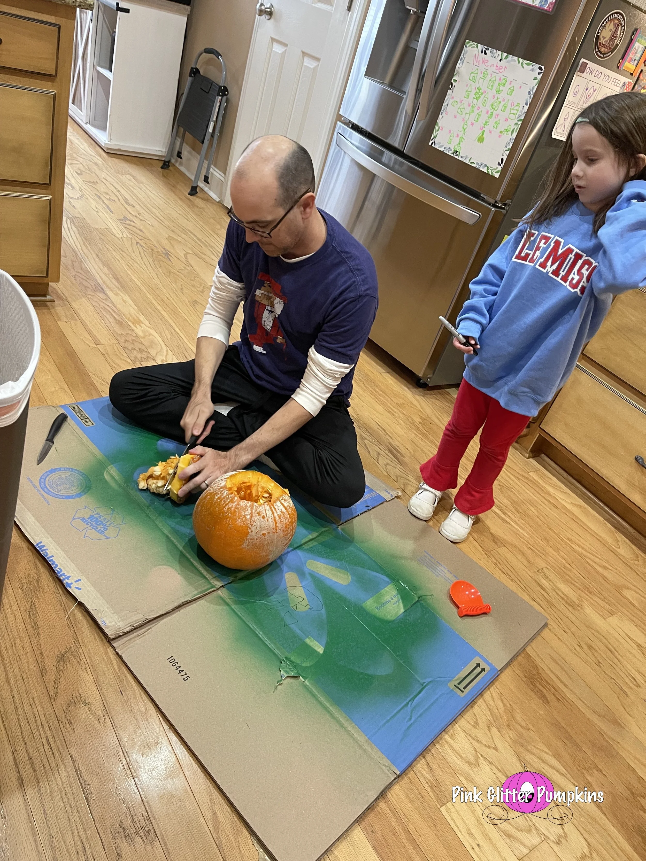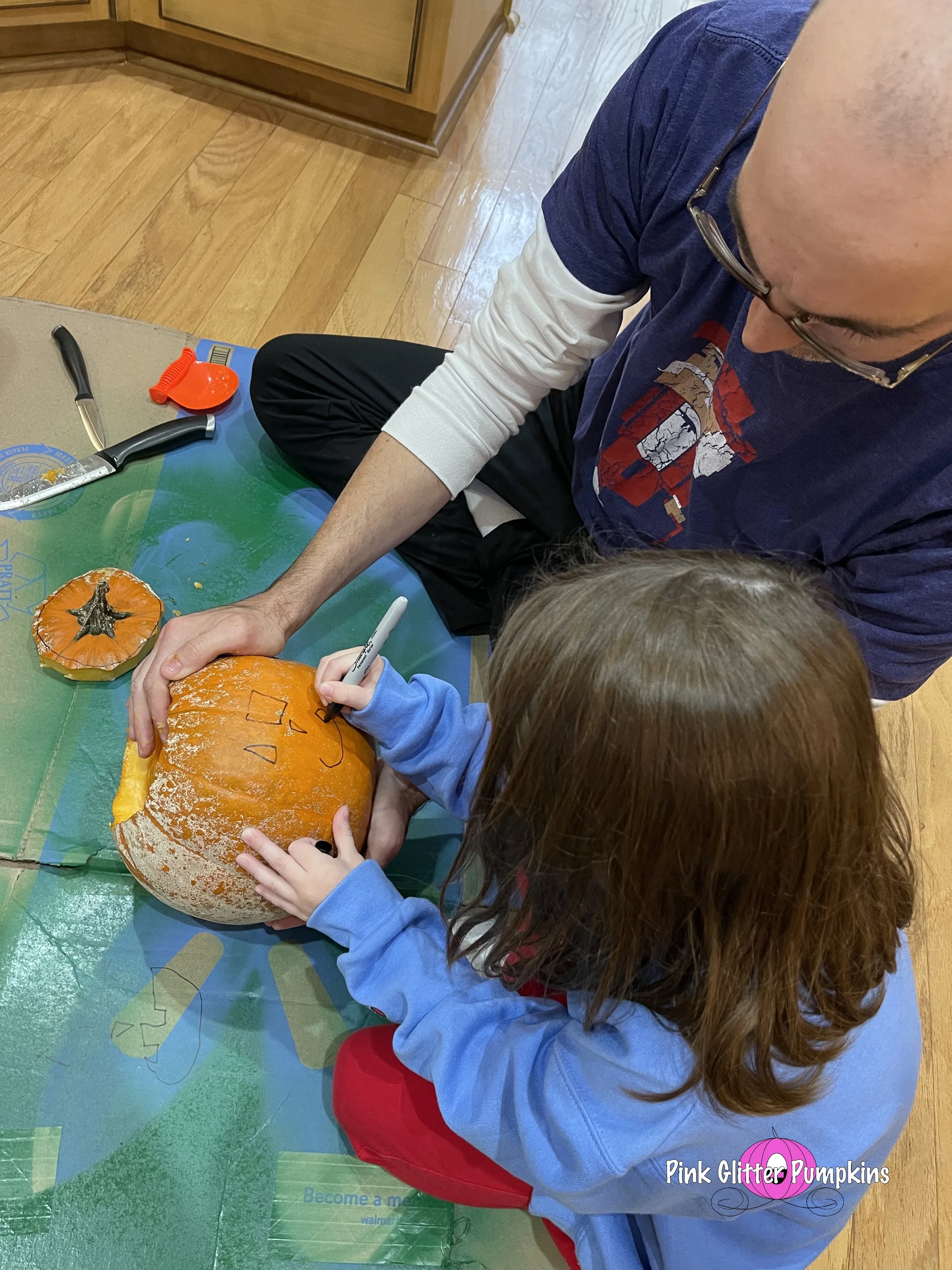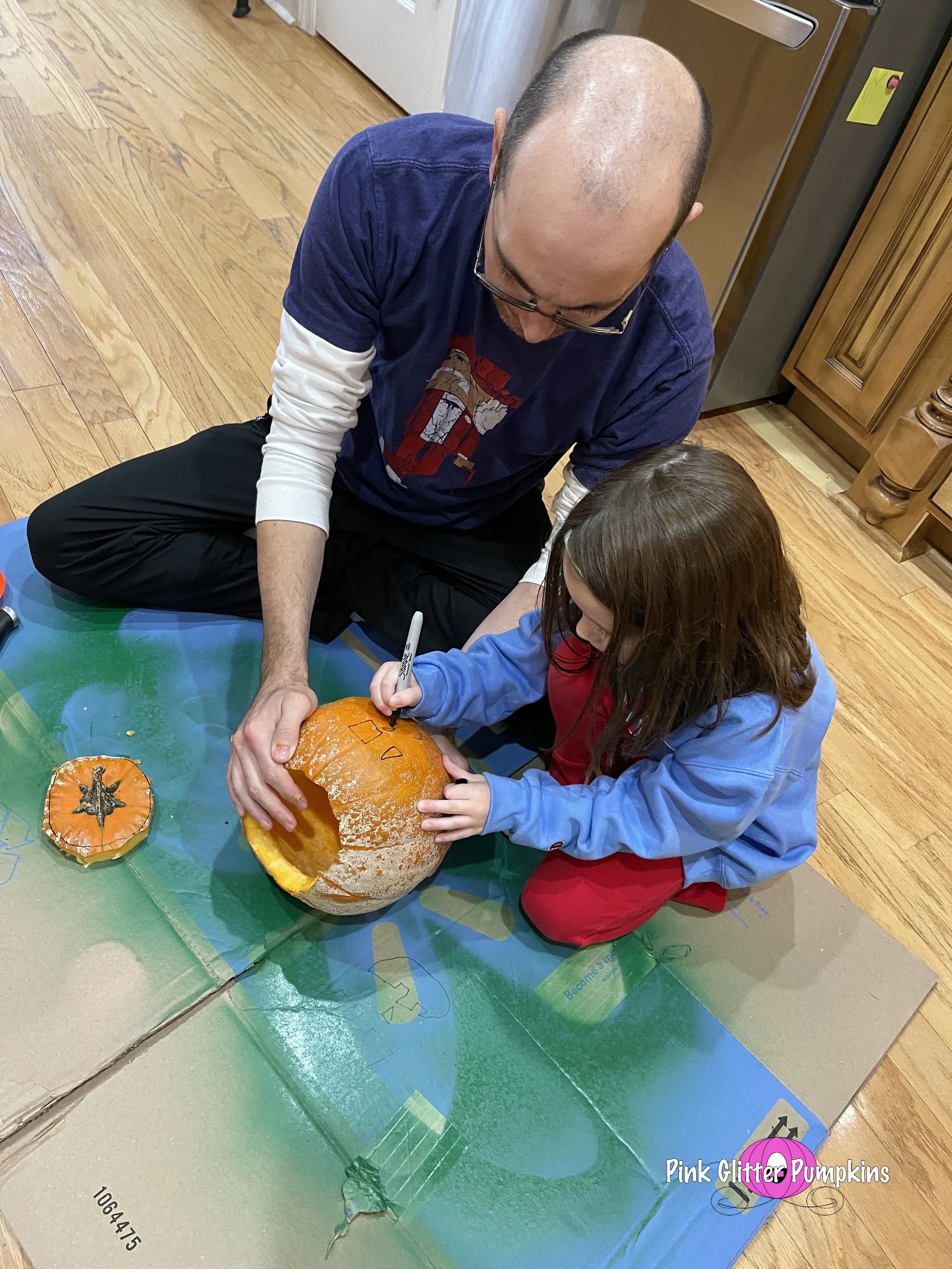 Halloween week always involves pumpkins! Melody painted a pumpkin she got from the pumpkin patch. Then her and Brad carved a pumpkin she got at her schoolβs pumpkin patch. She drew it all herself while Brad did the messy part.