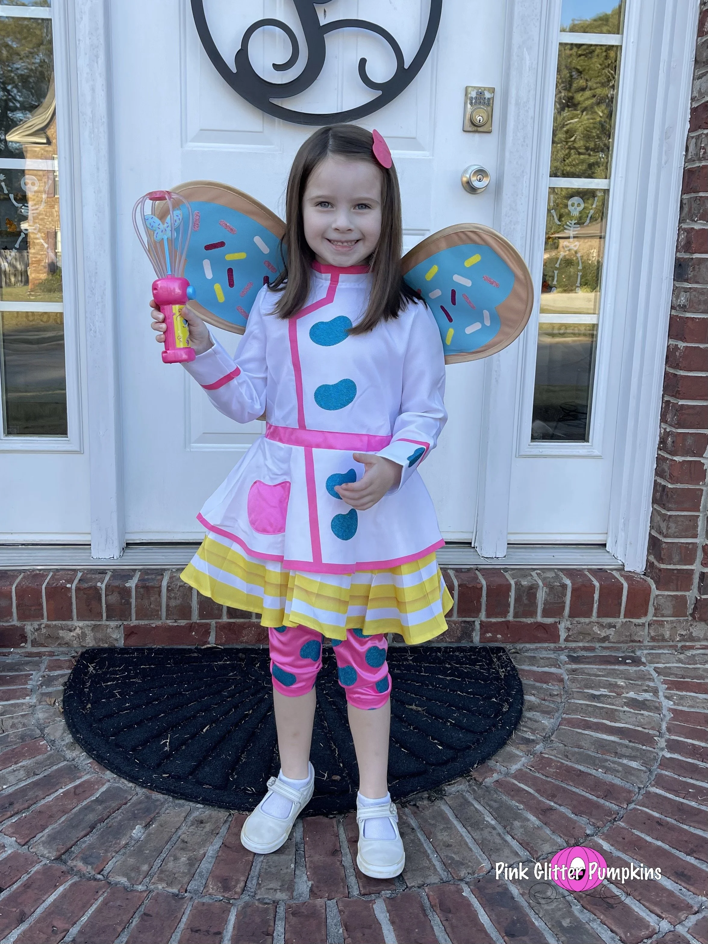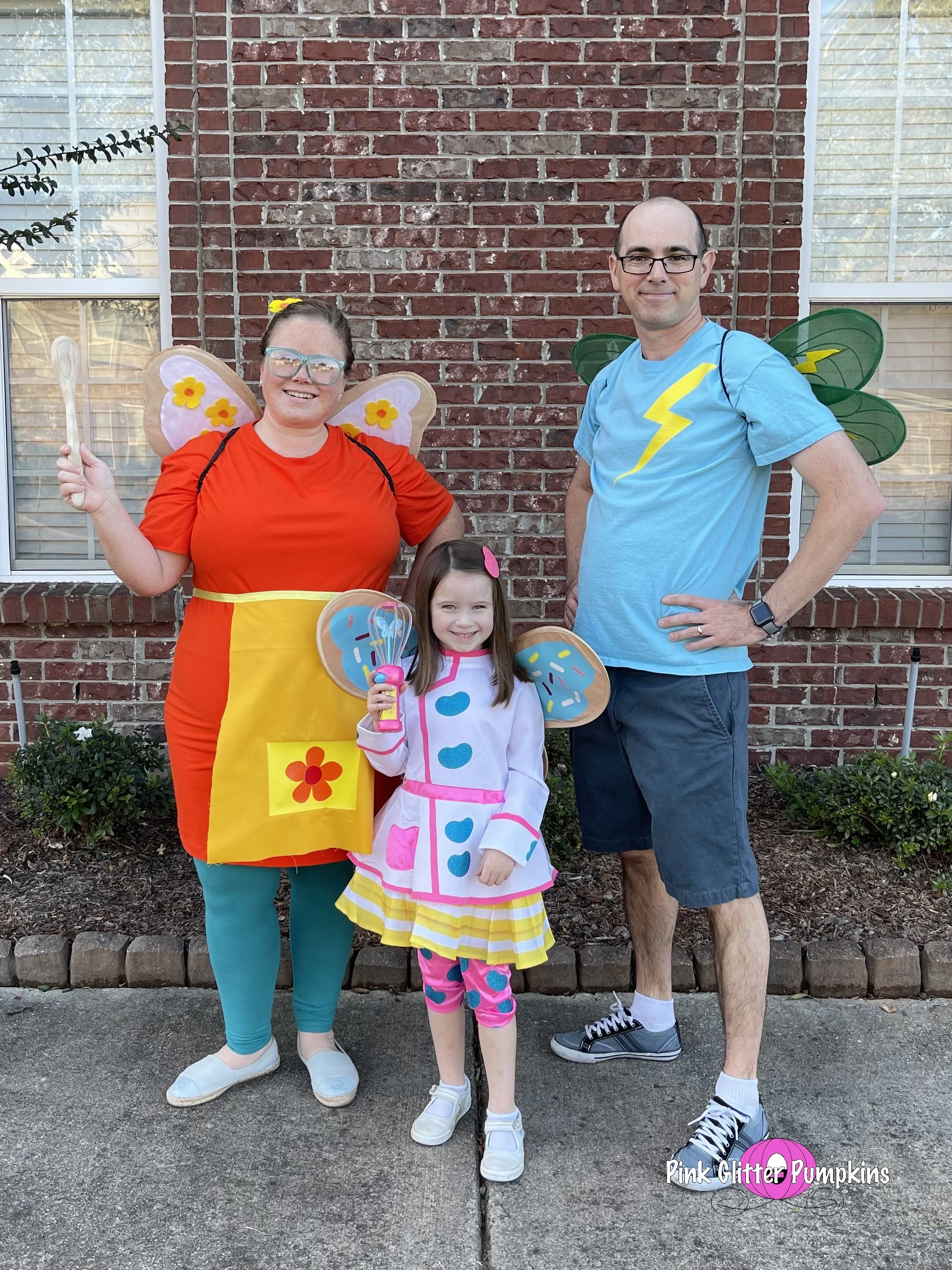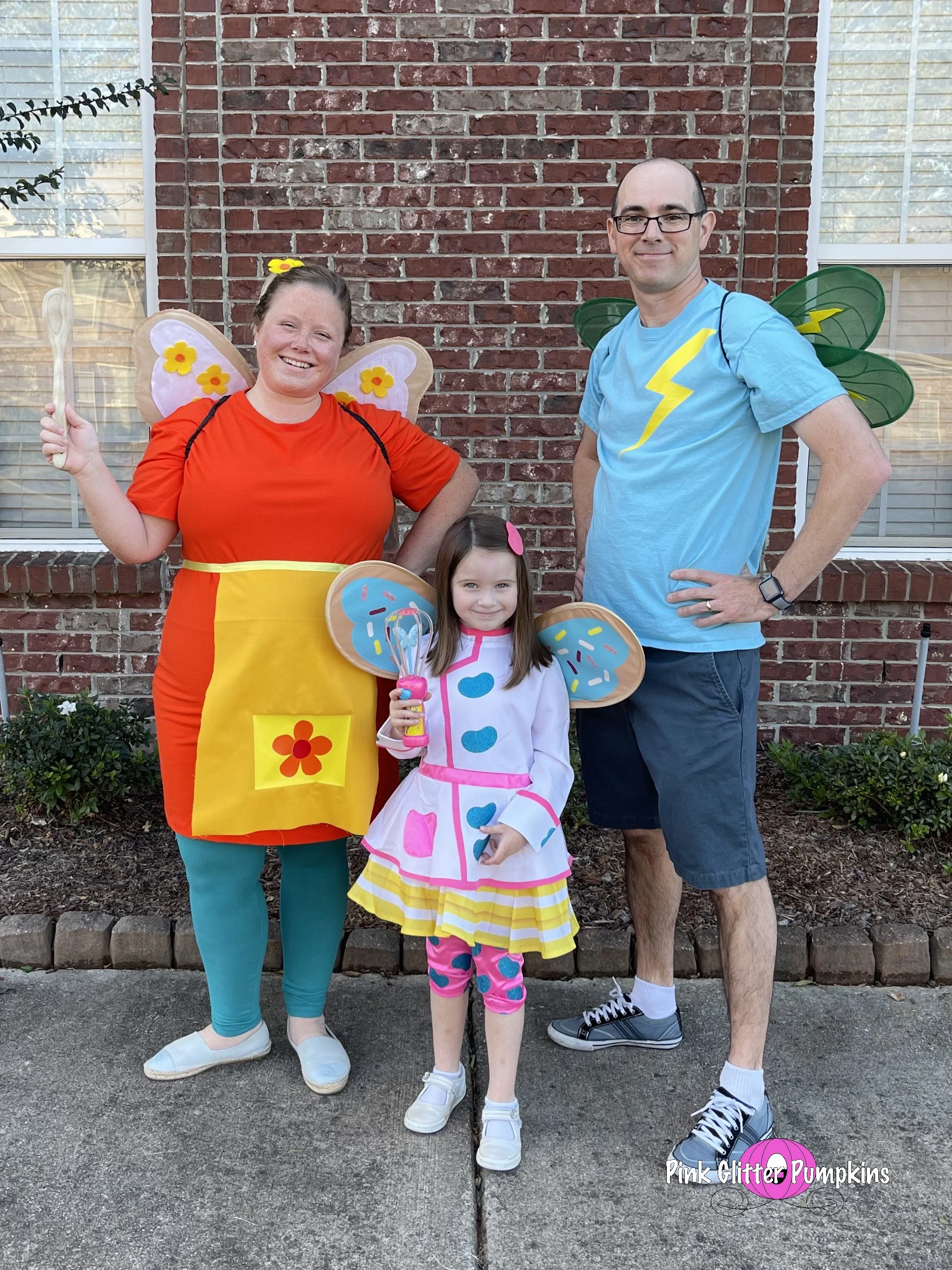 So Melody picked Butterbean as her costume this year. She wanted me to dress up as Poppy, and Brad dressed up as Jasper. Melodyβs costume came straight from Amazon. It took two different costumes to find one that fit though. And the wings were terrible. They lasted for pictures, but they came off after about three houses. They were simply attached by velcro. I made most of Brad and my costumes which I plan to share all about later.