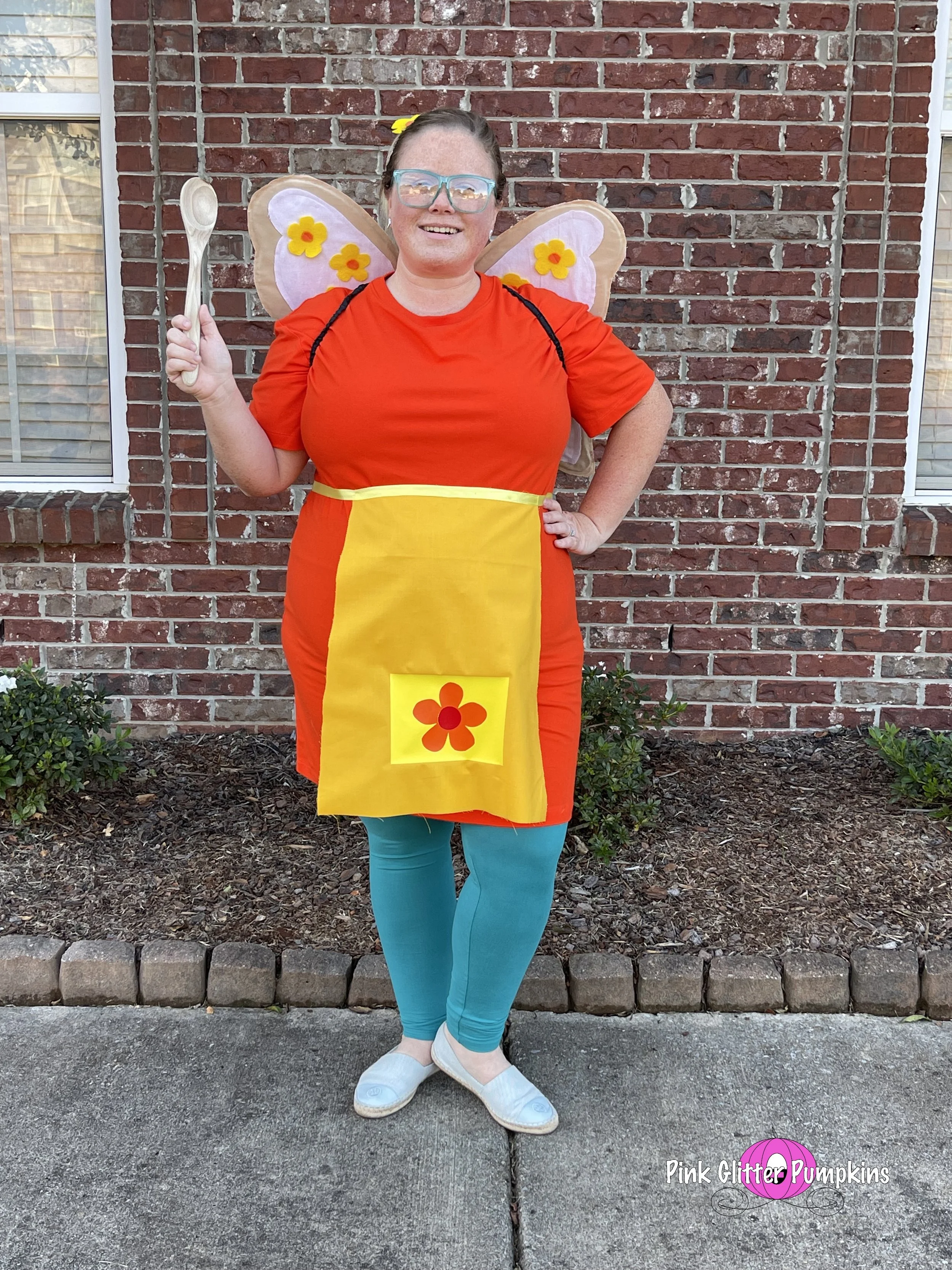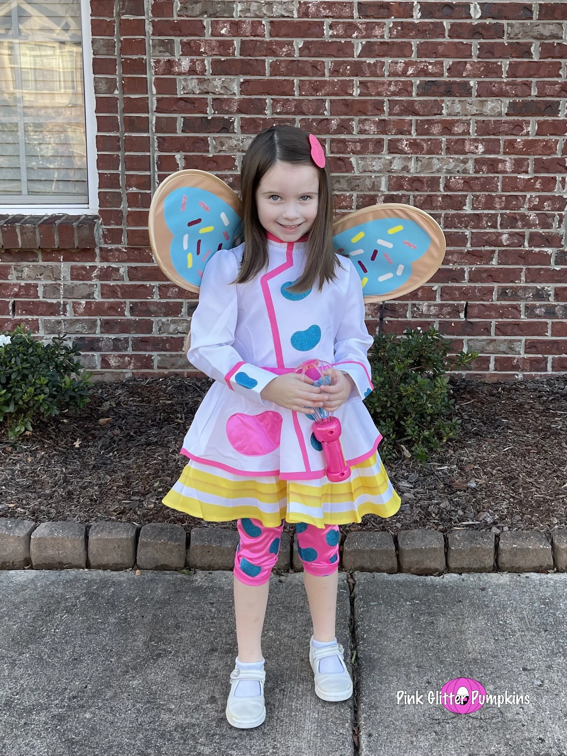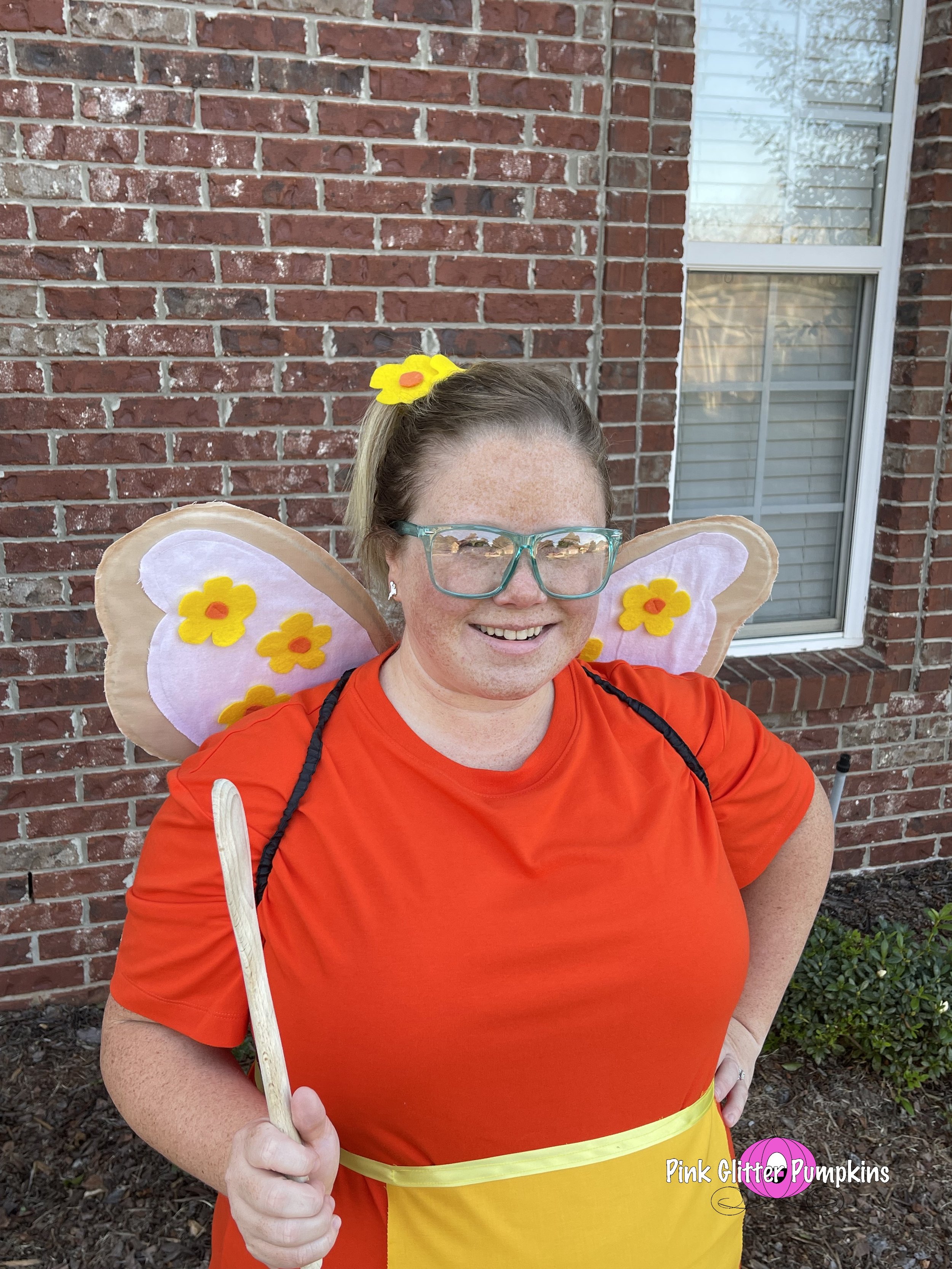 So Melody picked Butterbean as her costume this year. She wanted me to dress up as Poppy, and Brad dressed up as Jasper. Melodyβs costume came straight from Amazon. It took two different costumes to find one that fit though. And the wings were terrible. They lasted for pictures, but they came off after about three houses. They were simply attached by velcro. I made most of Brad and my costumes which I plan to share all about later.