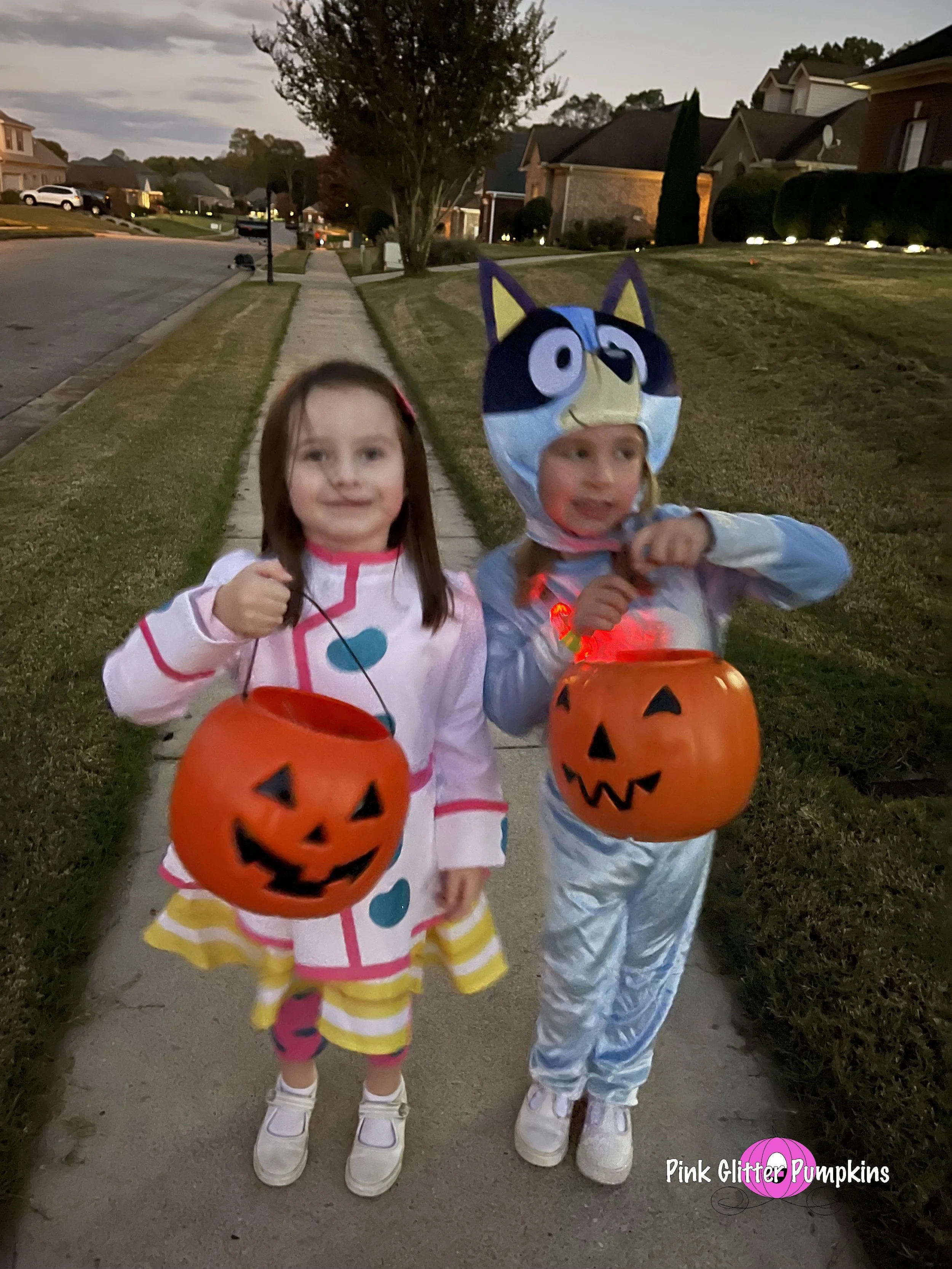 The kids had a blast this year. The weather was perfect, and the girls are at a perfect age. They could go to the front porches by themselves and ran from house to house as we followed.