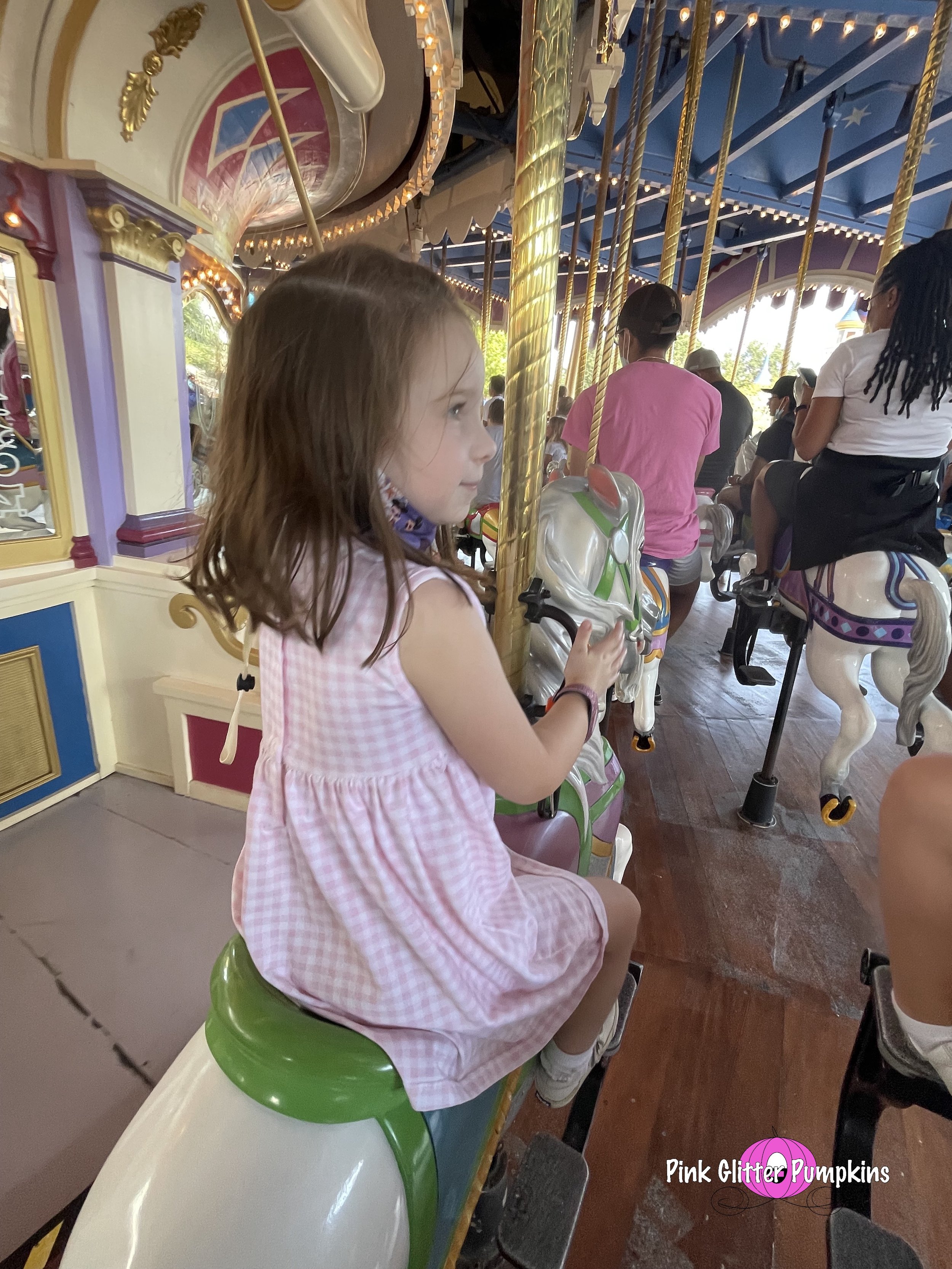 After lunch, the guys took the girls on the carousel. It was only about a 5-10 minute wait at most.